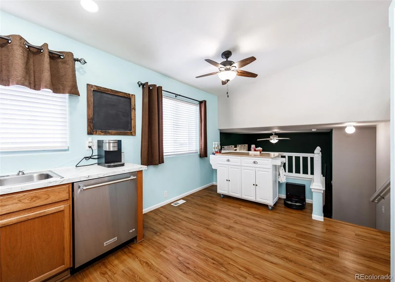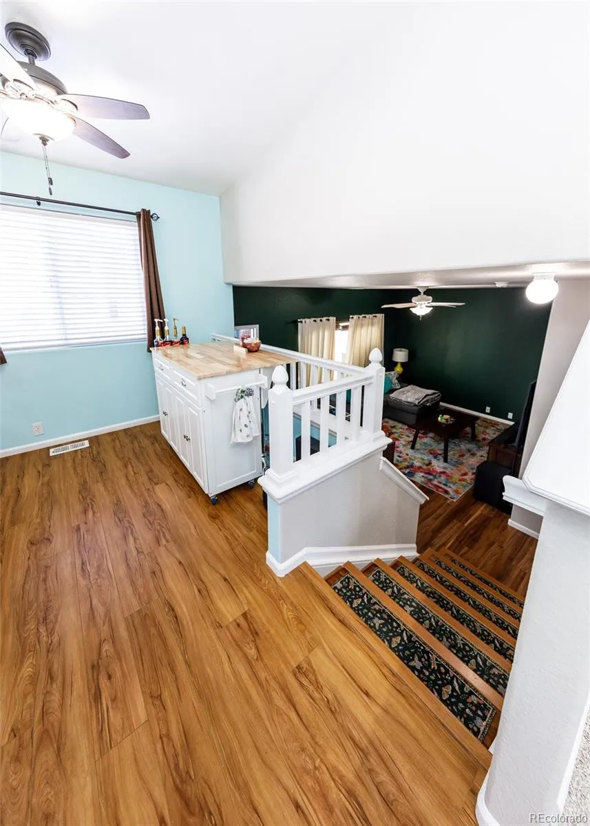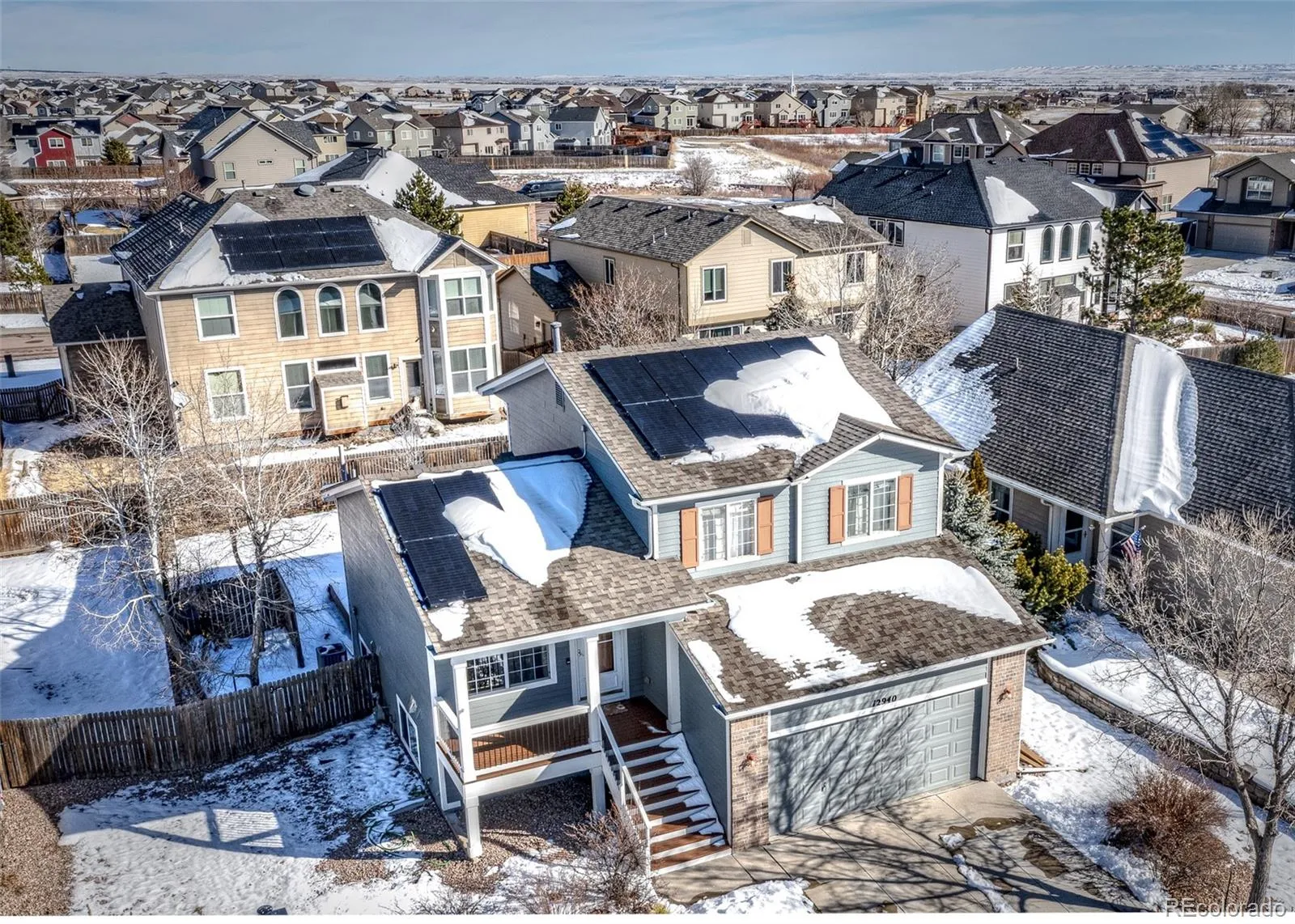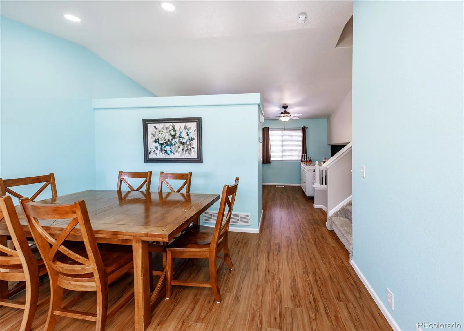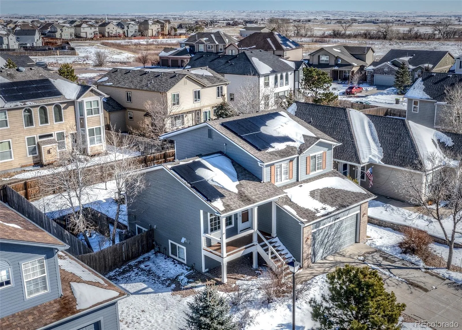 Welcome to your new home located in Woodmen Hills. Well maintained and updated throughout. Covered front porch and entry. Living room features vaulted ceilings, Laminate wood flooring and adjoins dining room and kitchen. Kitchen features vaulted ceilings, wood laminate flooring and upgraded appliances. Lower level family room with wood laminate floors and walk out to fully finished sun room (not included in square footage), access to large wood deck and fenced backyard. Professionally finished basement features an office, additional bedroom and laundry room. Upper level features a private master suite with adjoining full bath and walk in closet. Two additional bedrooms and a full bath. Close to Community Center, Pool, Fitness Center, shopping and restaurants. Easy access to Parks and Trails. Pride of ownership shows throughout. Ready to move in to. Quick close.