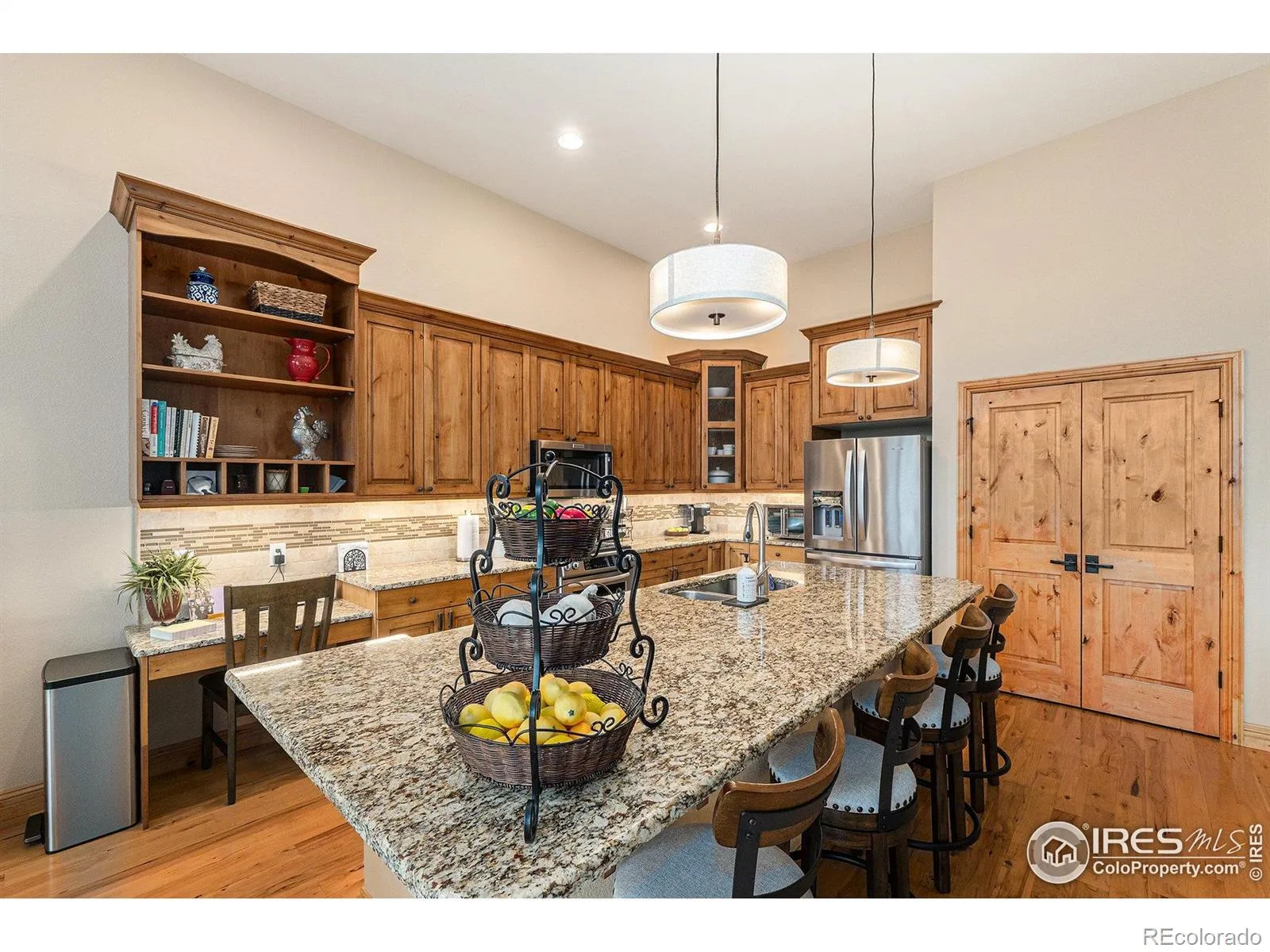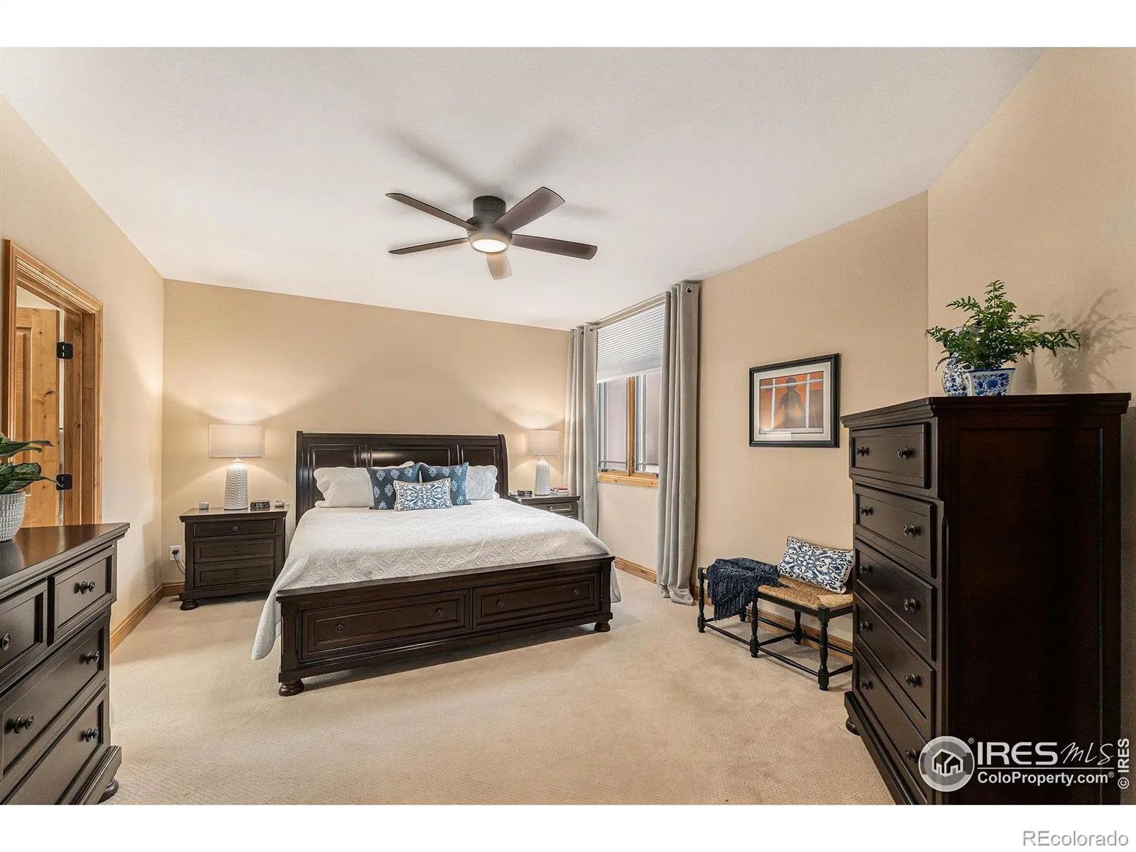 West Location with Foothills Views, this Ranch Style Townhome lives like new and is as well cared for as any home available. Low maintenance as exterior is HOA maintained to include snow removal and lawn care. The luxury kitchen with huge island, gas range, all SS Appliances, pantry and high-end cabinetry opens up to the large great room with gas fireplace and floor to ceiling windows facing those gorgeous views that have upgraded automatic blinds with remote. Walk out to the spacious balcony for enjoying the outdoors. The main floor primary bedroom suite features a 5-piece bath and roomy walk-in closet. The main floor is rounded out with a study/flex space and laundry. The walkout lower level includes a 4-piece bath, large rec room, 2nd bedroom and a flex space that is currently being used as a 3rd bedroom. Plenty of unfinished storage area, as well. The lower-level patio is partially covered by upper balcony. This home truly is clean and well cared for, Definitely a must see. Just a few short blocks to the Cathy Fromme Prairie Natural Area and Trail Head.
