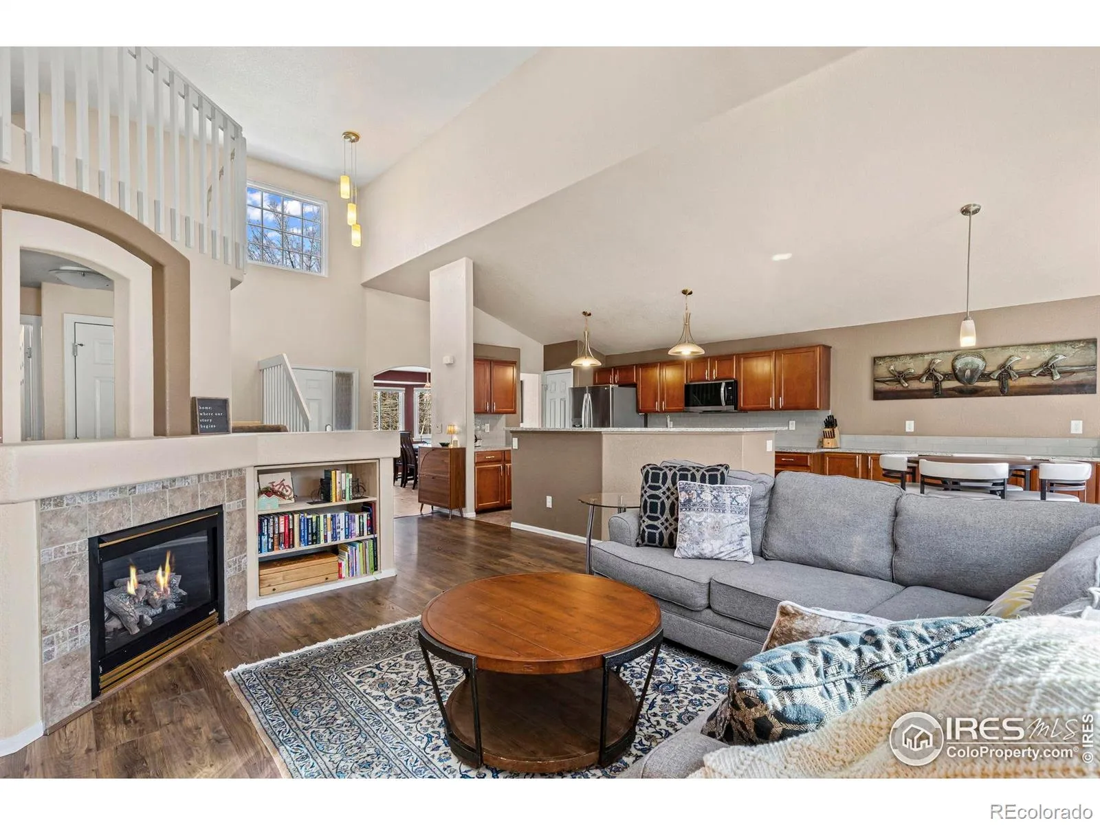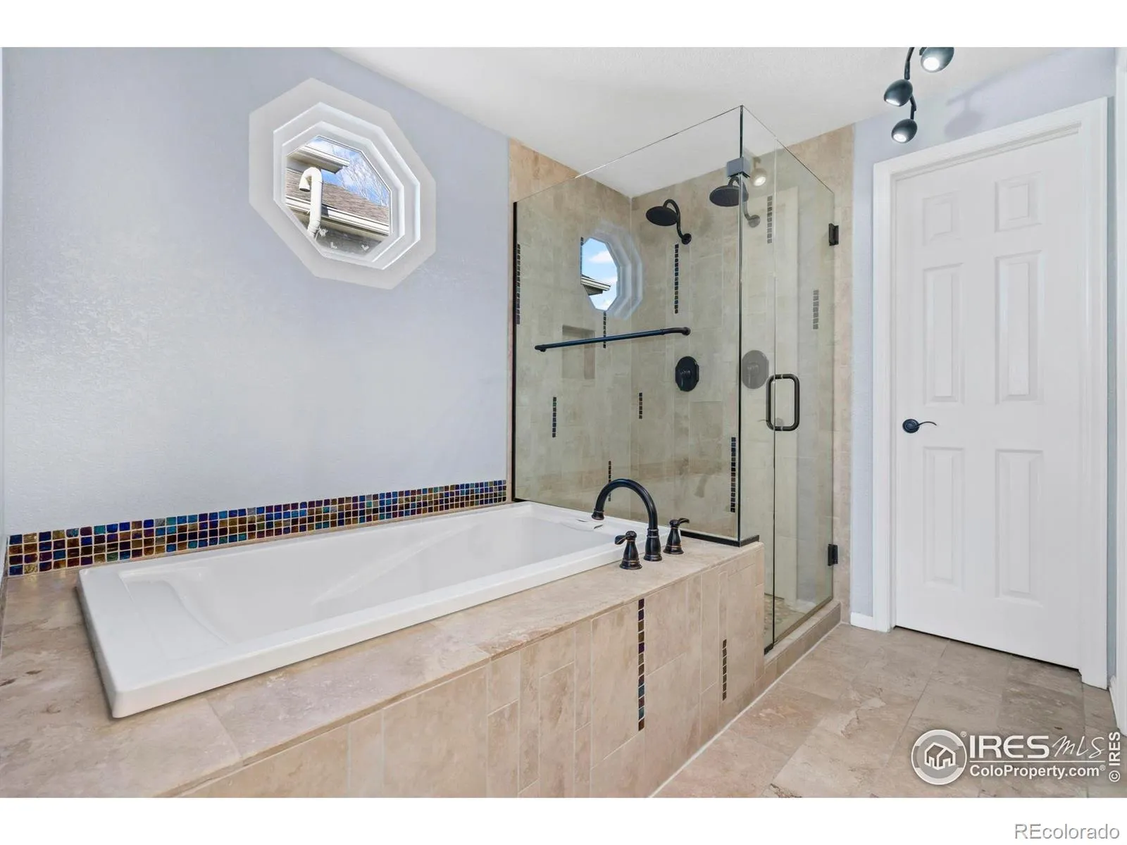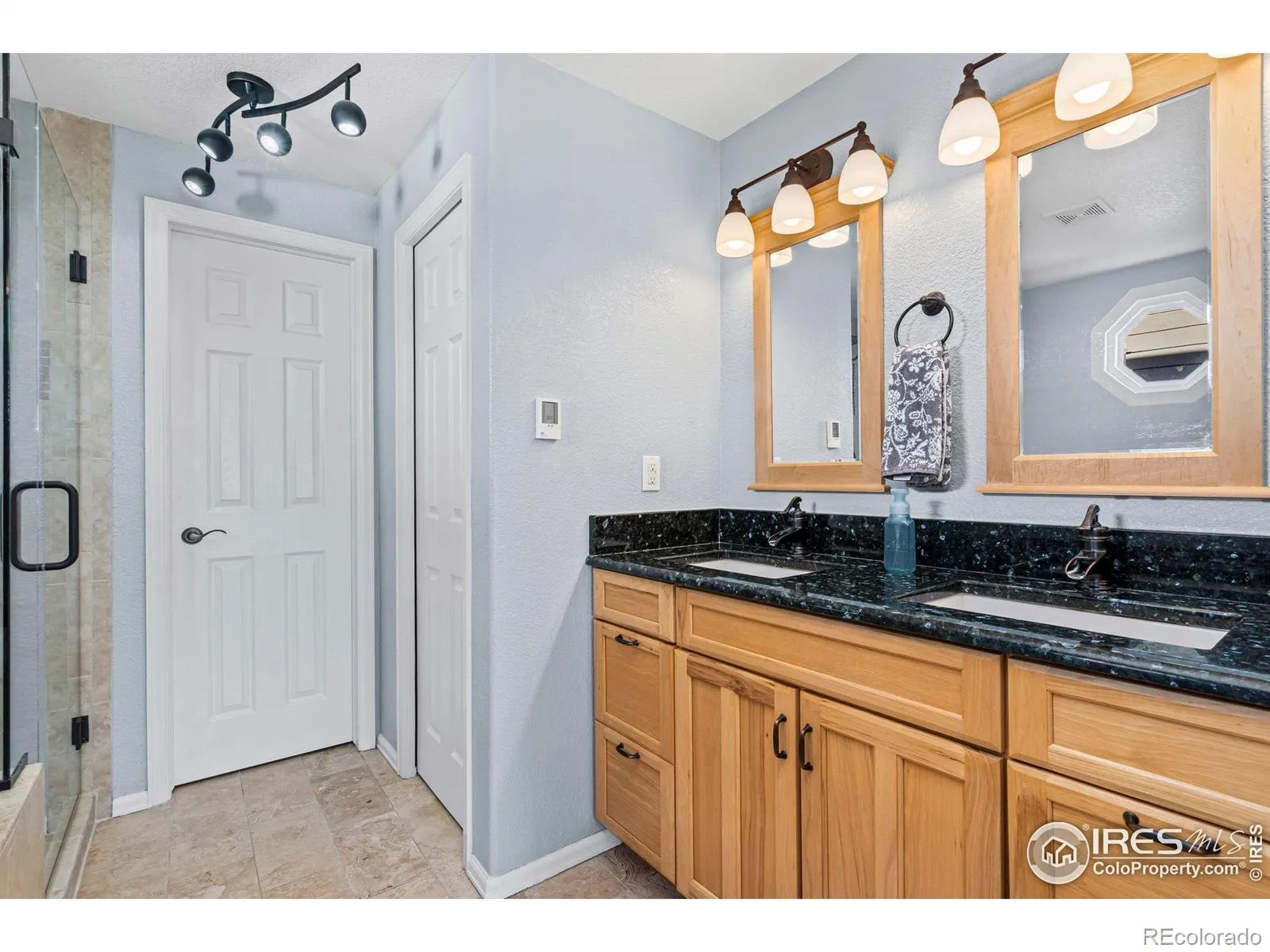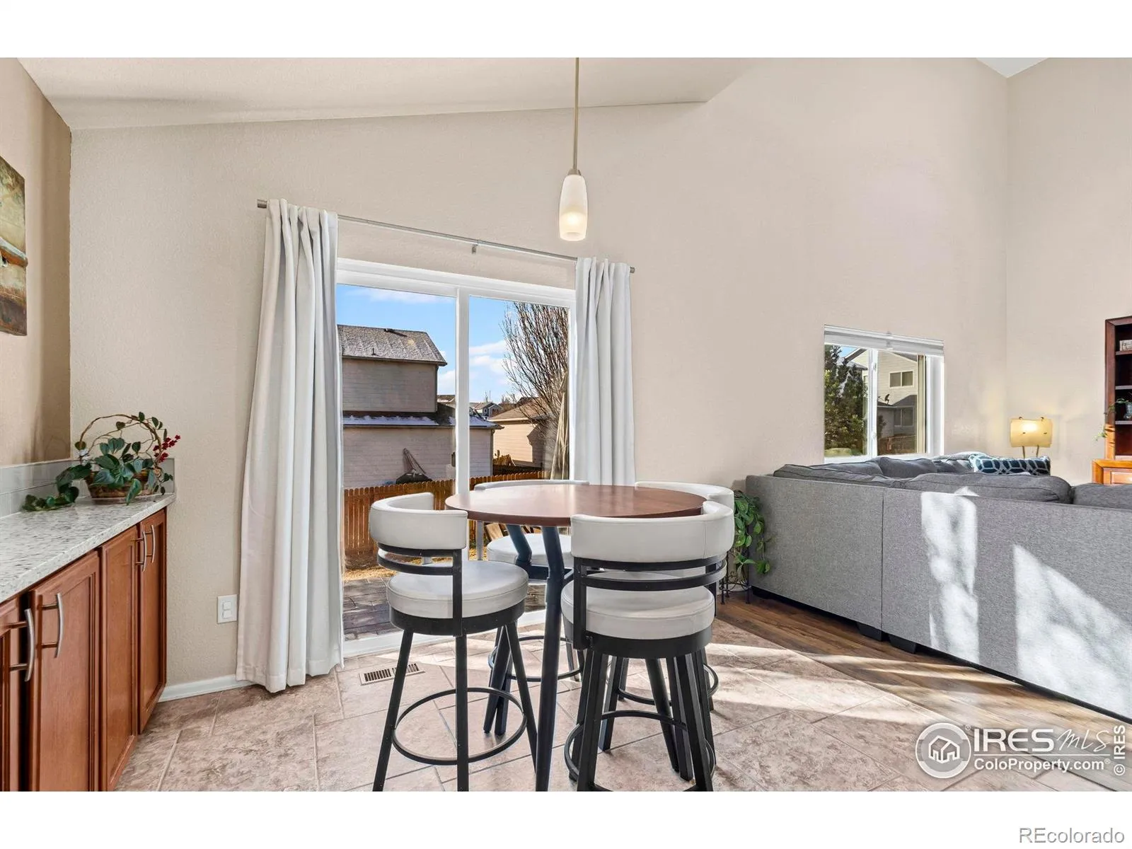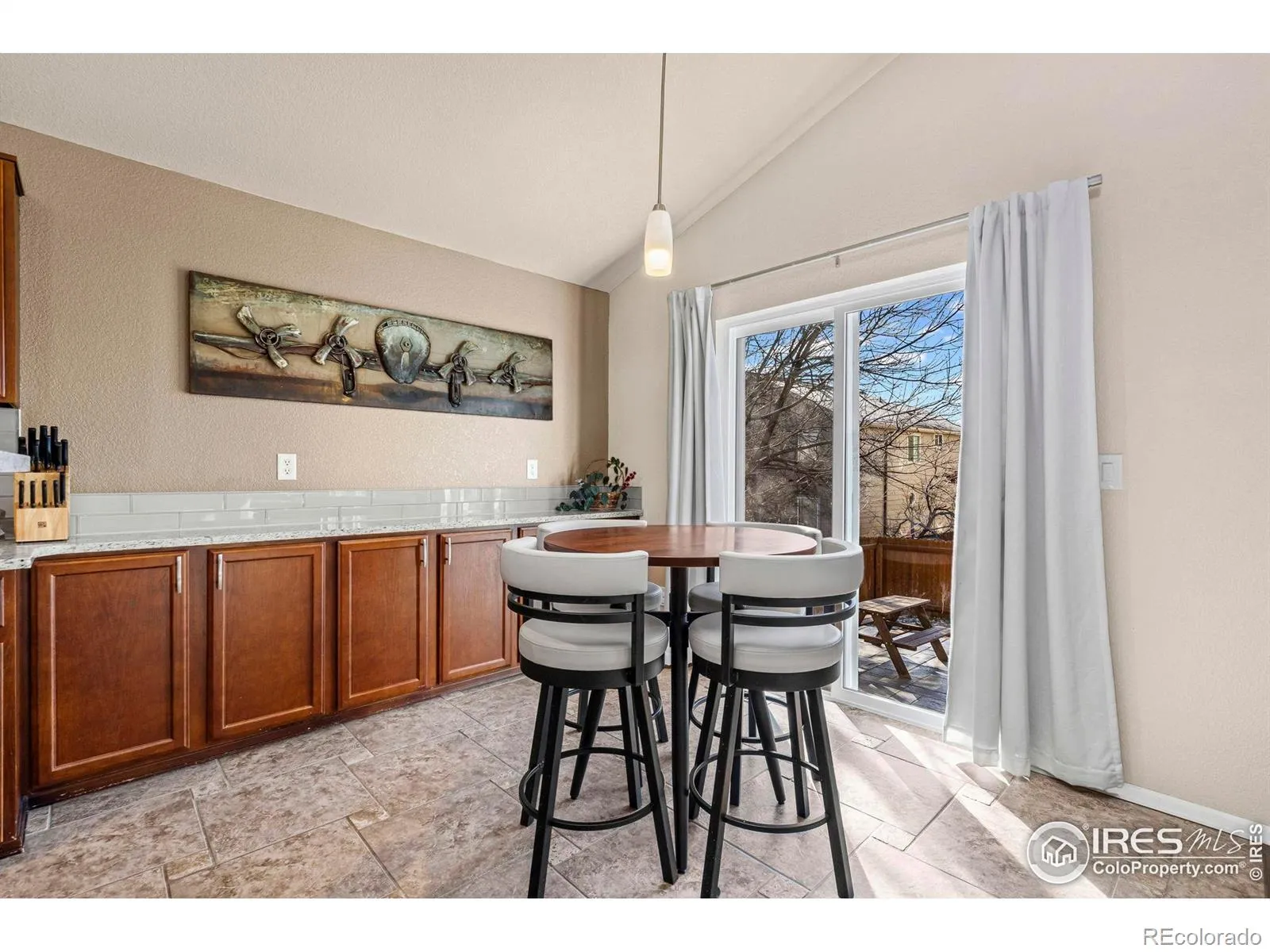 Immaculately maintained in the highly sought-after Ridgewood Hills subdivision, located just minutes from the community pool and Coyote Ridge Elementary. This home blends timeless appeal with modern updates, offering a comfortable, move-in-ready retreat in Fort Collins. This 4-bedroom, 3-bath residence features a main-floor primary suite with a fully remodeled bathroom designed for relaxation. Highlights include electric radiant heated tile floors, dual shower heads, a Roman tub faucet, granite countertops, and elegant travertine finishes-creating a true spa-like escape. The main level also showcases upgraded wood flooring and a bright, open layout ideal for both everyday living and entertaining. The kitchen is thoughtfully updated with granite countertops, a sleek glass tile backsplash, and new appliances installed in May 2024, including a stove, microwave, and refrigerator. Additional enhancements include new Performance Windows (December 2024), a Quiet Cool whole-house fan (May 2023), and an Active Radon System, providing energy-efficient comfort and added peace of mind. Step outside to the stamped concrete back patio, perfect for relaxing evenings or hosting gatherings. Residents of Ridgewood Hills enjoy access to lush greenbelts, a neighborhood pool, and a playground nearby, while outdoor enthusiasts will appreciate the adjacent ridgeline trail offering panoramic views of Longs Peak and Horsetooth Rock-ideal for morning hikes or weekend adventures.