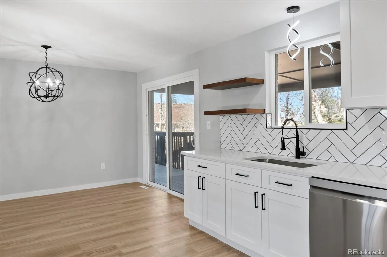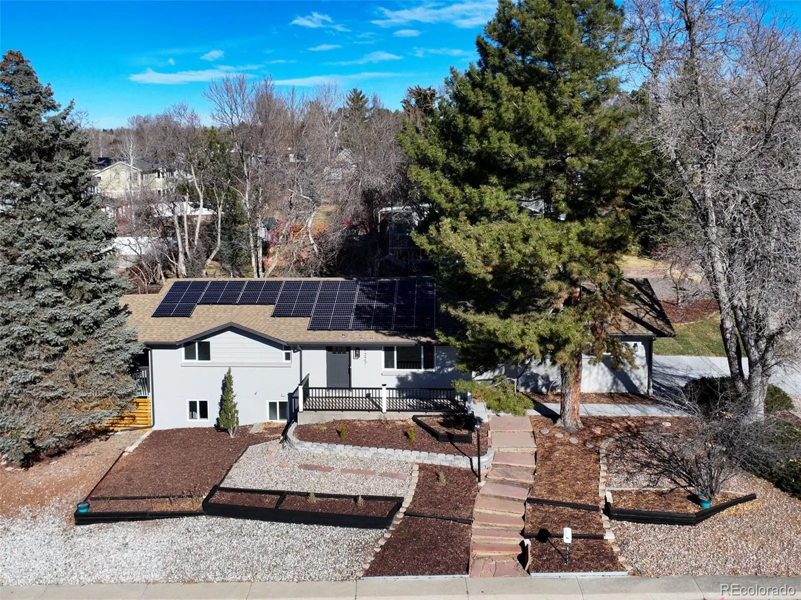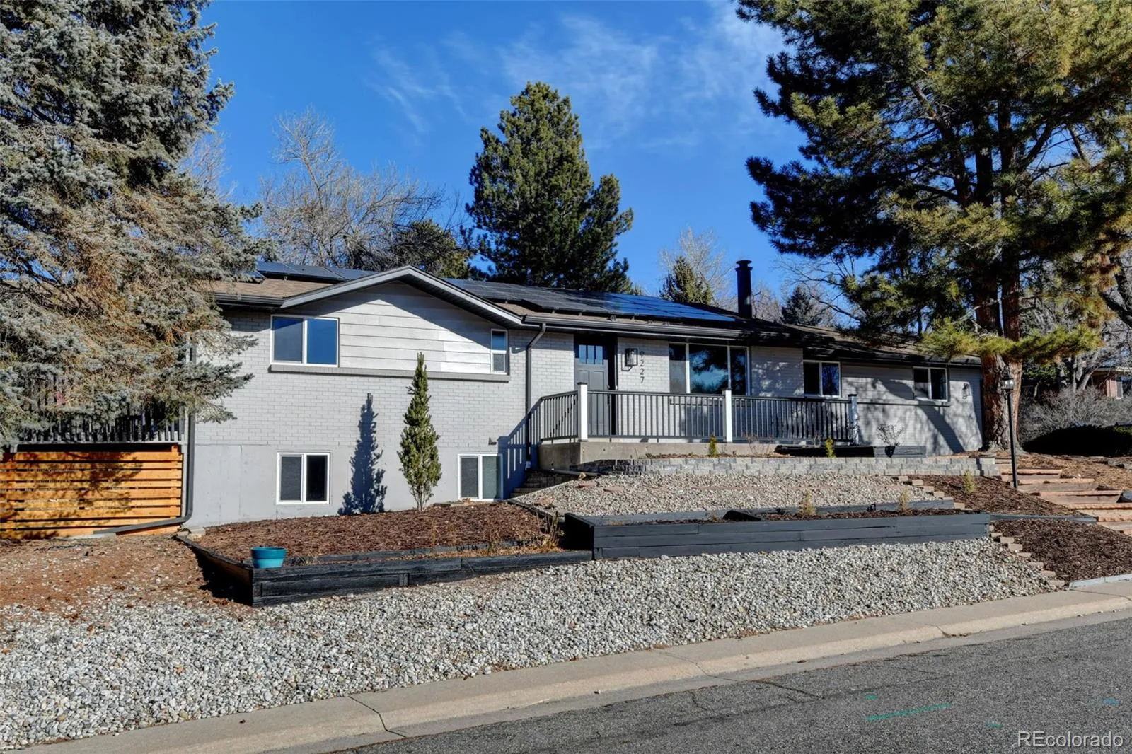 Fully remodeled and truly move-in ready, this 4-bedroom, 4-bath home offers mountain views, flexible multi-generational living spaces, & an exceptional Arvada location close to everything the area has to offer, including just 2 blocks from Majestic View Park & Nature Center! Thoughtfully updated from top to bottom, this home blends modern style with everyday comfort. The open main level features new luxury vinyl flooring, fresh interior finishes, & a spacious great room with a wood burning fireplace, perfect for both daily living and entertaining. The fully renovated kitchen showcases quartz countertops, modern cabinetry, & stainless steel appliances, seamlessly connecting to the main living space. Enjoy breathtaking mountain views from the wraparound covered deck, ideal for morning coffee, evening sunsets, & year-round enjoyment. The main-level primary suite provides easy one-level living with an all new spa-inspired bathroom & generous closet space. The finished walkout basement is perfectly suited for multi-gen living or extended guest space, featuring a large secondary living area, kitchenette space, a private suite with its own new bath, additional bedroom & bath, & direct access to a covered patio & the fully fenced backyard, offering privacy & independence while remaining connected to the home. Recent updates include new windows, flooring, new texture, new interior & exterior paint, new doors & trim, new everything in all 4 bathrooms, updated plumbing, new electrical outlets & light fixtures, a new water heater, newer furnace, new AC, new garage door, new concrete driveway & garage floor, new landscaping, and new fencing. Roof in 2018-Owned solar panels (no lease!) provide energy efficiency & low utility costs. All in a great location close to trails & open space, just minutes from Olde Town Arvada, parks, dining, shopping, commuter routes, this home offers the perfect blend of lifestyle, convenience, and versatility. NO HOA or Metro Tax* Did I mention Views!