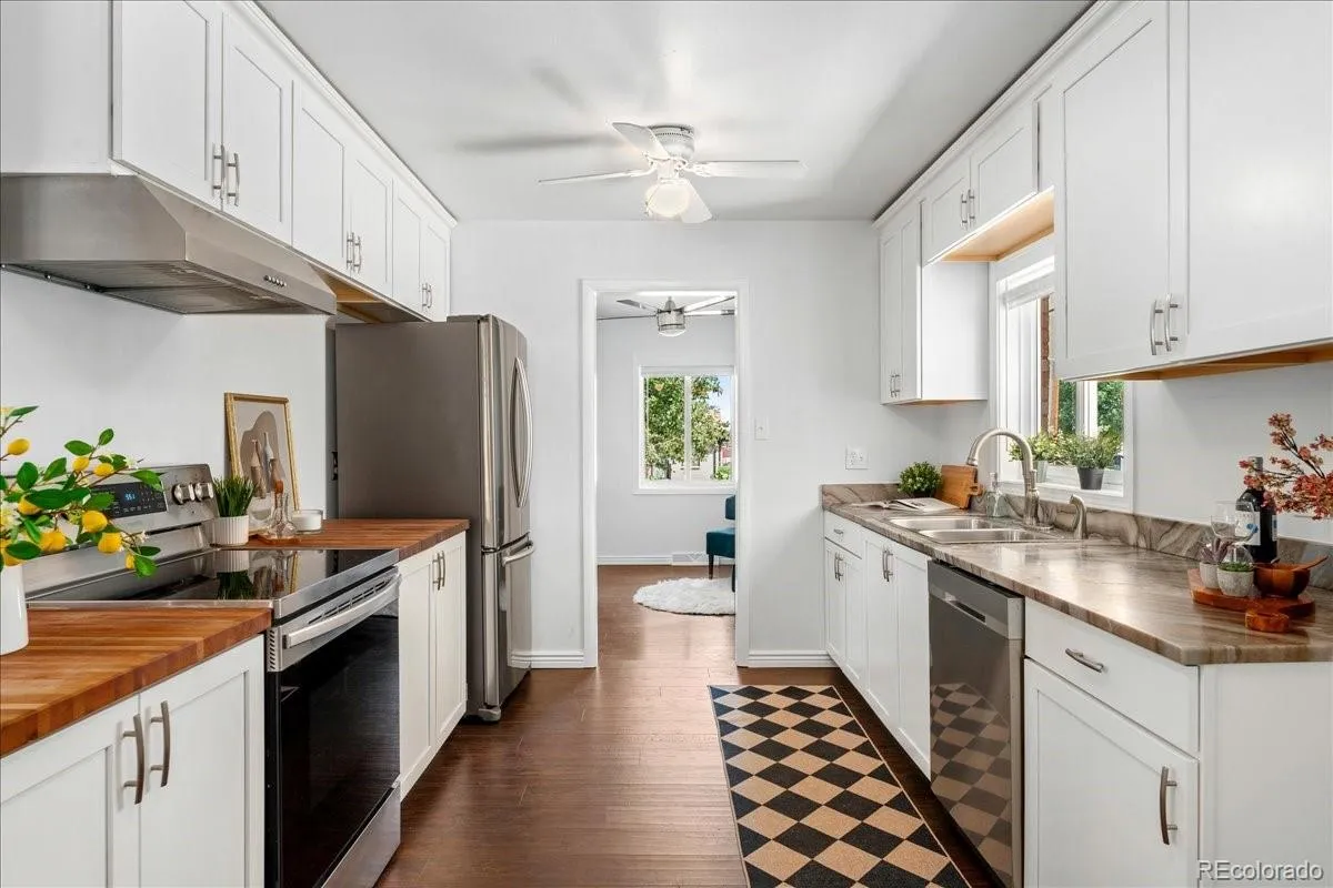 The kitchen strikes the perfect balance of style and function with updated cabinetry, granite and butcher block counters, and stainless steel appliances. A spacious dining room makes entertaining easy, while two comfortable bedrooms and a freshly painted full bath complete the main level.