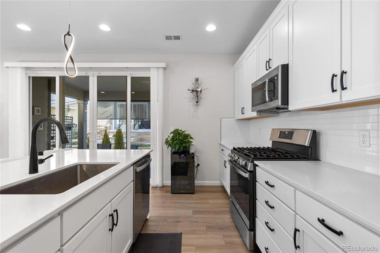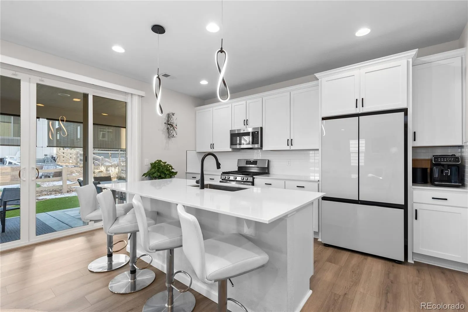 Welcome to 8334 Butte Creek in Sterling Ranch! This turn key 3 bed / 3 bath home offers the perfect blend of modern style and low maintenance living in one of Littleton’s most sought after master planned communities. The open concept main level is filled with natural light and features wide plank flooring, a spacious living area, and a contemporary kitchen with crisp cabinetry, stainless appliances, and a large island, ideal for everyday living and entertaining. You’ll also love the upgraded contemporary lighting fixtures throughout, adding a clean, modern feel to every space. Upstairs, the private primary suite includes an ensuite bath and generous closet space, complemented by two additional bedrooms and bathrooms for flexibility and comfort. Additional highlights include an epoxy coated garage floor and professionally designed low maintenance landscaping, making this home truly move in ready. Enjoy Sterling Ranch’s incredible lifestyle with miles of trails, parks and open space, community events, and Sterling Center amenities, all with easy access to the foothills.