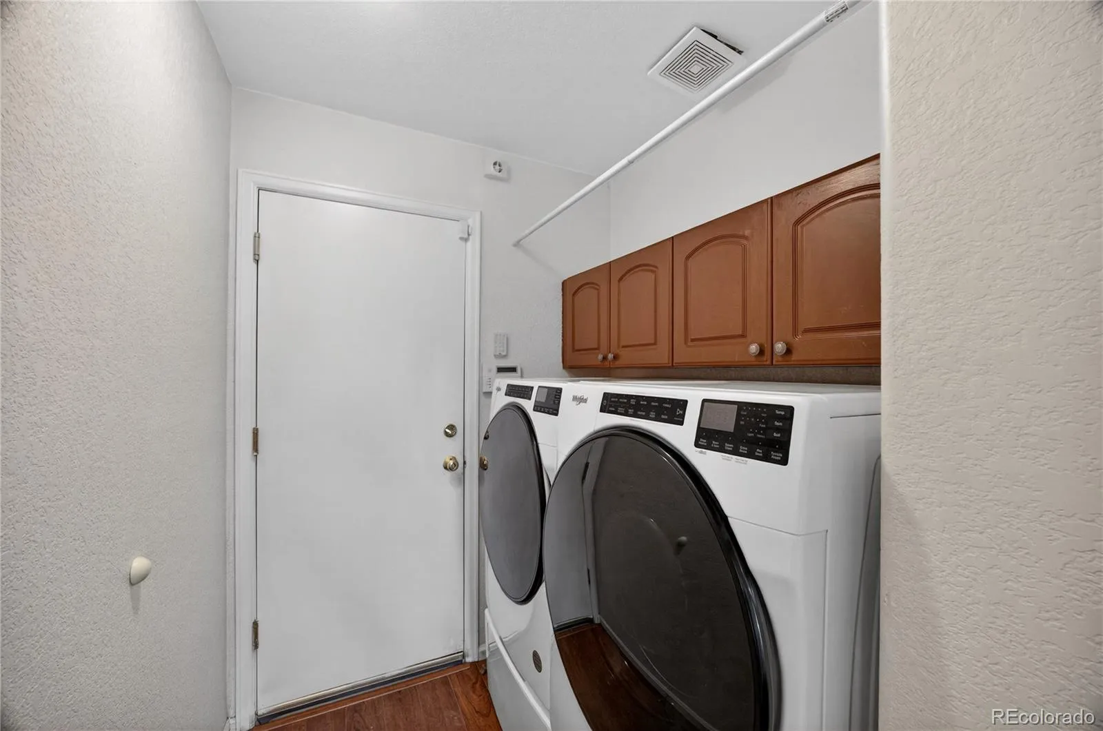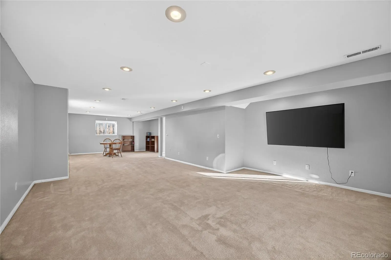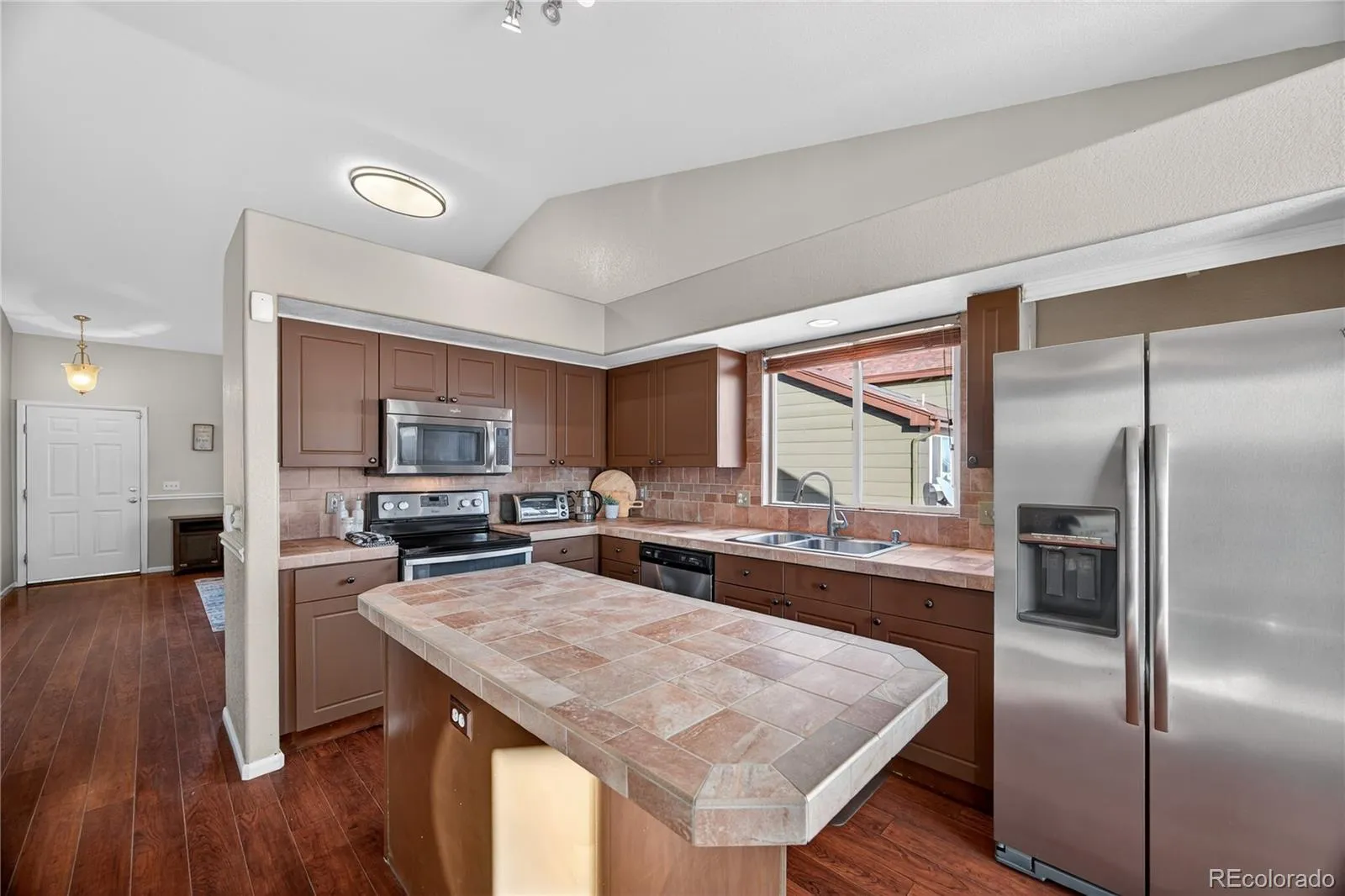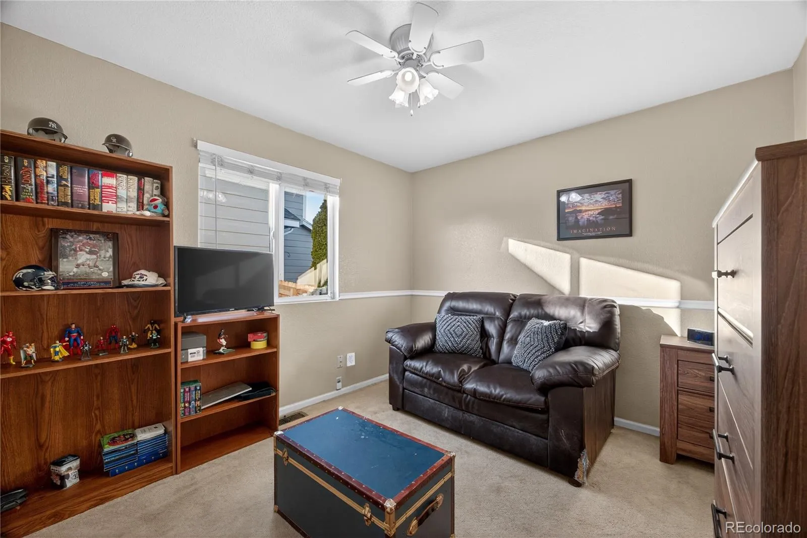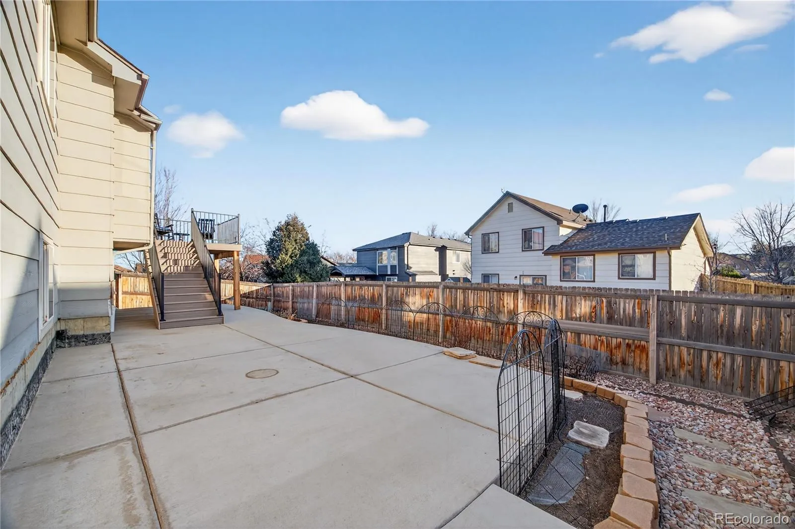 Outdoor living is easy with a low-maintenance backyard featuring two-level Trex decking and concrete patio, accessible from the kitchen and family room—ideal for entertaining or everyday use. Additional features include a two-car garage with workbench and storage, ceiling fans with remotes, updated electrical panel, newer furnace & central air. Conveniently located near neighborhood parks with easy access to I-25 and nearby shopping.