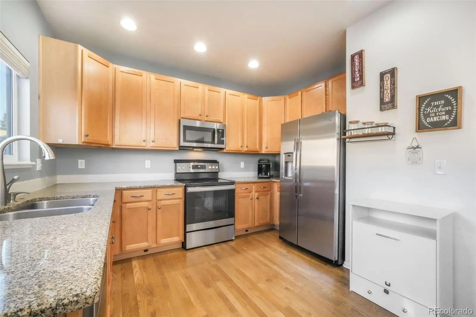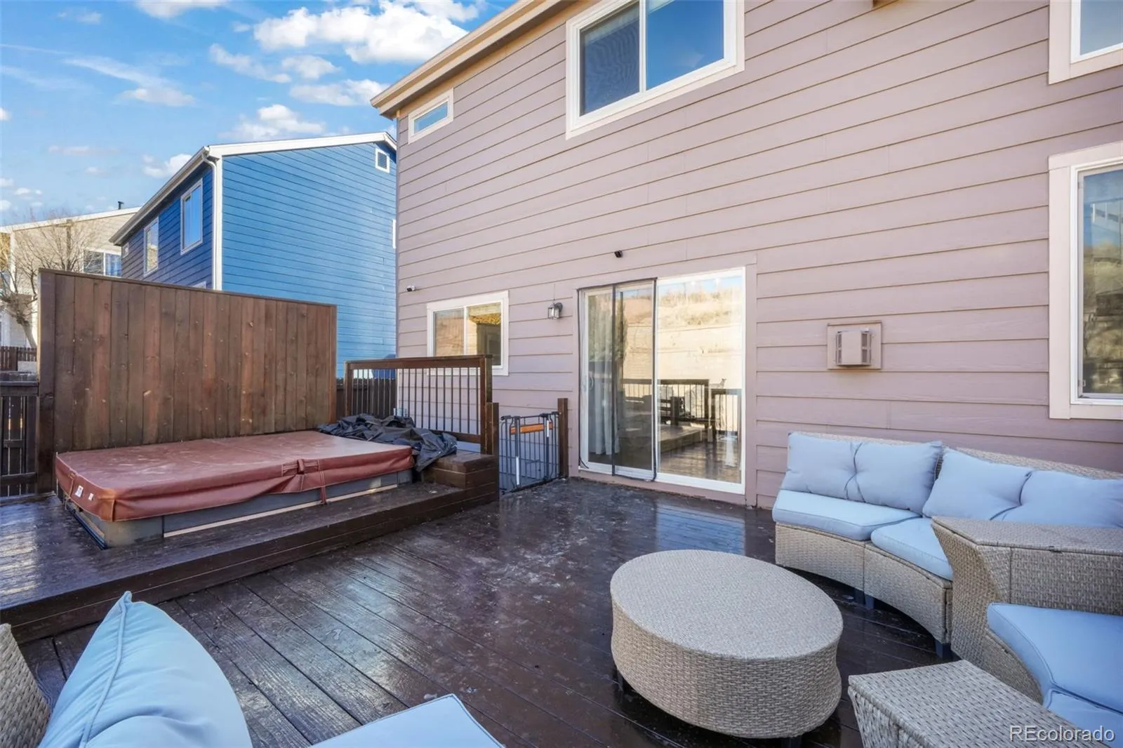 Welcome to this well-maintained two-story home offering just over 2,100 square feet of thoughtfully designed living space, plus a partially finished basement. Ideally located within walking distance of Fountain Mesa Elementary School, this home blends comfort, functionality, and convenience. Upon arrival, you’ll be greeted by a beautifully xeriscaped front yard and a welcoming covered front porch. Step inside to real wood flooring throughout the main level and a bright, open layout. The kitchen features granite countertops, stainless steel appliances, a full-size pantry, and a window-side sink that overlooks the backyard. A tile-surround fireplace creates a warm separation between the living and dining areas, with the dining space offering direct access to the backyard. The main level is complete with a convenient mudroom/laundry area and a half bath. Upstairs, a built-in desk area at the top of the landing provides the perfect work-from-home or study nook. The spacious primary suite includes an attached bath with dual vanity, soaking tub, separate shower, barn door entry, and a walk-in closet. Two additional bedrooms and a full bathroom complete the upper level. The partially finished basement offers a versatile recreation room ideal for a workout space, media room, or potential additional bedroom. A half bath is already in place and could be converted to a three-quarter bath with the addition of a shower, along with abundant storage space. The backyard is a true highlight, featuring a beautiful wood deck with a privacy wall, included hot tub, built-in fire pit area, and full fencing—perfect for relaxing or entertaining. Additional features include air conditioning and a location near Fort Carson with easy access to Peterson Air Force Base. This home offers privacy while remaining close to everyday conveniences.Amazing VA Assumable Opportunity available. VA substitution eligibility required. Please reach out to listing agent out for further information.