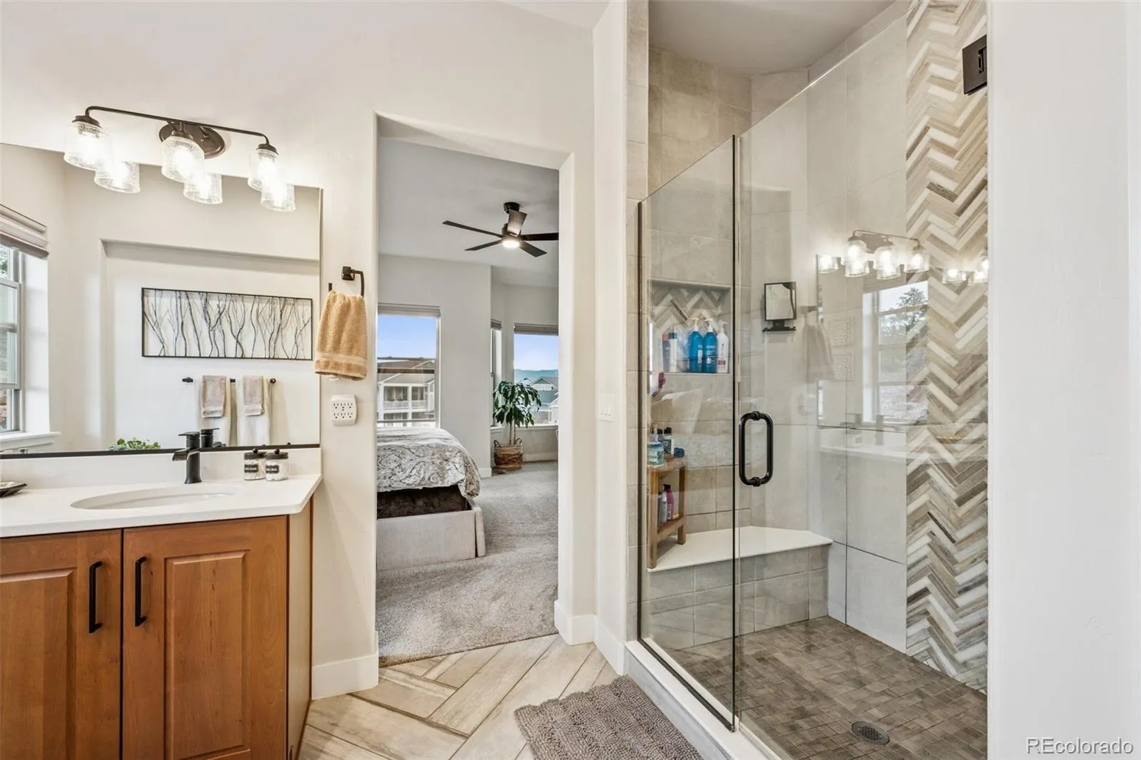 Colorado living meets contemporary design in this stunning ranch-style walkout in the highly sought-after Sanctuary Pointe community. This upgraded Stratford floor plan by Classic Homes offers 4,600SF, featuring 5 bedrooms plus a dedicated office, 4 full bathrooms, and an oversized 3-car garage with EV charger, workshop area, epoxy floors—perfectly balancing elegance, functionality, and mountain charm. Big, bright spaces and sweeping mountain views are highlighted by tinted picture windows that provide natural light while maintaining privacy. The gourmet kitchen features an extended island, upgraded finishes, and an inviting eating nook. A separate dining area and great room with a stone-surround gas fireplace create a warm, connected living space. Step outside to the extended covered composite deck for relaxing or entertaining while enjoying serene, wooded surroundings and Front Range vistas. The main level includes a luxurious owner’s suite with a spa-inspired 5-piece bath, soaking tub, walk-in shower, and large closet. A second bedroom with bay window and decorative shutter wall, a full bath, and a dedicated office with views complete the level. The laundry/mudroom off the garage adds convenience. The walkout basement expands living space with a gas fireplace, large recreation room with wet bar, junior ensuite, two additional bedrooms, and another full bath—ideal for guests or multi-generational living. Outside, extensively landscaped areas feature xeriscaping, an extended patio, fire pit, corn hole setup, and space for a hot tub—perfect for entertaining. Combining privacy, sophistication, and timeless design, this Sanctuary Pointe ranch walkout embodies the best of Colorado living—situated between Highway 83 and I-25, just minutes from parks, trails, golf, schools, the Air Force Academy, and local amenities. Don’t just imagine it, live it. Reach out to schedule your tour!