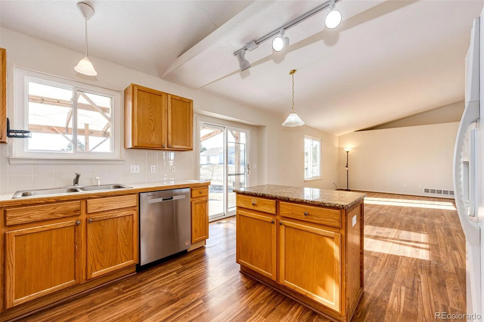 A RARE FIND on a ONE ACRE LOT close in to Elizabeth; welcome to Overland Estates where there is NO HOA fees and conveniently located just off the highway via paved roads. Terrific ranch-style home has brand NEW ROOF, NEW CARPET, NEW FURNACE AND LOTS OF UPDATES. Great floorplan with everything you need on the main floor. Step inside and feel at home, double sided fireplace catches your eye. Easy care vinyl flooring and terrific open concept floor plan with lots of natural light. Formal dining room perfect for round or square dining table. Large primary suite has private bathroom and back patio access. You will love the back deck from this bedroom, perfect place to enjoy morning coffee or a quiet evening. Office on main level could easily be another bedroom. Basement is partially finished with walk-out access featuring 2 more bedrooms and 3/4 bathroom; unfinished portion is great storage. Basement has private entrance accessed with its own driveway, great for multi-generational living. Property is fully fenced, has a concrete driveway and a carport in addition to the attached garage. 3 outbuildings and lots of room to add that shop of your dreams. Great fenced backyard with mature landscaping and a covered back patio to enjoy. Dog kennel is in good condition with 4 attached pens. The “she shed” is finished with power, a neat studio or playhouse. Seller can offer quick close and possession and all appliances including washer/dryer are included! Elizabeth is a terrific small town, safe and quiet with a fun community and all the conveniences you need; put this one on your list to see, it won’t last long!