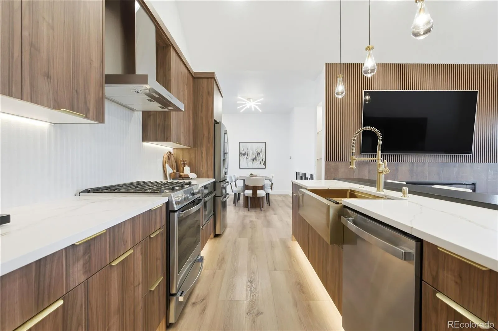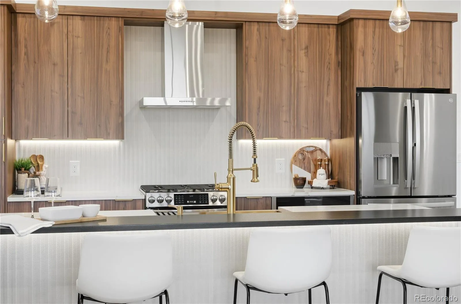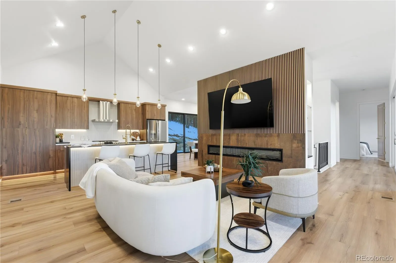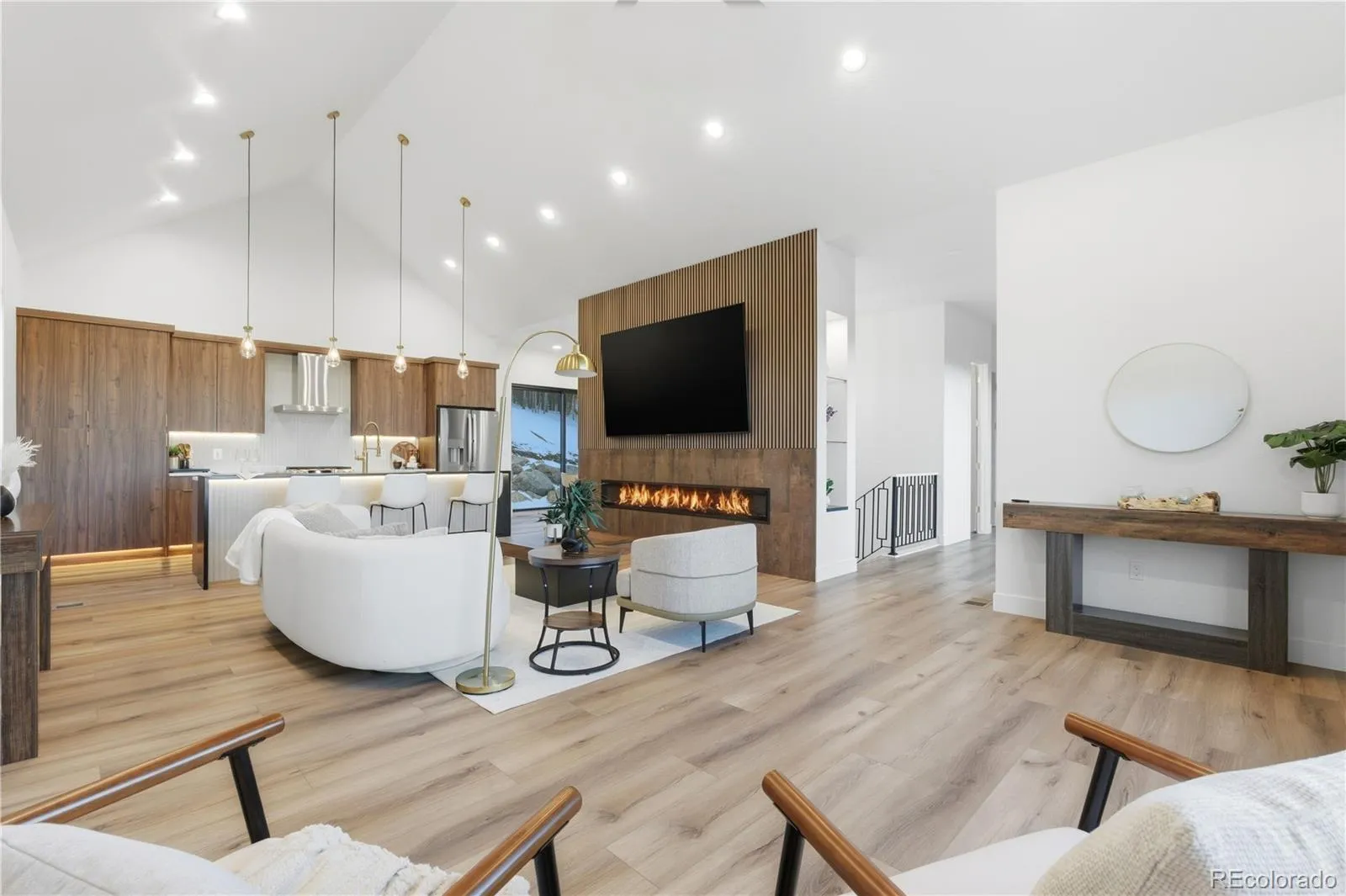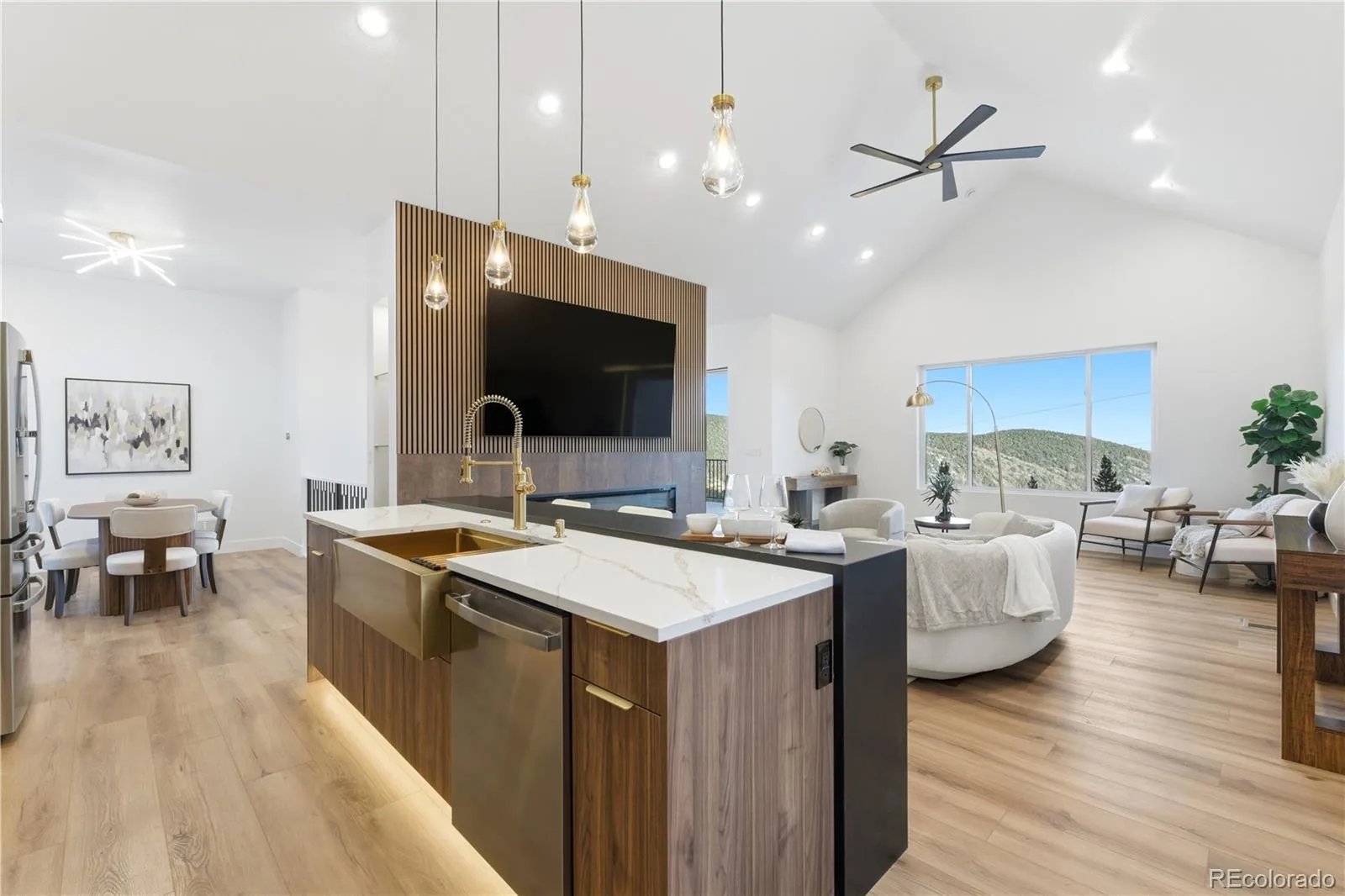Take in breathtaking mountain views from expansive windows & a large covered deck off of a bright, open great room with soaring vaulted ceilings, an electric fireplace wrapped in European tile, and an exceptional dining space made for gathering. The kitchen is the true heart of the home – with a dramatic waterfall island, luxury quartz countertops, custom soft-close cabinetry, a beautiful custom backsplash, high-end LG stainless steel appliances, a gas range, and a pantry with roll-out organizers.