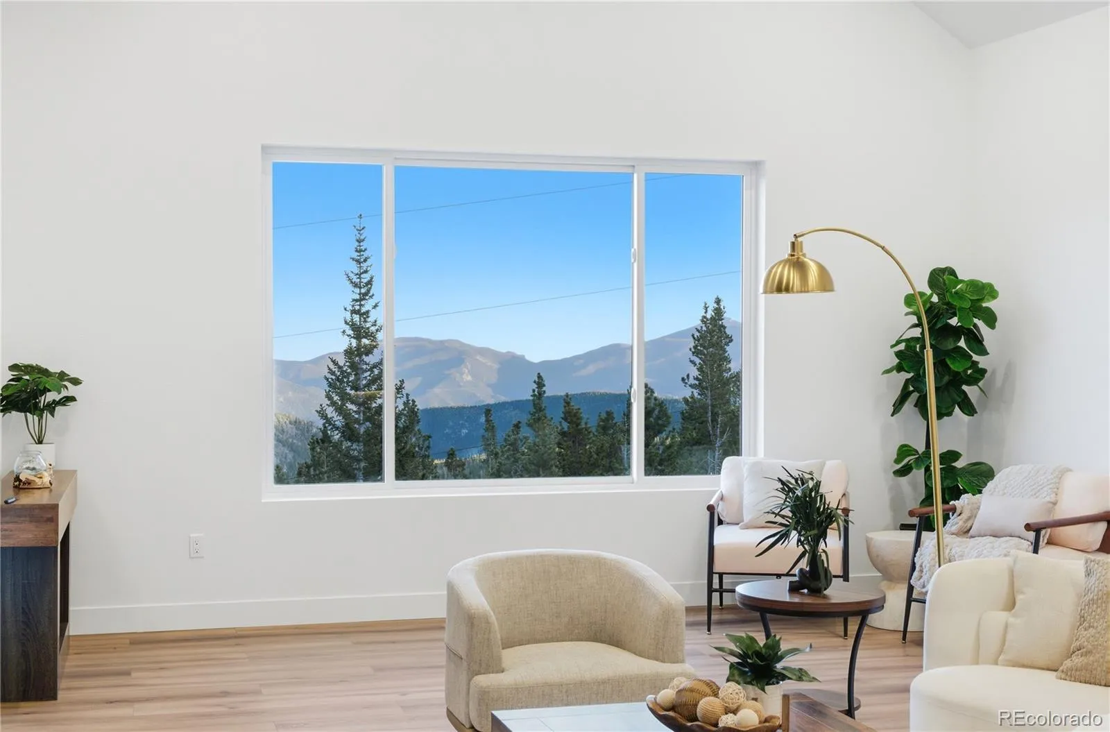 The primary suite is a relaxing escape with spectacular mountain views, a spa-like five-piece bath featuring a soaking tub, oversized double shower and a dream walk-in closet with built-in custom organizers. Two additional spacious bedrooms and a beautifully finished bathroom offer privacy and convenience on the main level. Off the dining room there is an expansive back patio perfect for entertainment. Fully finished and insulated oversized heated two-car garage offers plenty of storage for an ATV and all your mountain gear, plus a 220V charger ready for your electric vehicle. Additional highlights include a tankless water heater, whole-house foam insulation for exceptional warmth and efficiency, a Starlink WiFi modem, radon mitigation system, and smart-home security with a Nest doorbell and garage-mounted camera. You’ll also love the main-floor laundry room complete with cabinetry and a utility sink. Community water and sewer add convenience, and the location seals the deal – just minutes to two private fishing lakes and hiking trails, close to ski resorts, and an easy drive to historic downtown Idaho Springs with lots of shopping and dining options.