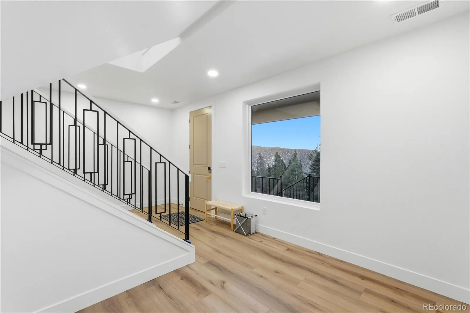 The primary suite is a relaxing escape with spectacular mountain views, a spa-like five-piece bath featuring a soaking tub, oversized double shower and a dream walk-in closet with built-in custom organizers. Two additional spacious bedrooms and a beautifully finished bathroom offer privacy and convenience on the main level. Off the dining room there is an expansive back patio perfect for entertainment. Fully finished and insulated oversized heated two-car garage offers plenty of storage for an ATV and all your mountain gear, plus a 220V charger ready for your electric vehicle. Additional highlights include a tankless water heater, whole-house foam insulation for exceptional warmth and efficiency, a Starlink WiFi modem, radon mitigation system, and smart-home security and exterior lights, Nest doorbell and garage-mounted camera. You’ll also love the main-floor laundry room complete with cabinetry and a utility sink. Community water and sewer add convenience, and the location seals the deal – just minutes to two private fishing lakes and hiking trails, close to ski resorts, and an easy drive to historic downtown Idaho Springs with lots of shopping and dining options. Schedule a tour today!