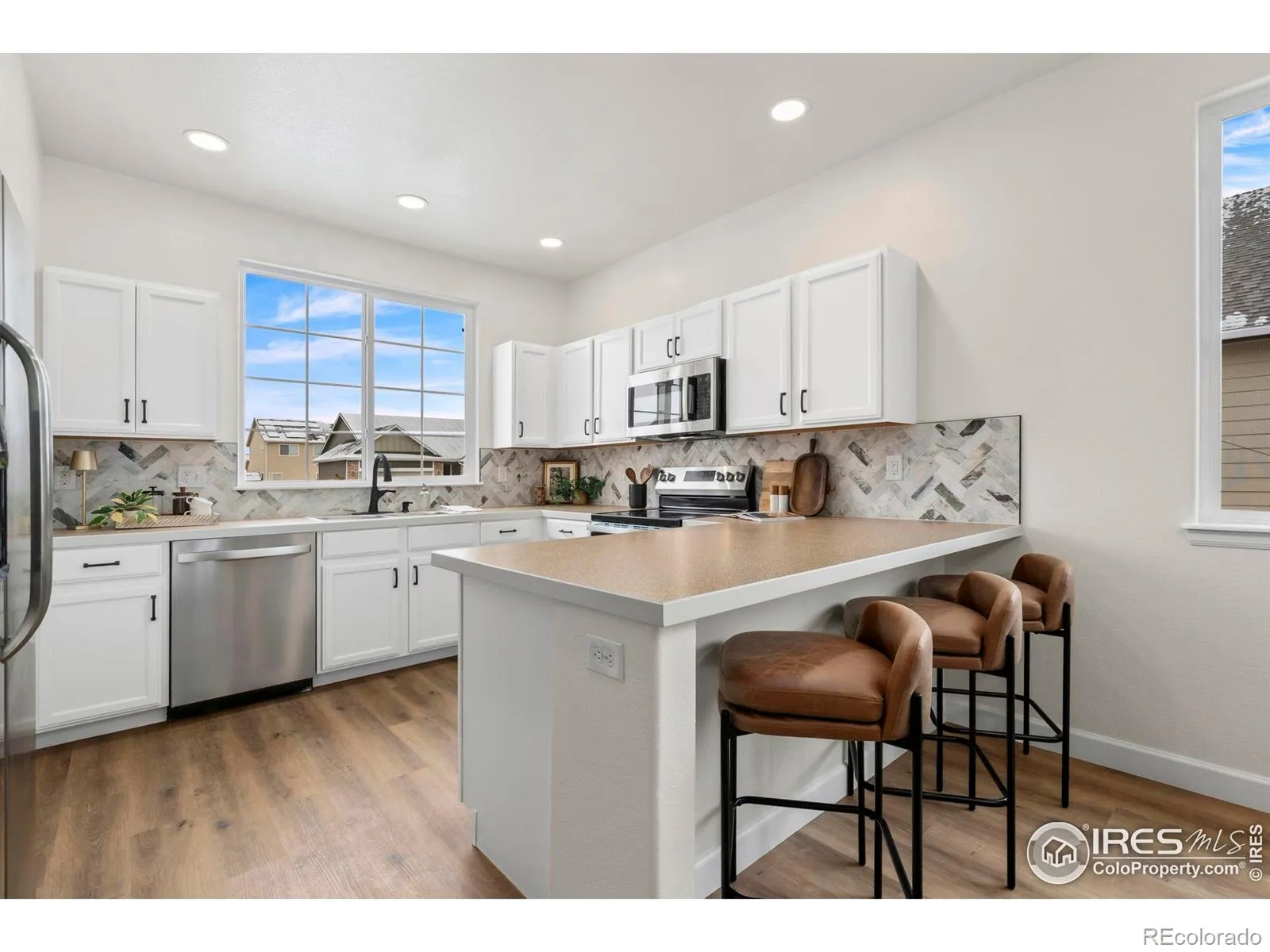 Welcome to this freshly updated 3 bed 2.5 bath in Park Meadows, Wellington! This home has a ton of new and brings the value, offering new flooring, freshly painted cabinets, new interior paint, and new stylish backsplash, plus brand new microwave and range/oven! Conveniently located in a wonderful community East of I-25, this home offers a light and bright flowing floorplan and unfinished basement to make your own! Upon entering the home, note the front patio (freshly repoured!) large enough to set a swing or make your own ideal welcoming and relaxing space. When entering the home, the entryway offers elbow room before moving into the kitchen/dining area. The kitchen is well laid out and offers a walk-in pantry and all that new mentioned above! The lower level has so much natural light from the newly replaced 3-panel patio slider, and offers a generous laundry and half bath. The 3-car tandem garage is perfect for 2 cars plus storage or for a workshop or hobby space! Upstairs, find 3 welcoming bedrooms with natural light and generous square footage as well as 2 baths. Outside, find a fully fenced in yard and extended patio to make your own! Don’t miss experiencing the value of this home in person, schedule your showing today! Listing agent is related to seller.