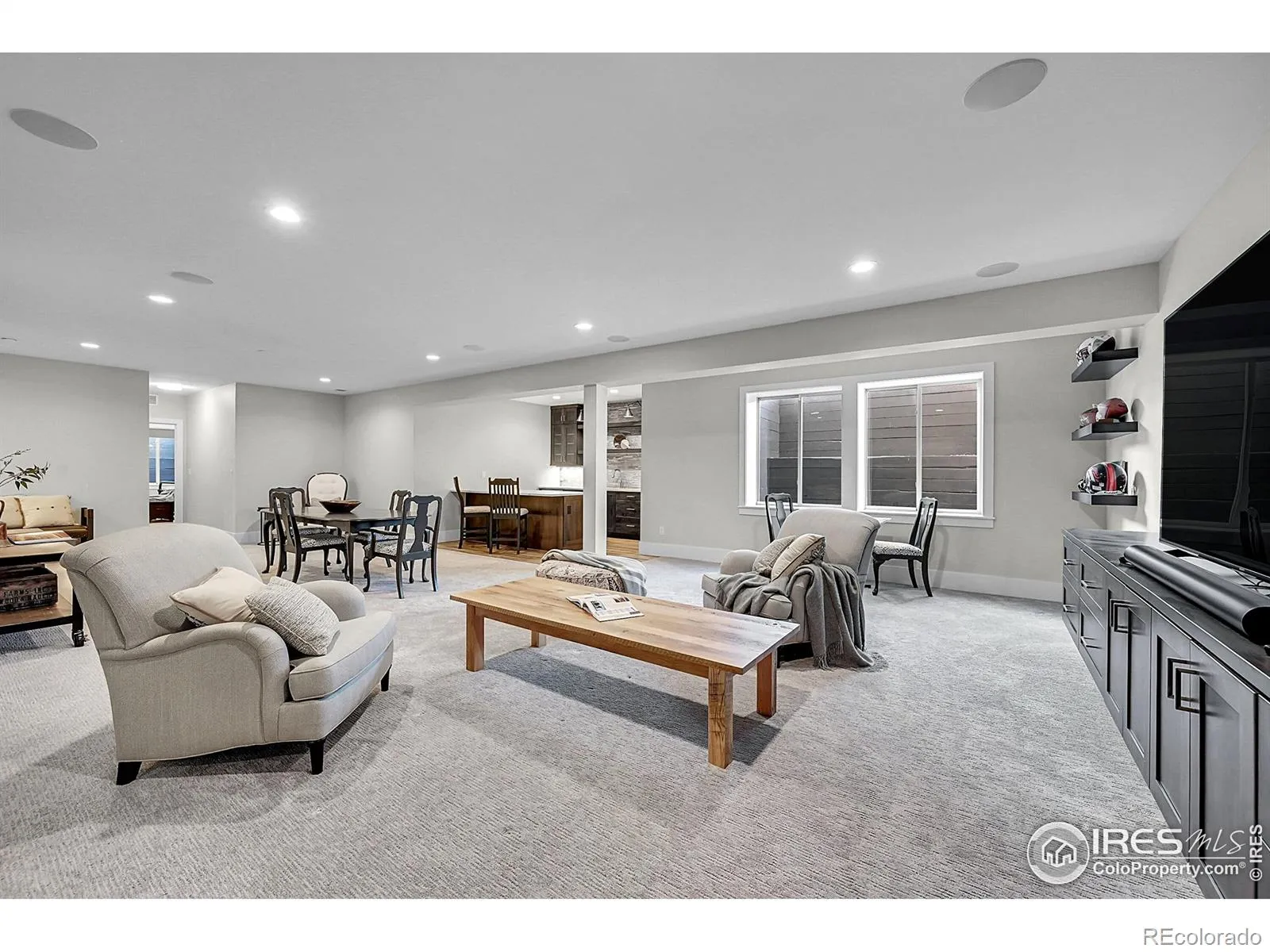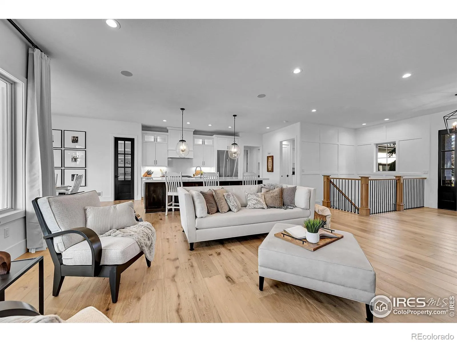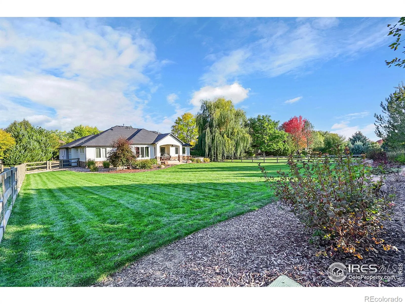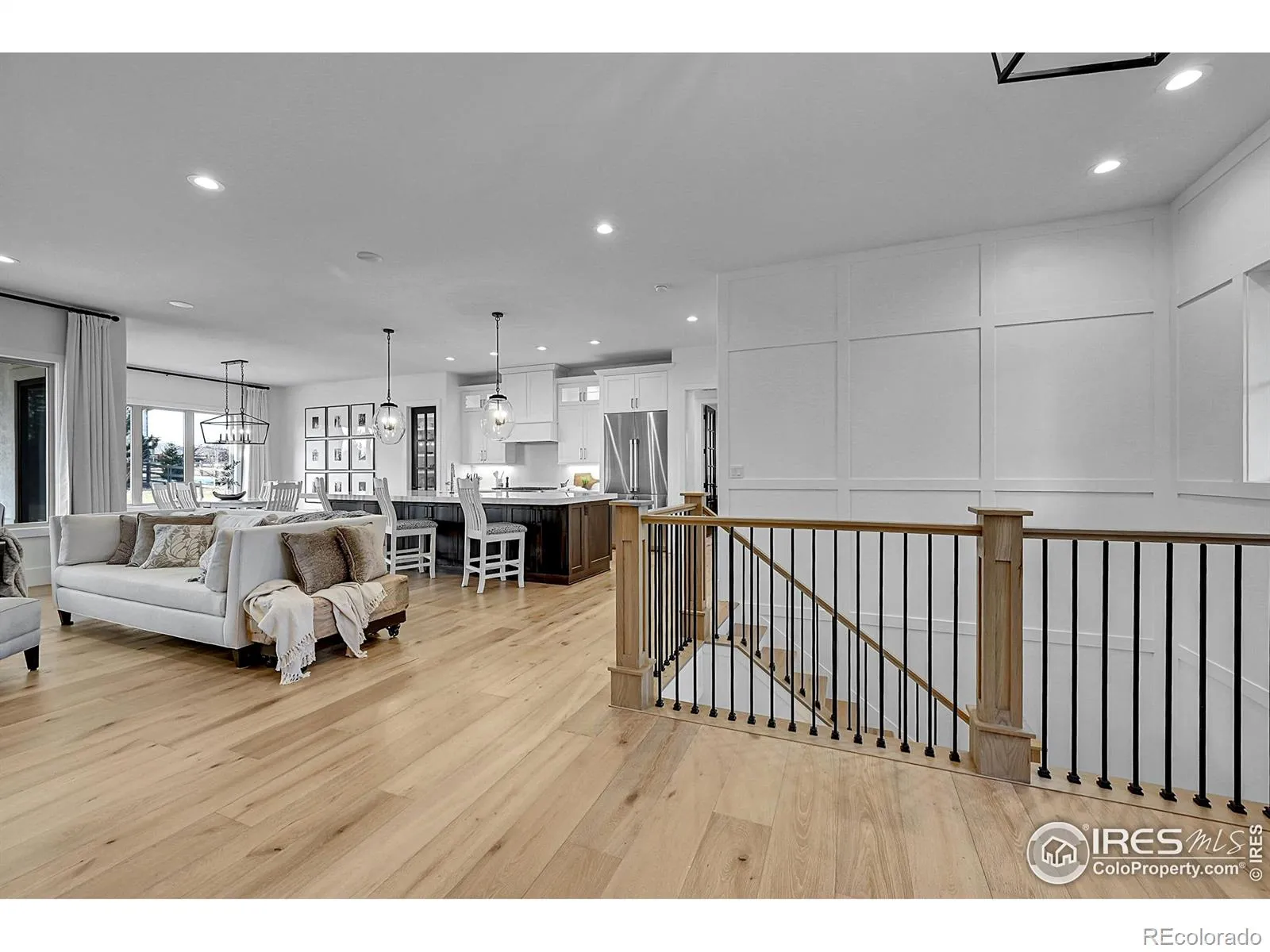 Welcome to 6582 Rookery Rd, a 5-bedroom, 6-bath, 5,012 sq ft ranch-style home designed for exceptional single-level living in the prestigious Sanctuary at Fossil Lake Ranch. Set on a private, professionally landscaped 0.53-acre lot, this beautifully remodeled Lauren Ashley Homes residence is located in one of Fort Collins most sought-after neighborhoods. Enjoy an unbeatable location within walking distance to Zach Elementary, Preston and Kinard Middle Schools, and Fossil Ridge High School, with quick access to the Harmony Corridor, major employers, medical centers, and I-25. Blending modern farmhouse charm with elevated contemporary finishes, the home features flat white walls, elegant wood paneling, and wide-plank white oak engineered wood flooring. The open-concept gourmet kitchen showcases premium Dacor appliances, custom Milarc cabinetry, quartz countertops and backsplash, an oversized island, and a built-in bar refrigerator. A walk-in pantry with appliance garage and coffee bar adds everyday convenience. The light-filled living area is anchored by a floor-to-ceiling stone fireplace, floating shelves, custom built-ins, and expansive windows overlooking the serene backyard. The main level offers true single-floor living with a luxurious primary suite, second en-suite bedroom, powder room, dedicated office or optional bedroom, laundry suite, and a stunning mudroom. Outdoors, a covered patio with dining and lounge areas, string lighting, and a fire pit creates the perfect year-round entertaining space. The finished lower level provides additional flexibility with a family/media room, wet bar with dual beverage refrigerators, home gym, two en-suite bedrooms with walk-in closets, an additional powder room, and a second laundry area. Thoughtfully designed throughout, this home seamlessly blends luxury, comfort, and functionality just minutes from everything Fort Collins has to offer.