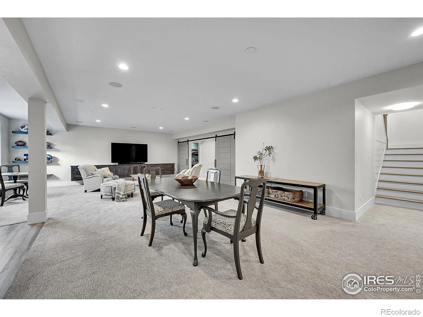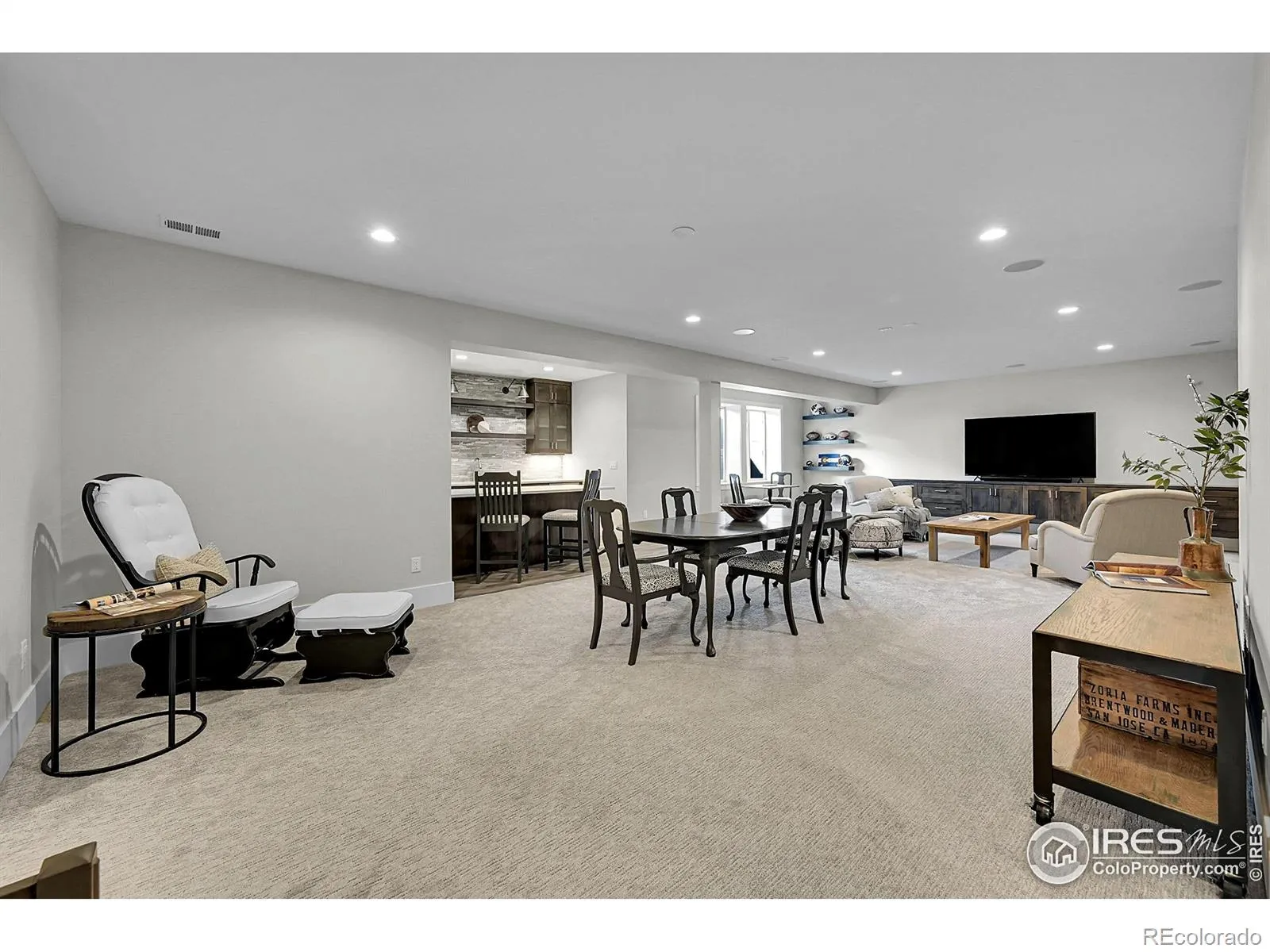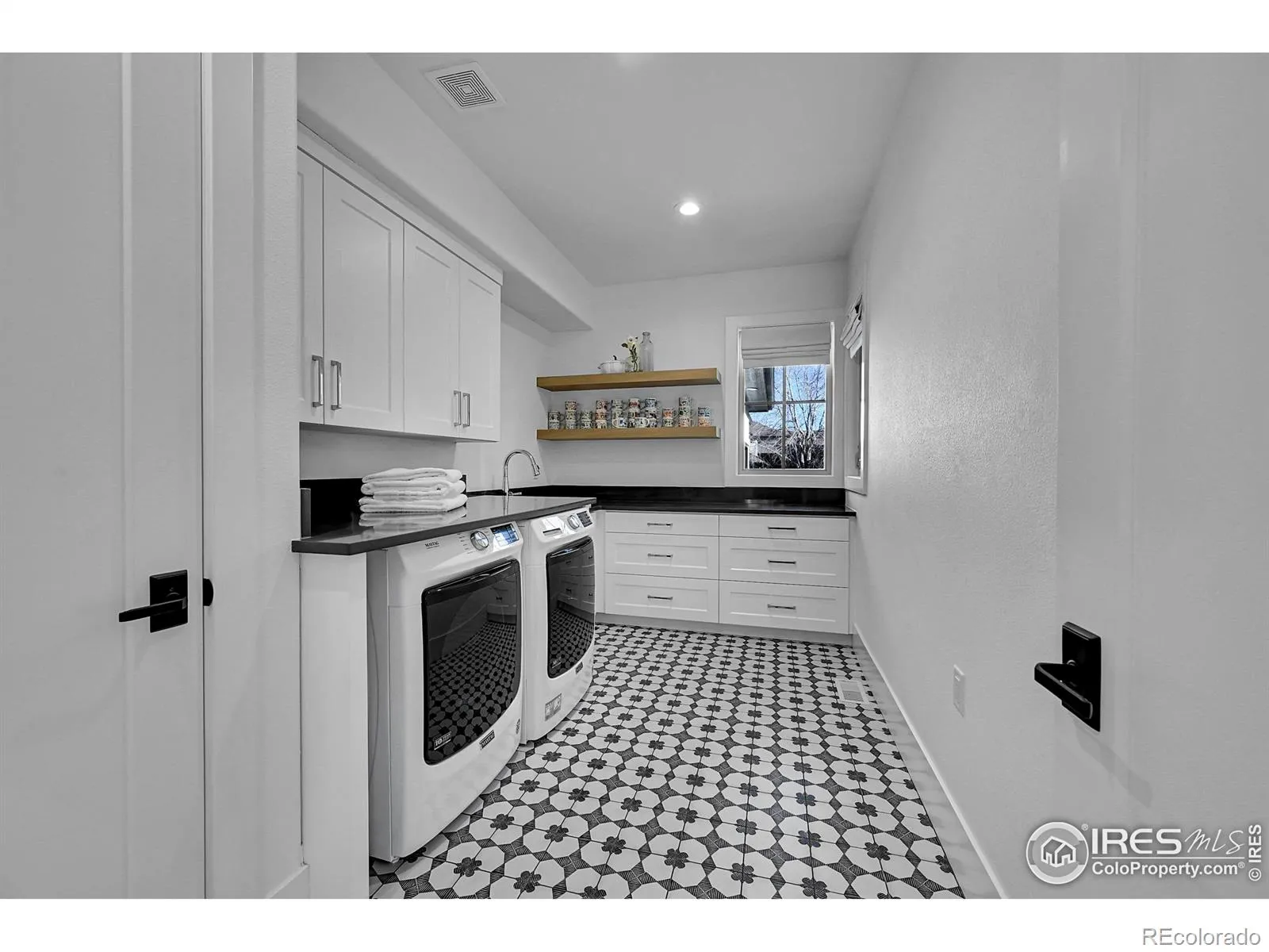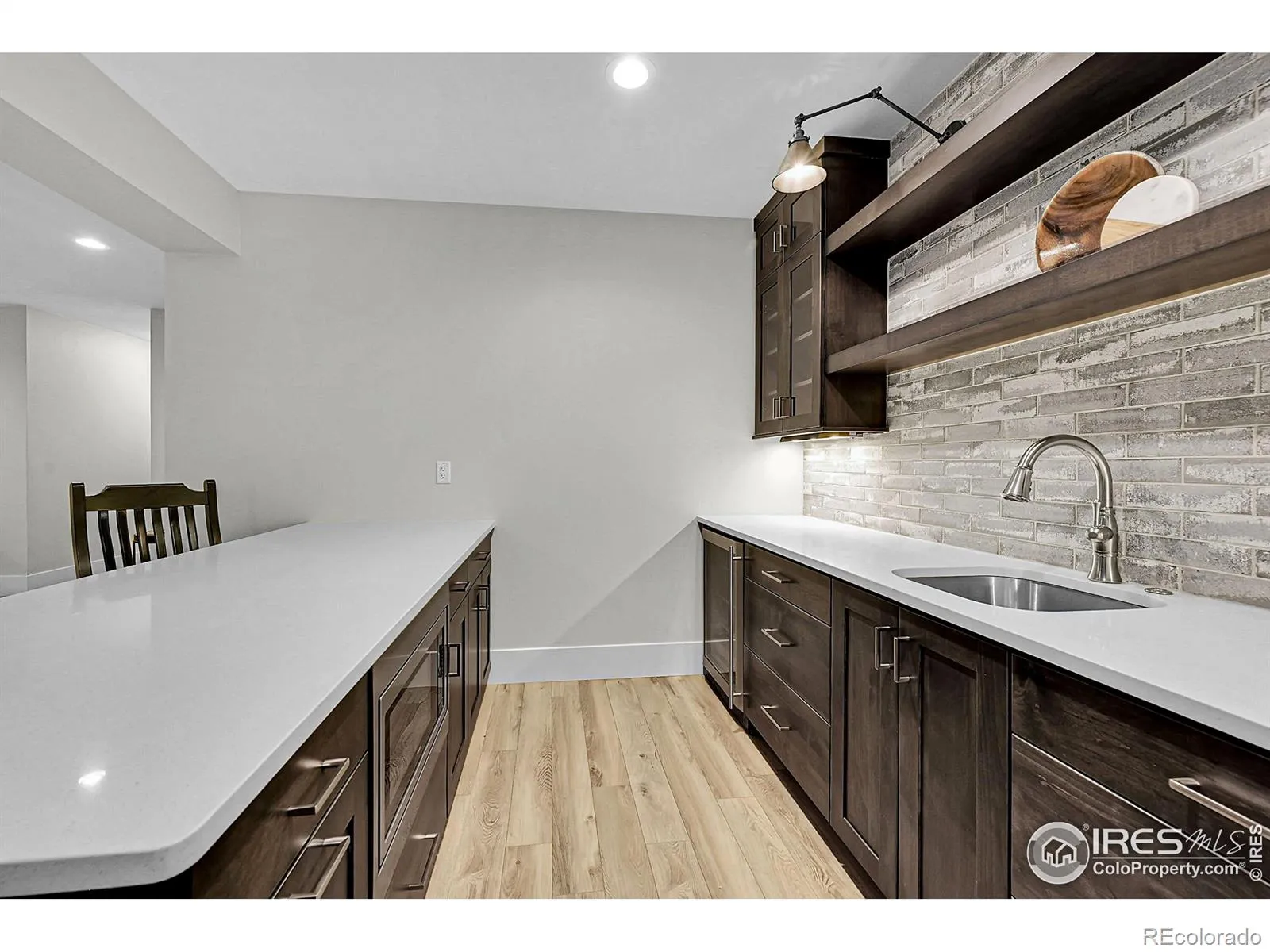 Welcome to 6582 Rookery Rd, a 5-bedroom, 6-bath, 5,012 sq ft ranch-style home designed for exceptional single-level living in the prestigious Sanctuary at Fossil Lake Ranch. Set on a private, professionally landscaped 0.53-acre lot, this beautifully remodeled Lauren Ashley Homes residence is located in one of Fort Collins most sought-after neighborhoods. Enjoy an unbeatable location within walking distance to Zach Elementary, Preston and Kinard Middle Schools, and Fossil Ridge High School, with quick access to the Harmony Corridor, major employers, medical centers, and I-25. Blending modern farmhouse charm with elevated contemporary finishes, the home features flat white walls, elegant wood paneling, and wide-plank white oak engineered wood flooring. The open-concept gourmet kitchen showcases premium Dacor appliances, custom Milarc cabinetry, quartz countertops and backsplash, an oversized island, and a built-in bar refrigerator. A walk-in pantry with appliance garage and coffee bar adds everyday convenience. The light-filled living area is anchored by a floor-to-ceiling stone fireplace, floating shelves, custom built-ins, and expansive windows overlooking the serene backyard. The main level offers true single-floor living with a luxurious primary suite, second en-suite bedroom, powder room, dedicated office or optional bedroom, laundry suite, and a stunning mudroom. Outdoors, a covered patio with dining and lounge areas, string lighting, and a fire pit creates the perfect year-round entertaining space. The finished lower level provides additional flexibility with a family/media room, wet bar with dual beverage refrigerators, home gym, two en-suite bedrooms with walk-in closets, an additional powder room, and a second laundry area. Thoughtfully designed throughout, this home seamlessly blends luxury, comfort, and functionality just minutes from everything Fort Collins has to offer.