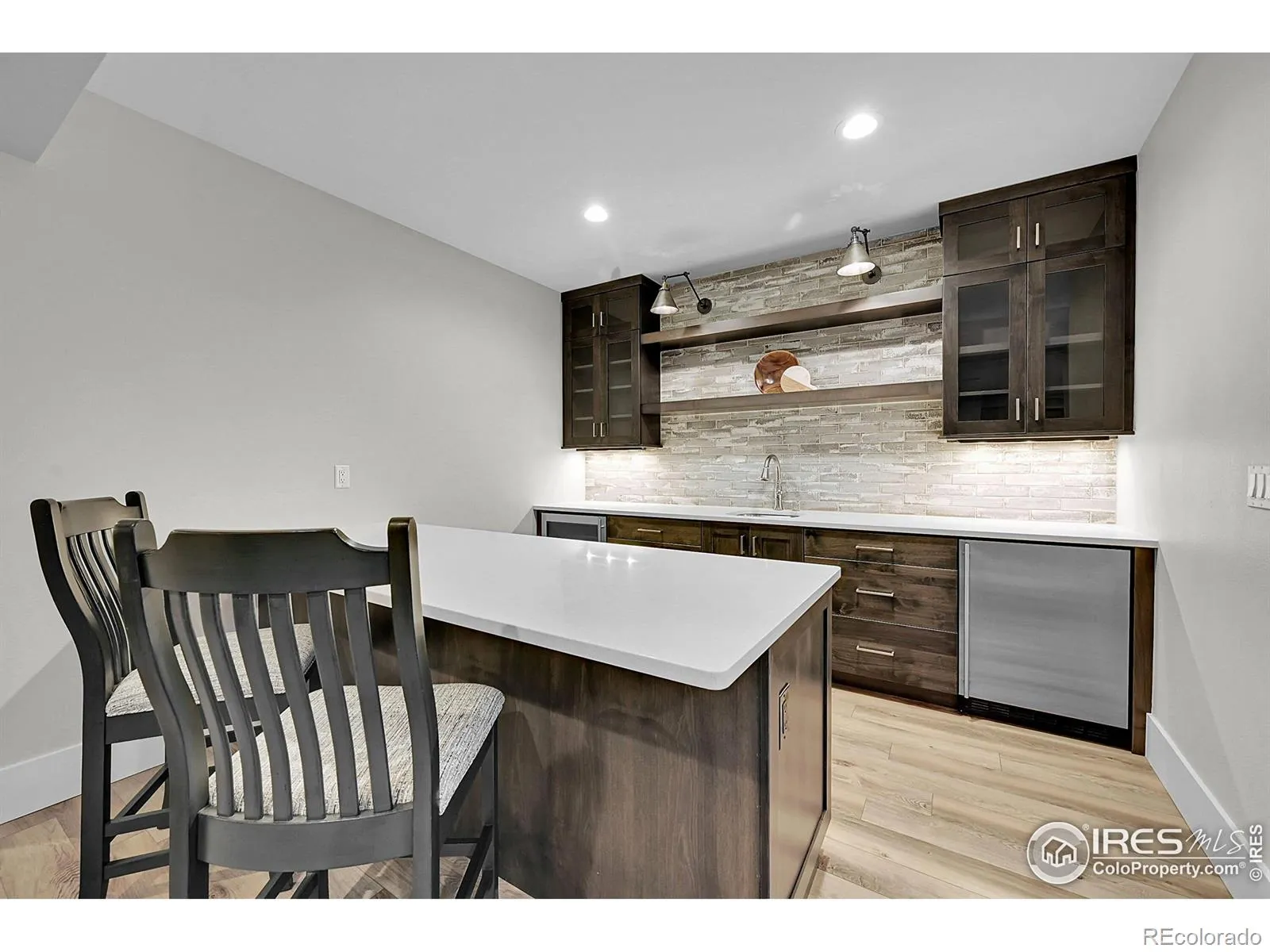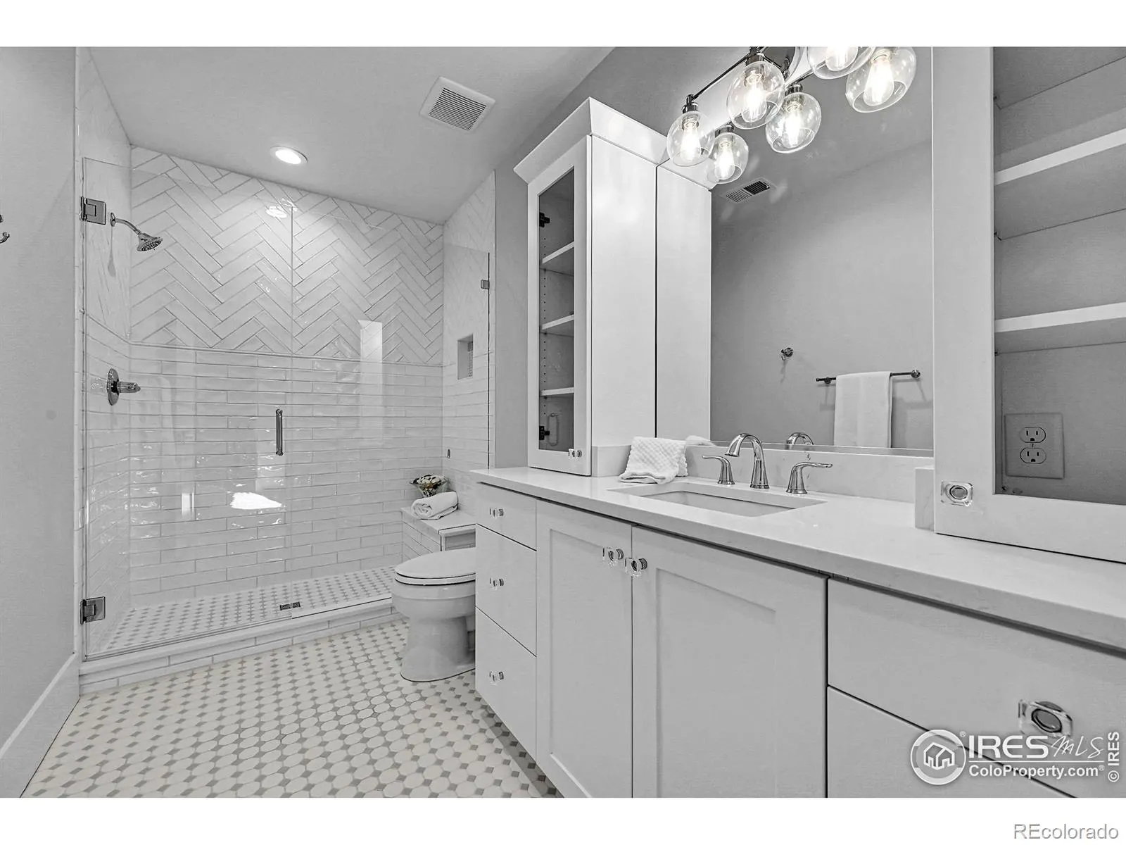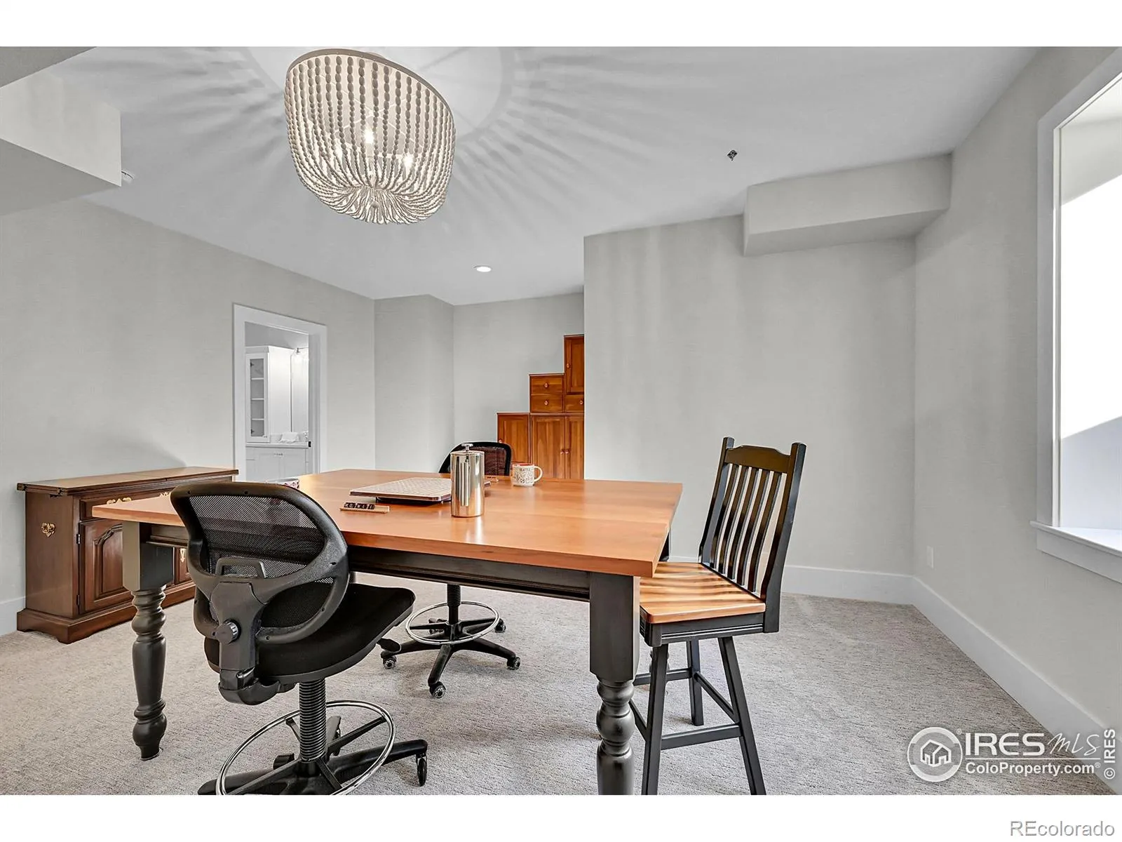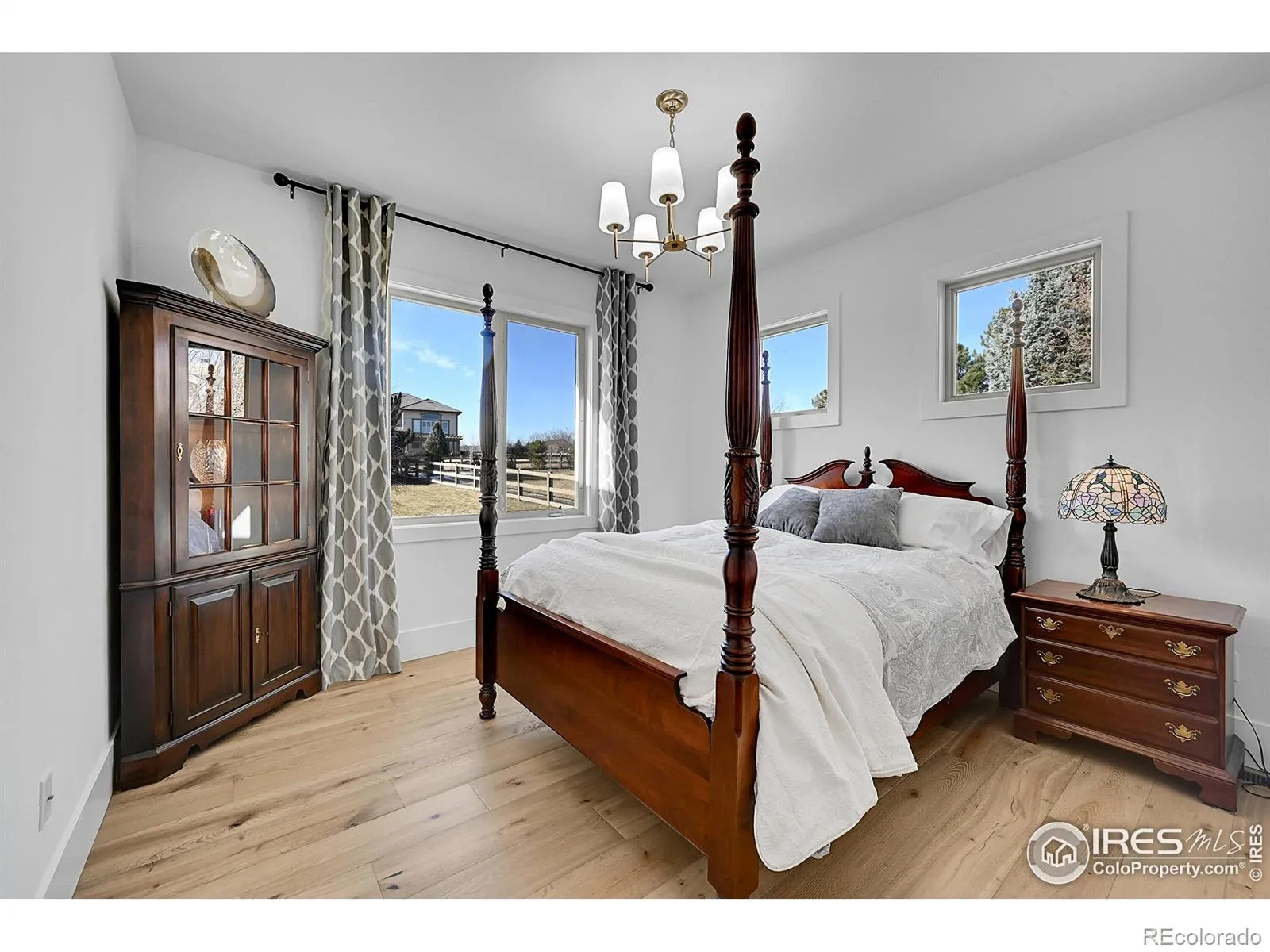Welcome to 6582 Rookery Rd, a 5-bedroom, 6-bath, 5,012 sq ft ranch-style home designed for exceptional single-level living in the prestigious Sanctuary at Fossil Lake Ranch. Set on a private, professionally landscaped 0.53-acre lot, this beautifully remodeled Lauren Ashley Homes residence is located in one of Fort Collins most sought-after neighborhoods. Enjoy an unbeatable location within walking distance to Zach Elementary, Preston and Kinard Middle Schools, and Fossil Ridge High School, with quick access to the Harmony Corridor, major employers, medical centers, and I-25. Blending modern farmhouse charm with elevated contemporary finishes, the home features flat white walls, elegant wood paneling, and wide-plank white oak engineered wood flooring. The open-concept gourmet kitchen showcases premium Dacor appliances, custom Milarc cabinetry, quartz countertops and backsplash, an oversized island, and a built-in bar refrigerator. A walk-in pantry with appliance garage and coffee bar adds everyday convenience. The light-filled living area is anchored by a floor-to-ceiling stone fireplace, floating shelves, custom built-ins, and expansive windows overlooking the serene backyard. The main level offers true single-floor living with a luxurious primary suite, second en-suite bedroom, powder room, dedicated office or optional bedroom, laundry suite, and a stunning mudroom. Outdoors, a covered patio with dining and lounge areas, string lighting, and a fire pit creates the perfect year-round entertaining space. The finished lower level provides additional flexibility with a family/media room, wet bar with dual beverage refrigerators, home gym, two en-suite bedrooms with walk-in closets, an additional powder room, and a second laundry area. Thoughtfully designed throughout, this home seamlessly blends luxury, comfort, and functionality just minutes from everything Fort Collins has to offer.