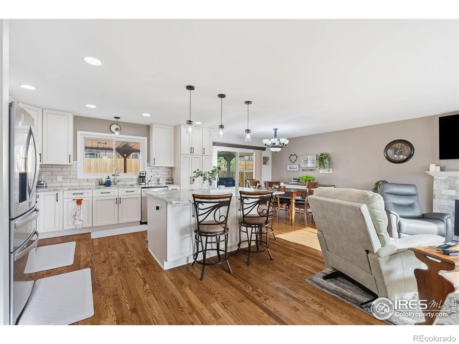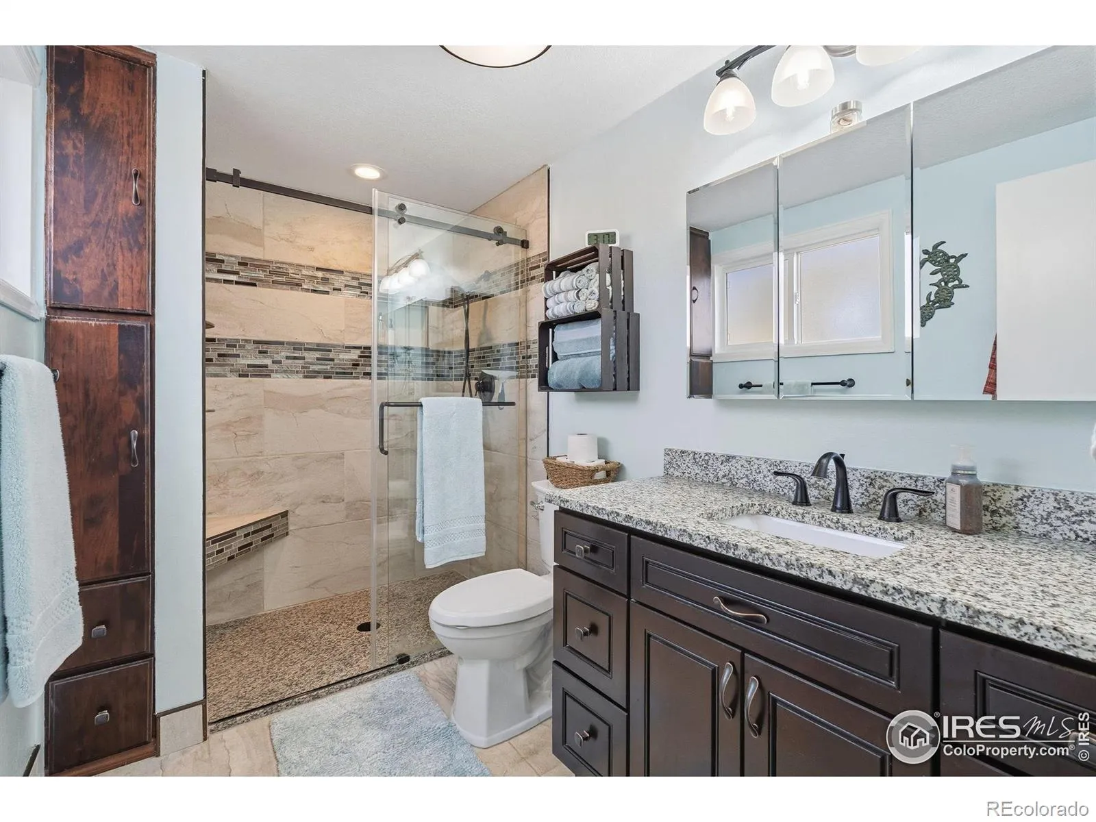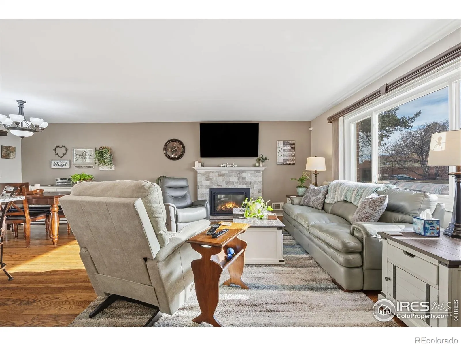 Welcome to this beautifully South Facing updated 3-bedroom, 3-bathroom home offering 1,868 square feet of thoughtfully designed living space. The open floor plan creates a bright, inviting atmosphere, highlighted by a gas fireplace on the main level. Upon entry, you’re welcomed by a remodeled kitchen with granite countertops, hardwood floors and modern finishes. Updated bathrooms throughout the home and brand-new LVP in the lower level which adds to the move-in-ready appeal. Enjoy low-maintenance living with faux grass in the front yard and a newly landscaped backyard, perfect for relaxing or entertaining. The spacious primary suite offers a private retreat with a walk-in bathroom shower and mountain views from the bedroom window. Additional mountain views can be enjoyed from the street. Solar panels help keep utility bills very low. Ideally located in Northglenn near Huron Road with quick access to I-25, this home offers both convenience and lifestyle. Nearby attractions include Croke Reservoir, the Highline Canal, Hugh G. Danahy Park, and Northwest Open Space, featuring basketball, tennis, and pickleball courts, playgrounds, picnic areas, open space, and a peaceful pond with a pier and benches. This is a wonderful opportunity to own a move-in-ready home in a desirable location.
