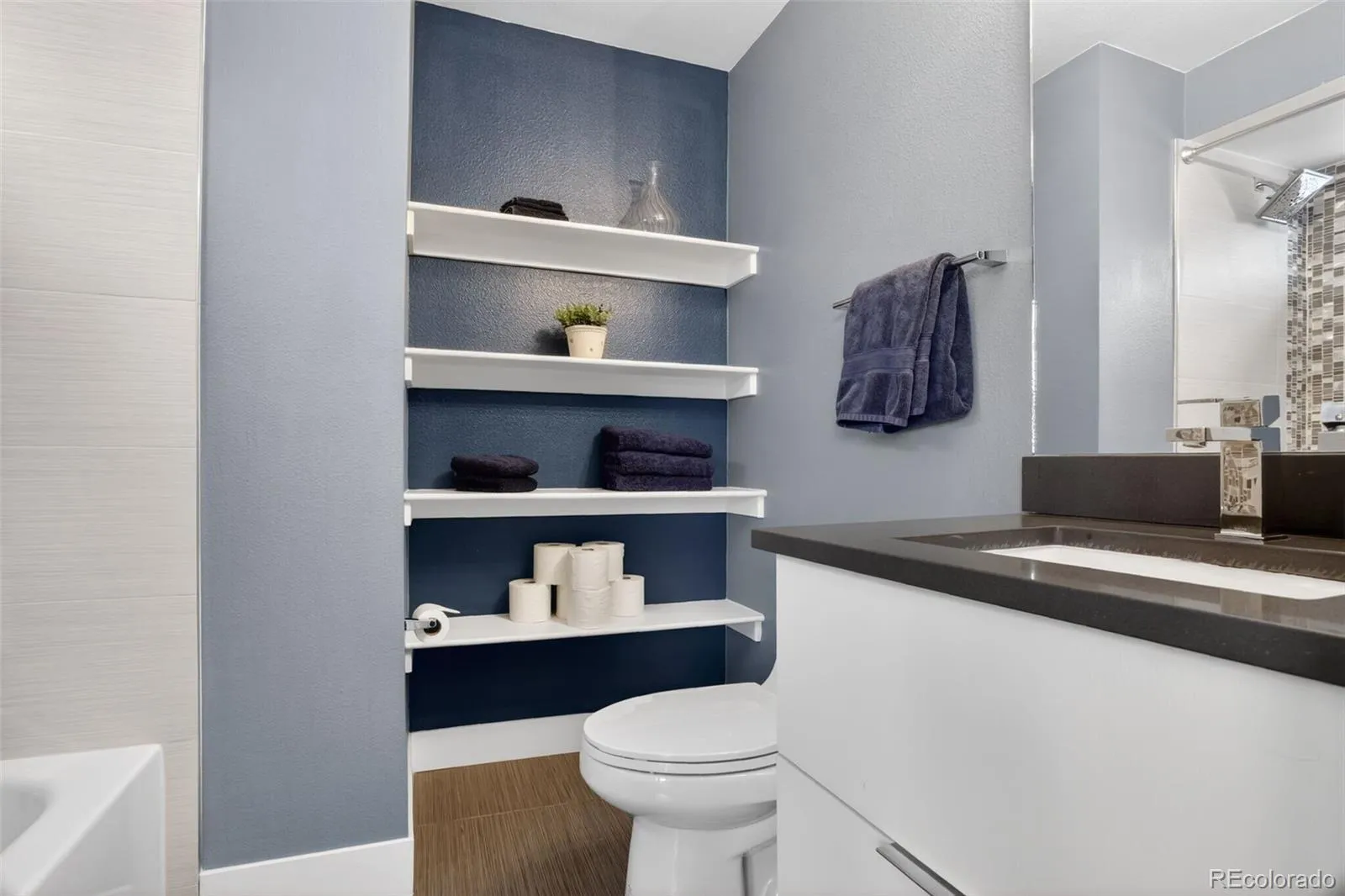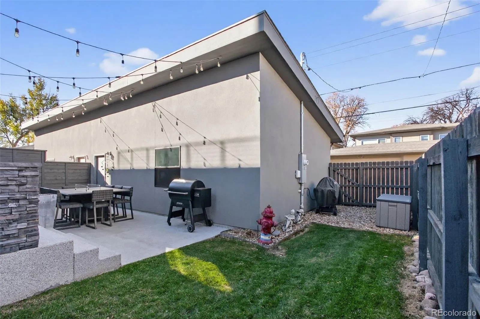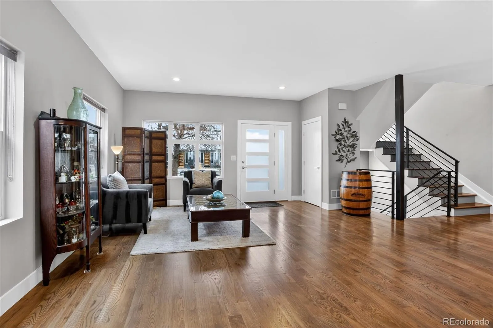 Stunningly beautiful three-story duplex with one of the largest floor plans in the area, including your very own three car garage and a fully finished basement! Richly stained hardwood floors flow seamlessly through the main level all accented by plenty of natural light streaming through various uniquely shaped windows. This open-floor concept features a contemporary kitchen with glossy flat front cabinetry, S/S appliances, a spacious quartz topped center island, complete with pendant lighting, a walk-in pantry, custom tiled backsplash and streamlined gas stove hood vent. The family room features a wall of decorative floating shelves across from a nicely textured wood encased gas fireplace and mantel area. Tucked in the corner is a powder room along with easy access to your rear patio with built-in gas BBQ. The second level features the rear primary bedroom, complete with a spa inspired five piece ensuite bathroom with a stand alone tub, spacious shower, large walk-in closet and a private rear deck. Both secondary bedrooms feature Juliet-styled balconies and their own private full bathrooms. The full-sized laundry room is also conveniently located on this level, complete with a wash sink and folding table with plenty of storage. The third level features another bedroom/office with its own balcony, a 3/4 bathroom and a large rec room with a built-in wetbar and access to your roof-top deck with spectacular mountain views. The finished basement with 9′ ceilings features another large room perfect for a gym, 2nd office, or Mancave along with a 5th bedroom and bath. Countless special features are found throughout the home and outdoor deck and patio areas, bringing outdoor fun in! Easy to maintain fully fenced yard off the 3-car garage (unheard of for a duplex) with a rear service door for added security. Located within easy walking distance to local coffee shops, parks and only minutes from Downtown Denver and light rail. No added cost of an HOA-Party Wall agreement.
