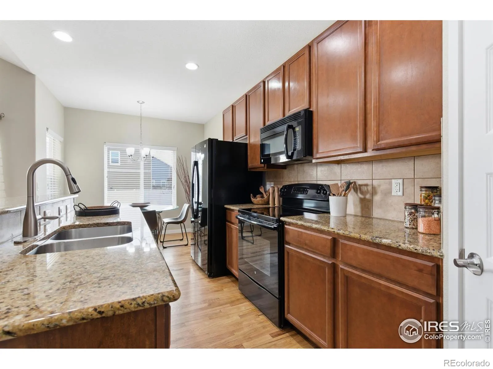 Welcome to 2884 Hydra Dr in Loveland, a well kept ranch home offering an open design and thoughtful upgrades throughout. From the moment you enter, the open floor plan draws you into the heart of the home, where the living room, dining area, and kitchen flow together seamlessly, finished in warm oak hardwood floors and highlighted by vaulted ceilings that fill the space with natural light. The kitchen is designed for both everyday living and entertaining, featuring hard stone countertops, tall cabinetry, and a walk in pantry. Just off the kitchen, the main floor laundry doubles as a convenient mud room with direct access from the garage. The main level offers a desirable layout with the primary suite separated for privacy. This spacious retreat features an oversized walk in closet and a true five piece bath with tile and hard stone, a glass shower surround, and a soaking tub. A second main level bedroom is generously sized and located near a full bathroom. Downstairs, the fully finished basement expands the living space with an oversized family room ideal for movie nights, game days, or gatherings, along with two additional bedrooms and a full bathroom. Dedicated storage areas add even more functionality. Outside, enjoy the Colorado lifestyle in the fully fenced backyard while relaxing on the patio and taking in clear views of Longs Peak and Mount Meeker. The home backs to a paved walking and biking path. Major upgrades provide peace of mind, including a new furnace and air conditioning installed in summer 2025, an owned water filtration system, updated sprinkler backflow preventer, and an active radon mitigation system. The home was professionally painted inside and out in 2024, and carpets and padding were replaced in December 2025 by JT’s Flooring. The fully finished three car garage offers ample space for trucks, gear, and storage. Ideally located near shopping, dining, and major medical facilities, with quick access to I 25 just five to six minutes away.