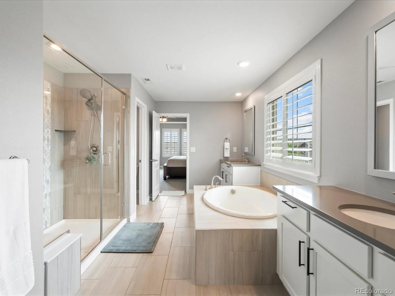 The primary suite is a serene retreat, offering a coffered ceiling and mountain views. The en-suite bathroom is equipped with dual vanities, a soaker tub, and a large walk-in shower. Additional bedrooms include guest suites and Jack & Jill rooms with adjoining baths. The finished basement extends the living space with a family/media room, a wet bar, and a sixth bedroom with a steam shower.