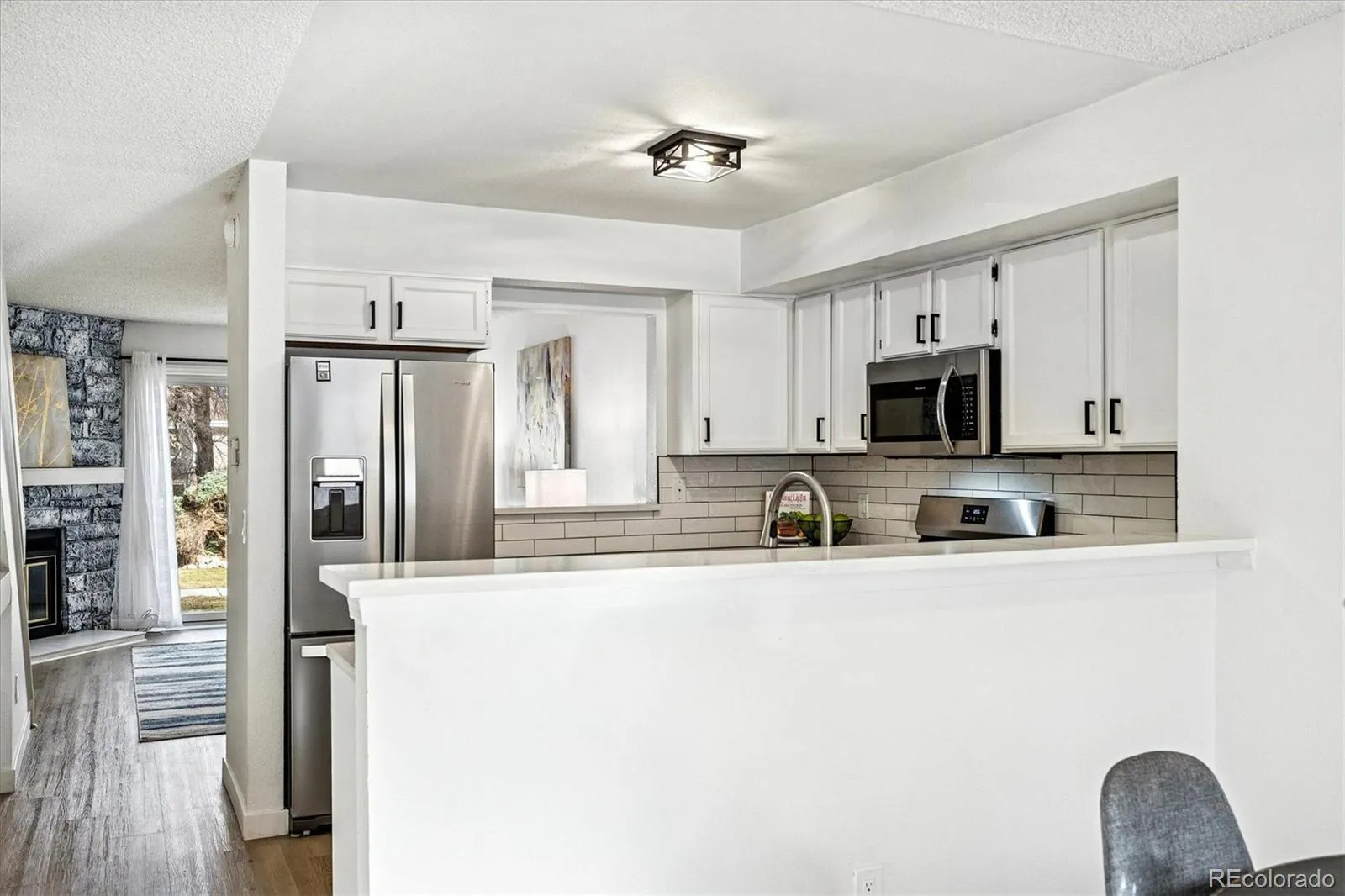 Step into this expansive and rarely available end unit, where thoughtful updates and generous living spaces create an inviting place to call home. The entry opens to a sun-filled dining area that flows seamlessly into the renovated kitchen, setting the stage for both everyday living and entertaining. Continue into the welcoming family room, where a cozy fireplace and distinctive stone accent wall add warmth and character. Upstairs, the oversized primary suite impresses with vaulted ceilings, dual closets, and a refreshed en-suite full bath; down the hall, the 2nd upgraded full bath leads the way to the 2nd bedroom offering space and sunshine! The finished basement expands the home’s versatility with The finished basement expands the home’s versatility with two separate rooms—ideal for a playroom, home office, gym, or guest space. With an existing egress window already in place, the space also offers the opportunity to easily add bedroom #3! For added convenience, there is a dedicated laundry room too! Extensive upgrades include fresh paint, new lighting, top down/bottom up window coverings, main-level flooring, quartz countertops, kitchen appliances, and HVAC, all in 2024… followed by new faucets, upstairs carpet, soft-close cabinet hinges, basement flooring, an extended hot water heater warranty, and all-new windows and sliding glass door in 2025. Evenings here are peaceful, with views of mature trees and occasional wildlife, creating a tranquil backdrop through every season. Located near the historic Stone House and Bear Creek Trail, the well-maintained Silver Valley community offers snow removal, social events, a rentable clubhouse, and two central pools, with easy highway access and the dining and shopping options of Belmar just minutes away.