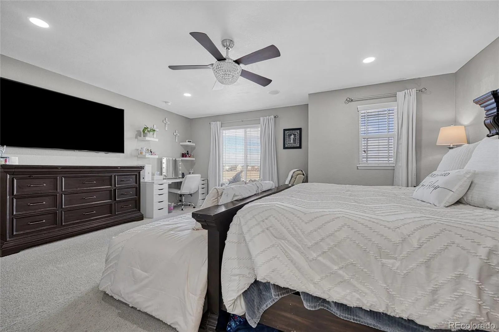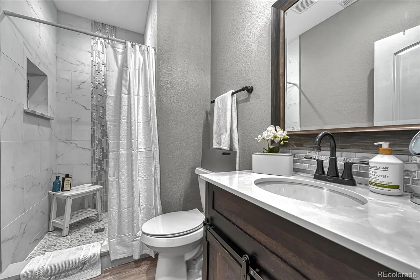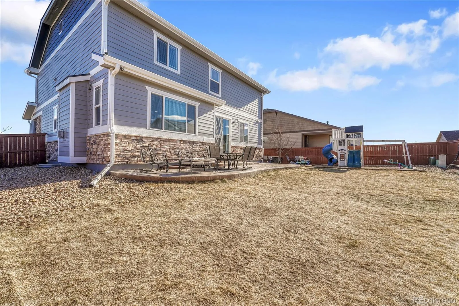 An exceptional home that truly stands out. This stunning two-story residence offers 5 bedrooms and 3.5 bathrooms with a beautiful and functional layout. A grand entryway with stunning stair-rails welcomes you. An office just off the entrance that is perfect for working from home. The main level features a spacious living room and a beautiful kitchen desisgned for everyday living and entertaining. The finished basement includes a living room area, wet bar, bedroom, bathroom and two storage rooms, offering incredible versatility. Enjoy a very large backyard ideal for gatherings and play. Recent upgrades include a new roof and exterior paint (2025) and a remodeled primary bathroom. Seller is a licensed real estate agent in the State of Colorado.