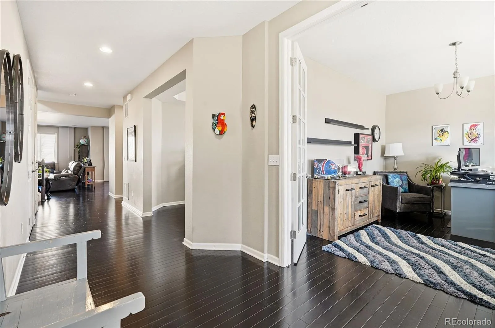 Welcome home to this beautifully maintained two-story residence in the desirable Fallbrook Farms community of Thornton. Built in 2012 and ideally situated on a premium corner lot adjacent to a neighborhood park, this home offers the perfect blend of comfort, convenience, and lifestyle. With four bedrooms, three bathrooms, and an unfinished basement ready for future expansion, the layout is both functional and flexible. Freshly updated with a newly painted exterior, a brand-new roof, new carpet, and updated LVP flooring in the bedrooms, the home feels move-in ready from top to bottom. The main level features rich wood floors, a dedicated home office, and a spacious gourmet kitchen. Highlights include stainless steel appliances, granite countertops, a butler’s pantry, and a wet bar that opens seamlessly to the living and dining areas and walks out to your fenced in backyard. Outdoor enthusiasts will love the immediate access to open green space, a playground, and walking and biking trails that connect to a larger regional trail system. The three-car tandem garage is thoughtfully finished with epoxy flooring, Gladiator storage, and built-in cubbies—for excellent organization. Owned solar power with a transferable warranty adds energy efficiency and long-term savings. Located in the highly regarded Adams 12 Five Star School District, this home is also minutes from golf courses, shopping, and dining at Orchard Town Center, with easy access to I-25 and E-470. Just 15 miles to downtown Denver and approximately 25 miles to DIA, this home truly offers the best of suburban living with city convenience. Don’t miss this wonderful opportunity to settle into a vibrant community and make lasting memories.
