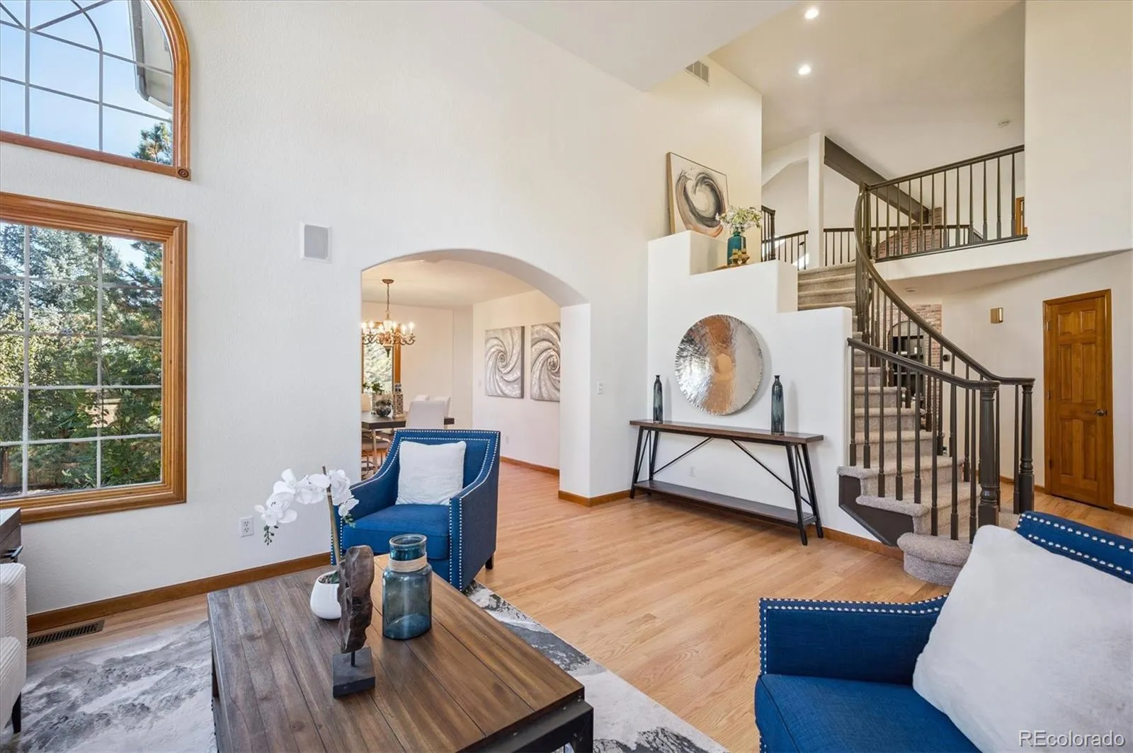Welcome to this stunning Richmond-built home in The Overlook, located within the highly regarded Littleton Public Schools district. Featuring 4 bedrooms, 5 bathrooms, and 4,253 finished square feet, this home offers generous space, modern updates, and timeless design. The freshly painted exterior, new roof, and new garage doors create exceptional curb appeal, inviting you into a bright and welcoming interior with new paint throughout. The two-story foyer makes a grand first impression, highlighted by an elegant curved staircase. To one side, the vaulted living room with large windows provides a peaceful retreat that flows seamlessly into the formal dining room, ideal for entertaining. At the heart of the home, the updated eat-in kitchen shines with refinished cabinetry, new countertops, a large pantry, and a bright breakfast nook that opens to the spacious back deck—perfect for morning coffee or evening gatherings. A main-floor office with built-in shelving and a powder room completes this level, offering a functional and stylish work-from-home space. Upstairs, the primary suite is a relaxing retreat featuring a five-piece bath and a spacious walk-in closet. Two bedrooms share a Jack-and-Jill bath, while a fourth bedroom enjoys its own en-suite bathroom, providing comfort and privacy for everyone. The finished basement has been refreshed with new paint, new carpet, and a contemporary bathroom, creating the perfect space for a TV room, gym, or recreation area. The oversized 3-car garage provides ample storage and connects to a laundry/mudroom with a sink and built-in cabinetry for everyday convenience. Situated on a large corner lot, the private backyard offers an inviting oasis for play, relaxation, and outdoor entertaining. The location can’t be beat—close to Aspen Grove, miles of trails, and all that makes Littleton such a vibrant community with top-rated schools, parks, shopping, and dining. Don’t miss your chance to make this exceptional home yours!