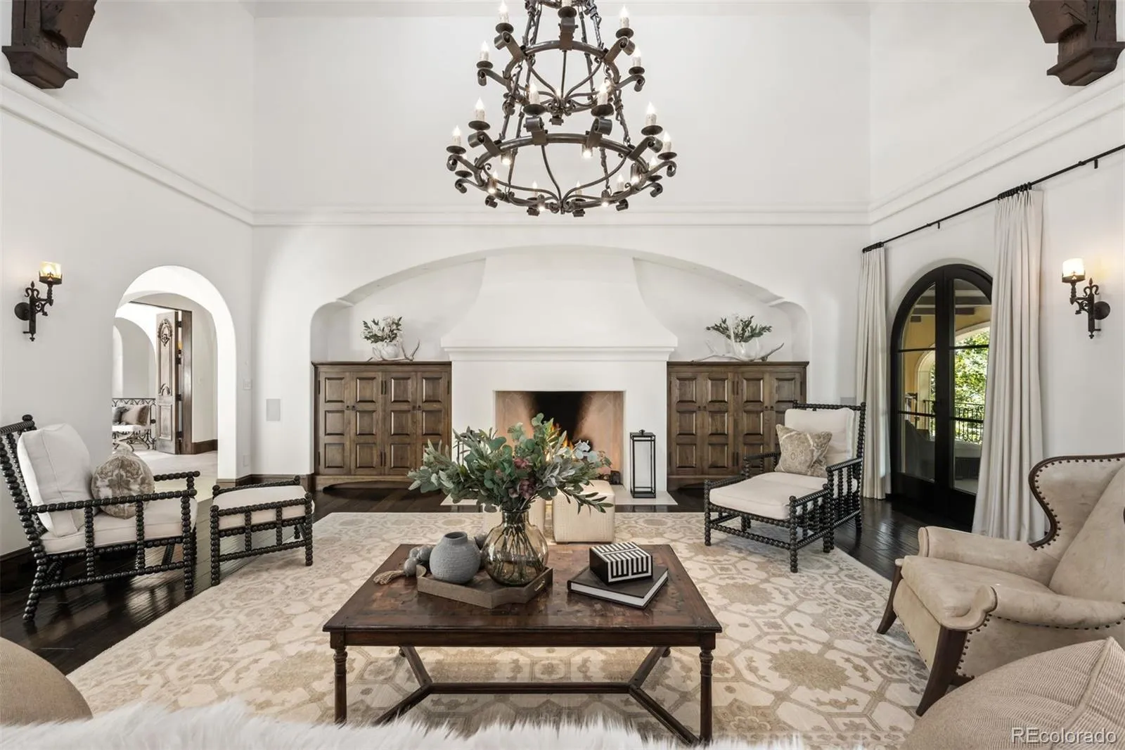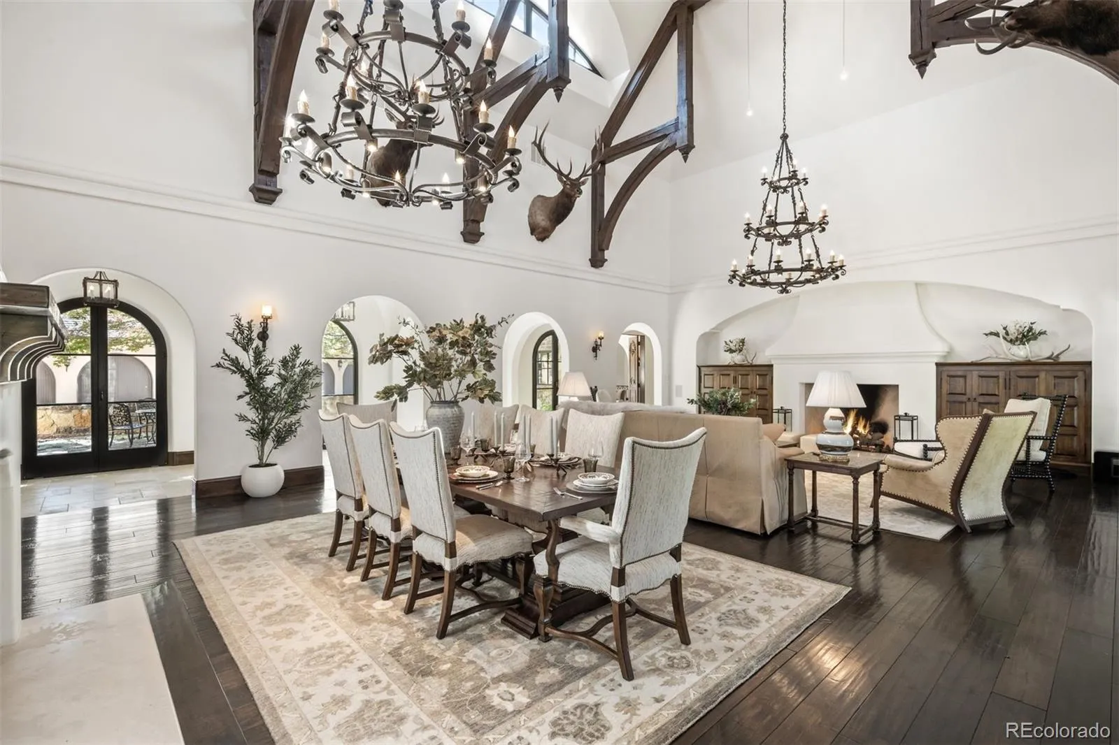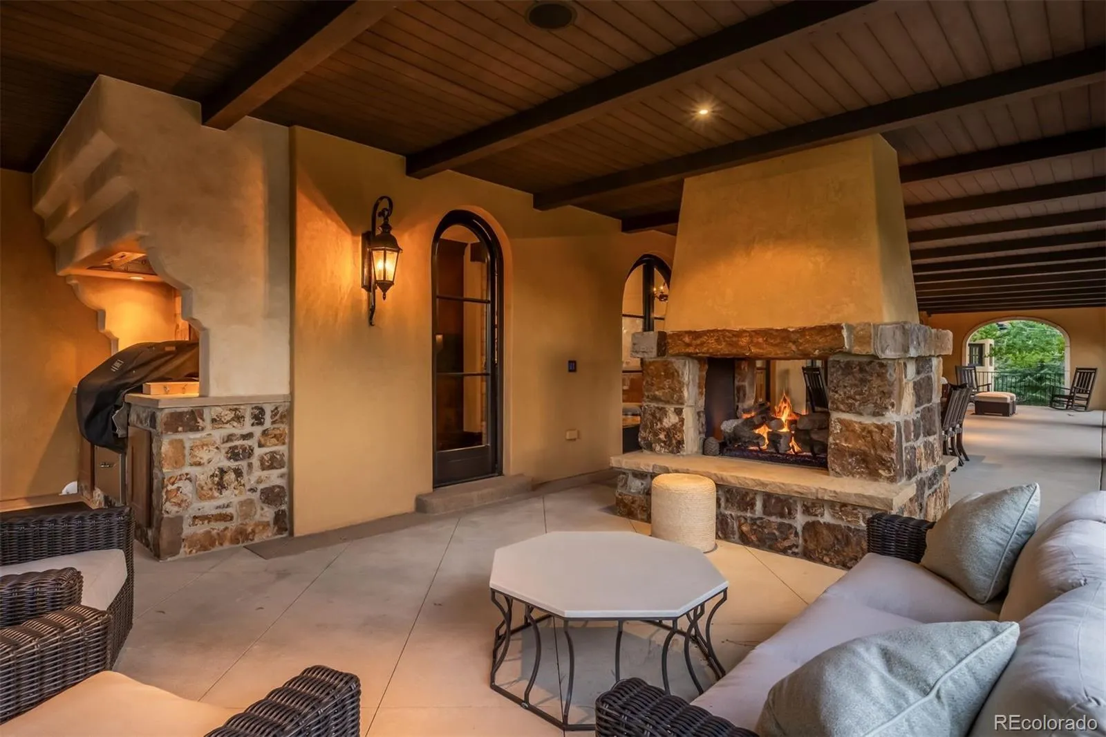 Perched along the 8th green of the exclusive Castle Pines Golf Course, One Elk Pointe embodies timeless sophistication andEuropean-inspired living. A graceful stone bridge and porte-cochère lead you to this elegant estate, where every detail hasbeen curated for those who appreciate craftsmanship, comfort, and quiet grandeur. Inside, sunlight spills across soaringceilings, exposed beams, and hand-laid tile floors. Walls of glass frame sweeping golf course and mountain vistas, creating a seamless connection between indoor elegance and outdoor serenity. At the heart of the home, an exceptional chef’s kitchen delights with dual islands, a farmhouse sink, and top-tier appliances from Sub-Zero, Wolf, La Cornue, and Thermador. A hidden refrigerator, butler’s pantry, and wine area enhance the home’s effortless luxury, while a cozy hearthdining room invites intimate gatherings beneath cathedral ceilings. The formal living and dining rooms span 36 feet, anchored by twin limestone fireplaces and opening to an expansive upper deck where a stone fireplace and treetop views offer an enchanting backdrop for evening soirées. The main-floor primary suite defines refined tranquility—featuring a limestone fireplace, spa-inspired bath, dual vanities, soaking tub, and two custom closets. Two exquisite offices and a marble-topped mudroom blend practicality with polish. The lower level is designed for leisure and connection, offering a full bar, spacious entertaining area, gym with steam shower, and three en-suite bedrooms. Outdoors, multiple terraces invite alfresco living—a see-through fireplace, built-in grill, fire pit, and sunken hot tub all set against the dramatic beautyof Castle Pines. A rare harmony of European elegance and Colorado majesty, One Elk Pointe is more than a residence—it’sa lifestyle without compromise.