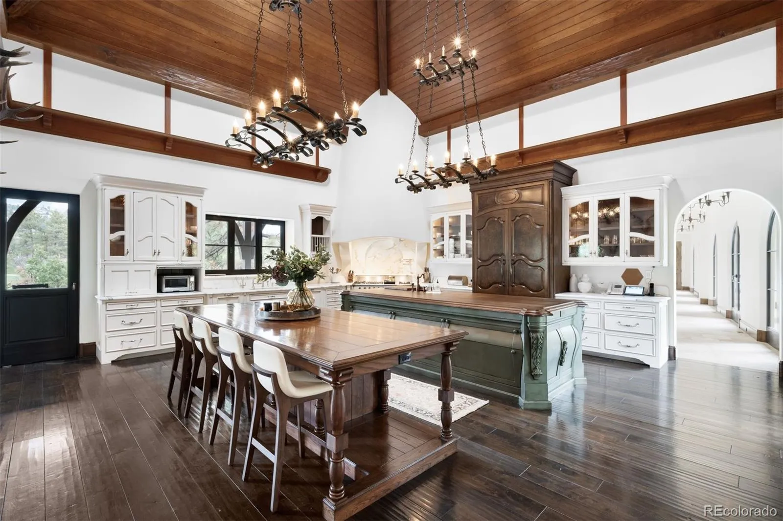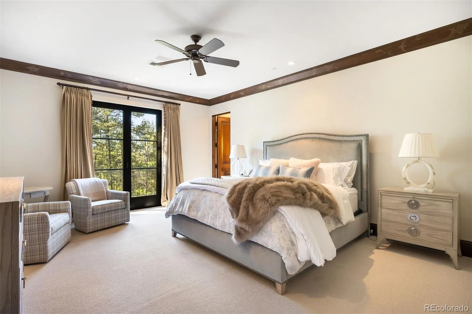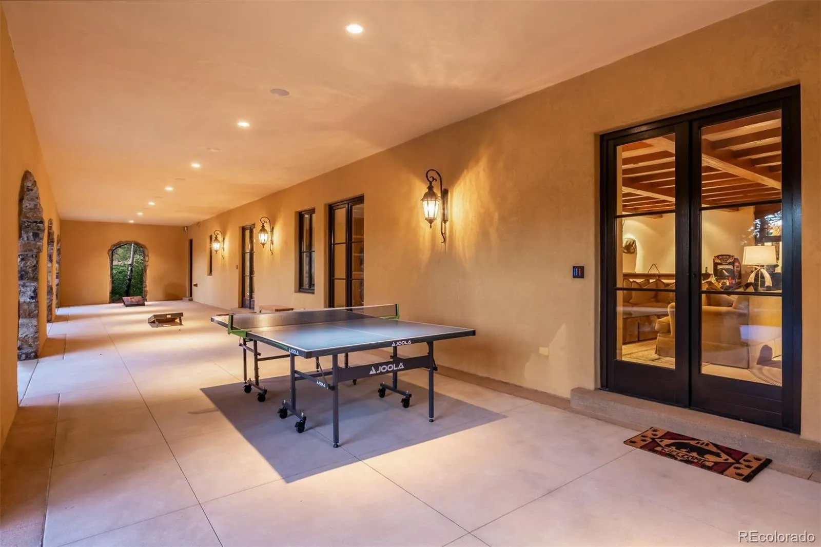 Perched along the 8th green of the exclusive Castle Pines Golf Course, One Elk Pointe embodies timeless sophistication andEuropean-inspired living. A graceful stone bridge and porte-cochère lead you to this elegant estate, where every detail hasbeen curated for those who appreciate craftsmanship, comfort, and quiet grandeur. Inside, sunlight spills across soaringceilings, exposed beams, and hand-laid tile floors. Walls of glass frame sweeping golf course and mountain vistas, creating a seamless connection between indoor elegance and outdoor serenity. At the heart of the home, an exceptional chef’s kitchen delights with dual islands, a farmhouse sink, and top-tier appliances from Sub-Zero, Wolf, La Cornue, and Thermador. A hidden refrigerator, butler’s pantry, and wine area enhance the home’s effortless luxury, while a cozy hearthdining room invites intimate gatherings beneath cathedral ceilings. The formal living and dining rooms span 36 feet, anchored by twin limestone fireplaces and opening to an expansive upper deck where a stone fireplace and treetop views offer an enchanting backdrop for evening soirées. The main-floor primary suite defines refined tranquility—featuring a limestone fireplace, spa-inspired bath, dual vanities, soaking tub, and two custom closets. Two exquisite offices and a marble-topped mudroom blend practicality with polish. The lower level is designed for leisure and connection, offering a full bar, spacious entertaining area, gym with steam shower, and three en-suite bedrooms. Outdoors, multiple terraces invite alfresco living—a see-through fireplace, built-in grill, fire pit, and sunken hot tub all set against the dramatic beautyof Castle Pines. A rare harmony of European elegance and Colorado majesty, One Elk Pointe is more than a residence—it’sa lifestyle without compromise.