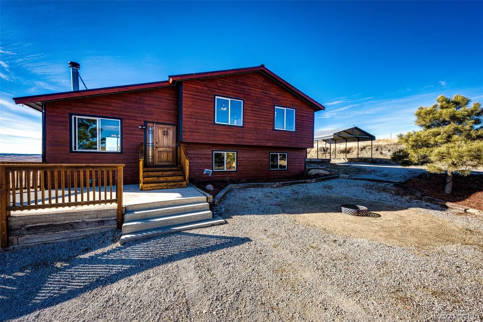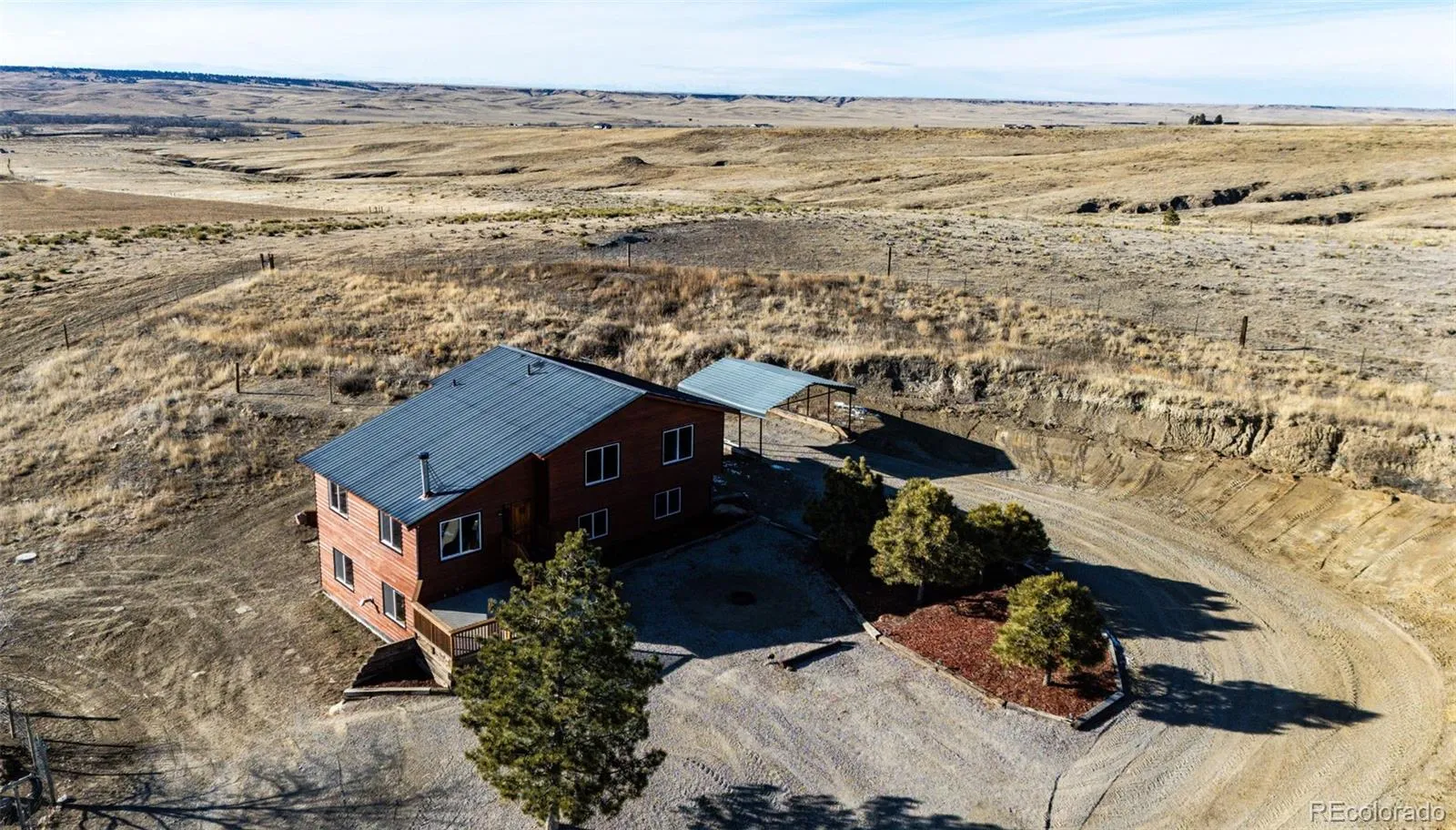 Alfalfa and grass is growing in the fields! Wake up watching your livestock grazing in your fields from your expansive windows while you sip your coffee. Peace, freedom, & abundant living are waiting for you. Welcome to an extraordinary opportunity to own a 35-acre Colorado home on rolling prairie with million-dollar views of Pikes Peak and the Front Range Mountains. Perfectly positioned for privacy, space, and freedom, this beautifully remodeled property blends refined comfort with authentic rural living. 2,400 sq ft of thoughtfully designed, light-filled spaces with an open-concept floor plan connecting living, dining, and kitchen areas featuring a live-edge bar—ideal for daily life and entertaining. Reclaimed barn wood accent walls, river rock kitchen backsplash, butcher block countertops, and petrified wood (collected from property)
