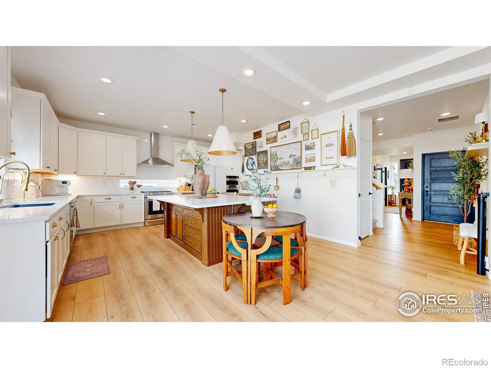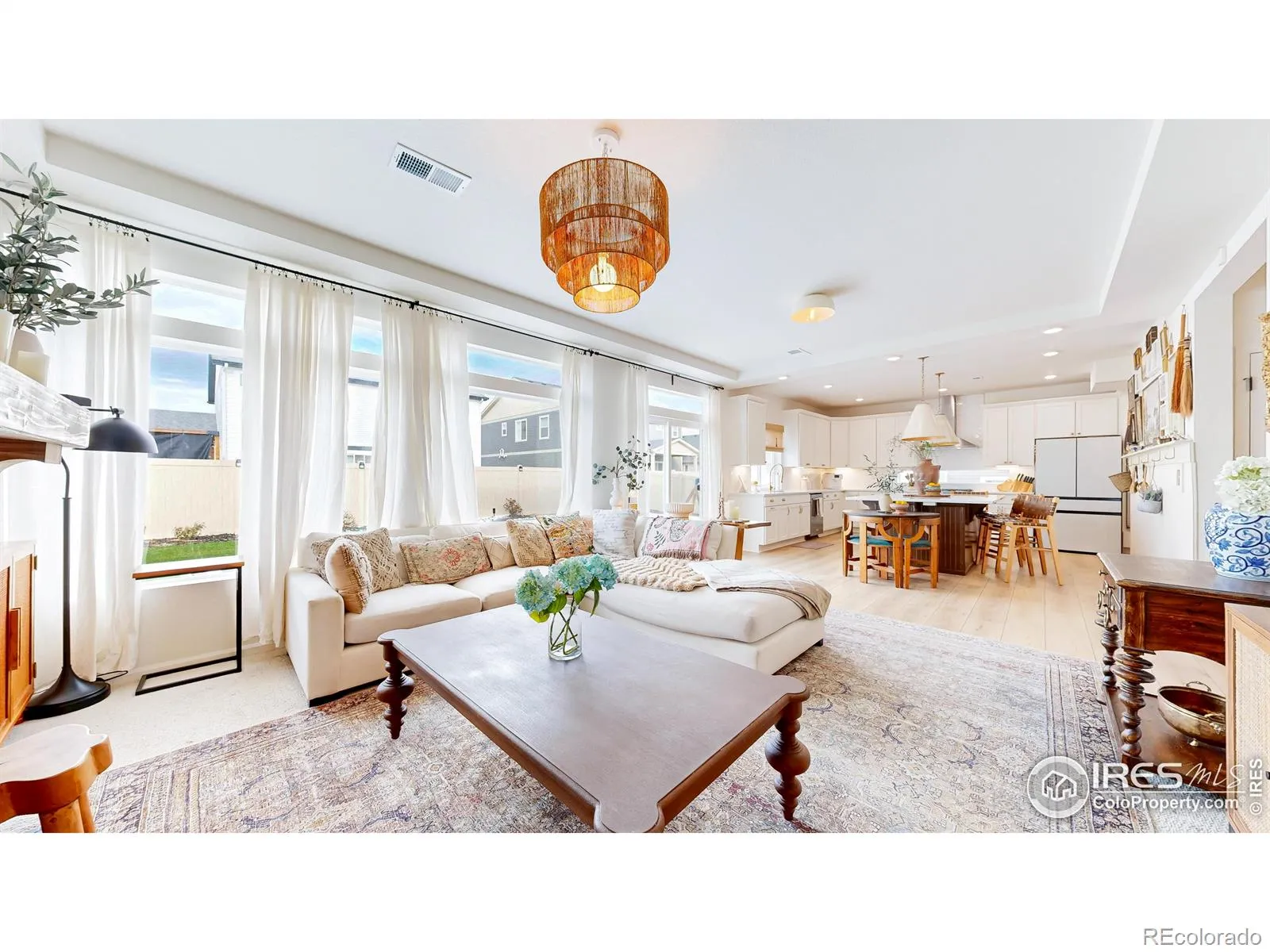 Welcome home to this beautifully designed two-story home in the sought-after Thompson River Ranch neighborhood! Offering 4 bedrooms, including a spacious primary suite retreat and 2.5 bathrooms, this home showcases elevated finishes and a thoughtfully designed layout! Just off the foyer, a private office provides a great space for work or study, while the beautiful formal dining room sets the tone for elegant entertaining. The heart of the home is the stunning kitchen, featuring quartz countertops, a massive center island, custom tile backsplash, stainless steel appliances, an upgraded luxury refrigerator, and custom designer lighting. LVP flooring, recessed ceiling details, expansive windows, and warm, inviting paint tones enhance the home’s modern yet welcoming aesthetic. The seamless connection between living, dining, and kitchen spaces creates a layout that feels both open and intentional. Additional highlights include a 3-car tandem garage, crawl space for extra storage, tankless water heater, and included window coverings and kitchen appliances. Step outside to a fully landscaped yard with sprinklers, a large back patio ideal for entertaining, maintenance-free turf and raised garden beds – an outdoor space designed for both relaxation and enjoyment! A truly move-in-ready home you don’t want to miss!