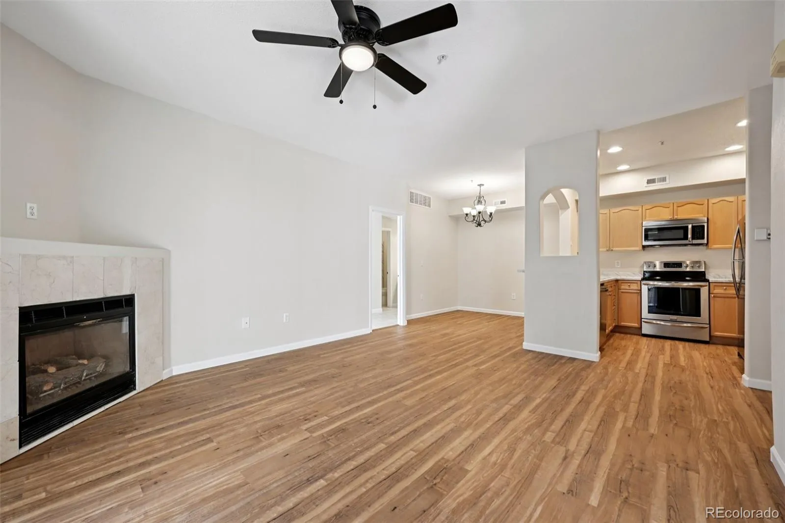 Updated 2-bedroom, 2-bath main-level condo in the Cay at Marina Pointe community. Recent improvements include new interior paint, flooring, countertops, new tile work and countertops in bathrooms and new toilets. The functional layout offers 1,060 sq ft of comfortable living with a fireplace, central A/C, and forced-air heat. Primary bedroom features an en-suite bath and ample closet space. Covered patio and convenient access to shopping, dining, trails, and C-470. Located in Jefferson County School District. Move-in ready and well-situated in a desirable Littleton location. Some photos have been digitally staged.