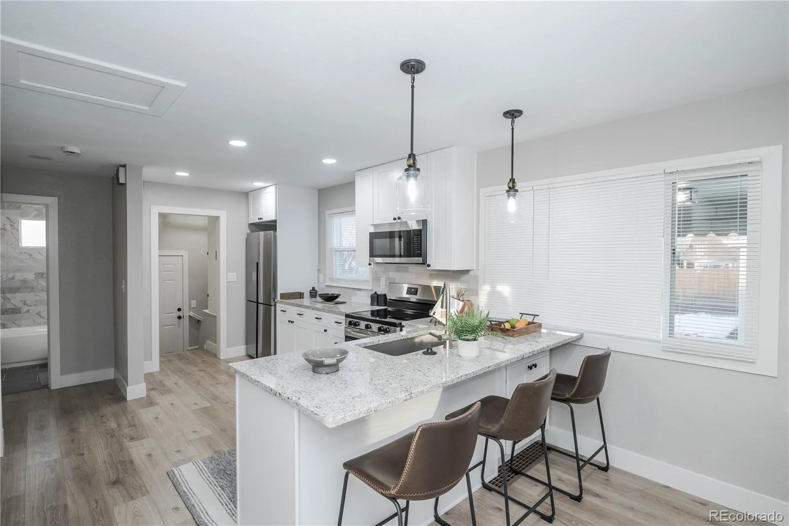 The kitchen is having its main-character moment with brand-new cabinets, countertops, backsplash, and appliances—whether you’re hosting, cooking, or just reheating takeout in style. Both bathrooms have been completely remodeled, delivering a fresh, modern vibe from top to bottom.