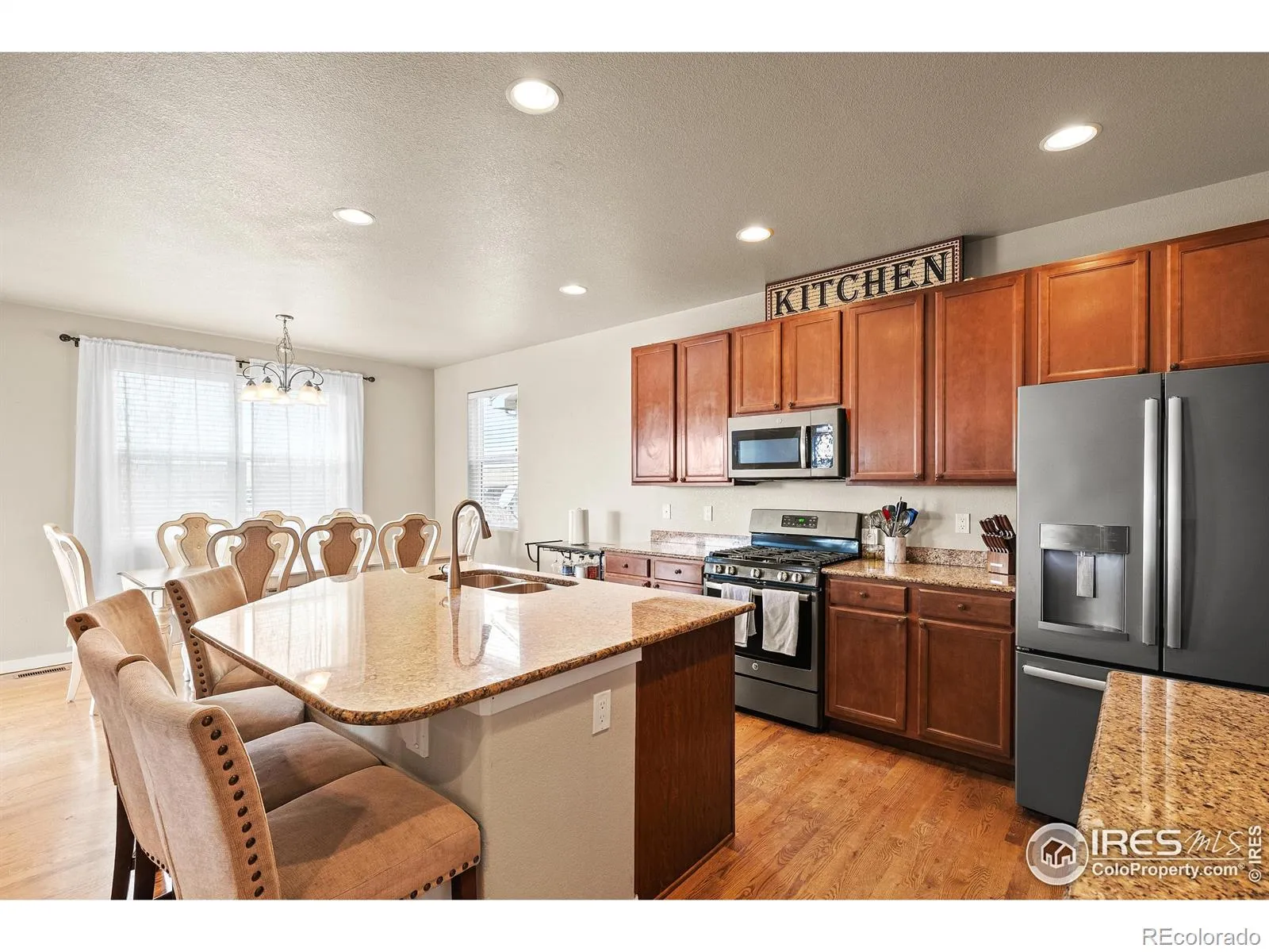Welcome to this spacious 4 bedroom, 3 bathroom home offering 3,308 sqft of comfortable living in Severance with stunning mountain views & no neighbors behind for added privacy. Enjoy 9 foot ceilings, an open floorplan, & tons of warm natural light throughout. The kitchen features a gas range, large island with bar top seating perfect for hosting, pantry for extra storage, & flows seamlessly into the main living area. The primary suite also offers beautiful mountain views, a large soaking tub, & a tall separate shower. Upstairs you will find a conveniently located laundry room near the bedrooms & a cozy loft space ideal for relaxing or entertaining. The unfinished basement provides endless opportunity to customize & expand. Step outside to a large backyard with a small garden bed, covered back porch, stone patio, & fire pit for outdoor gatherings. Located right next to walking paths, near neighborhood parks, Severance Middle School, shopping, dining, downtown Windsor, Windsor Lake, & fun local activities like Hoe Down Hill, with easy access to Fort Collins in approximately 15 minutes. NO HOA. This home offers space, views, location, & potential all in one.