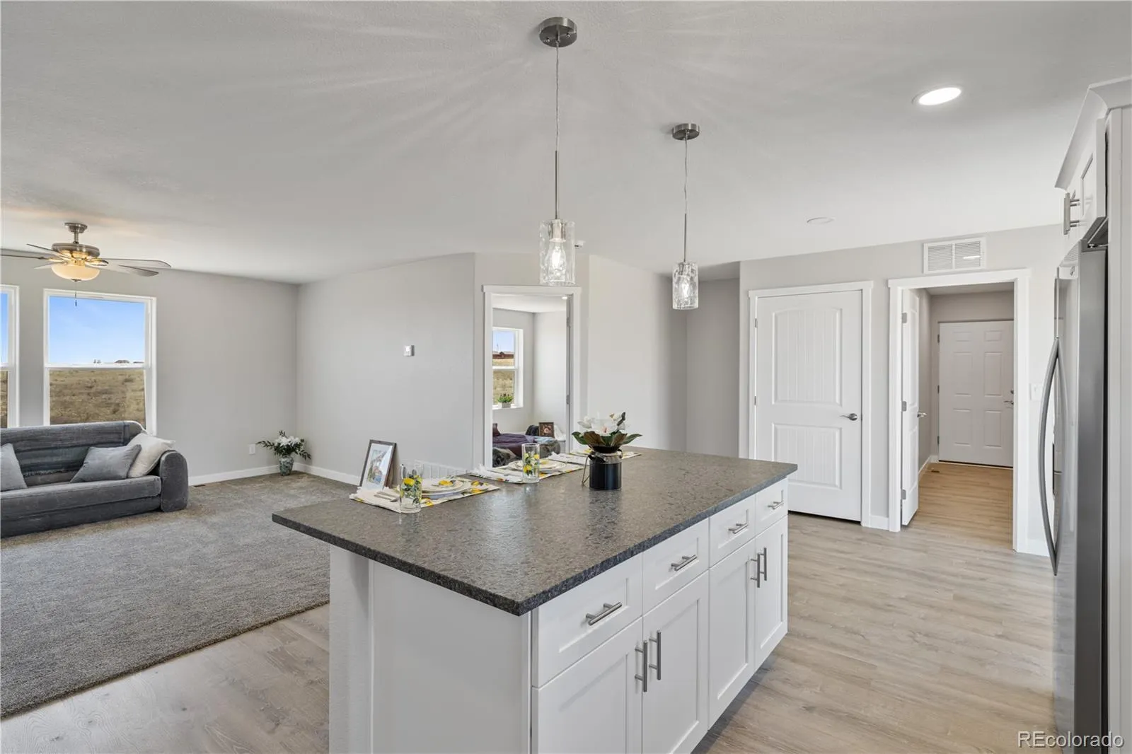 Welcome to this beautifully constructed, brand-new 3-bedroom, 2-bathroom home situated on 3.5 acres in peaceful Fountain, Colorado. Designed with comfort and style in mind, this move-in-ready home offers an open floor plan with upgraded carpet and luxury vinyl tile flooring, modern light fixtures, bull-nose corners, rocker switches, and central air conditioning.
