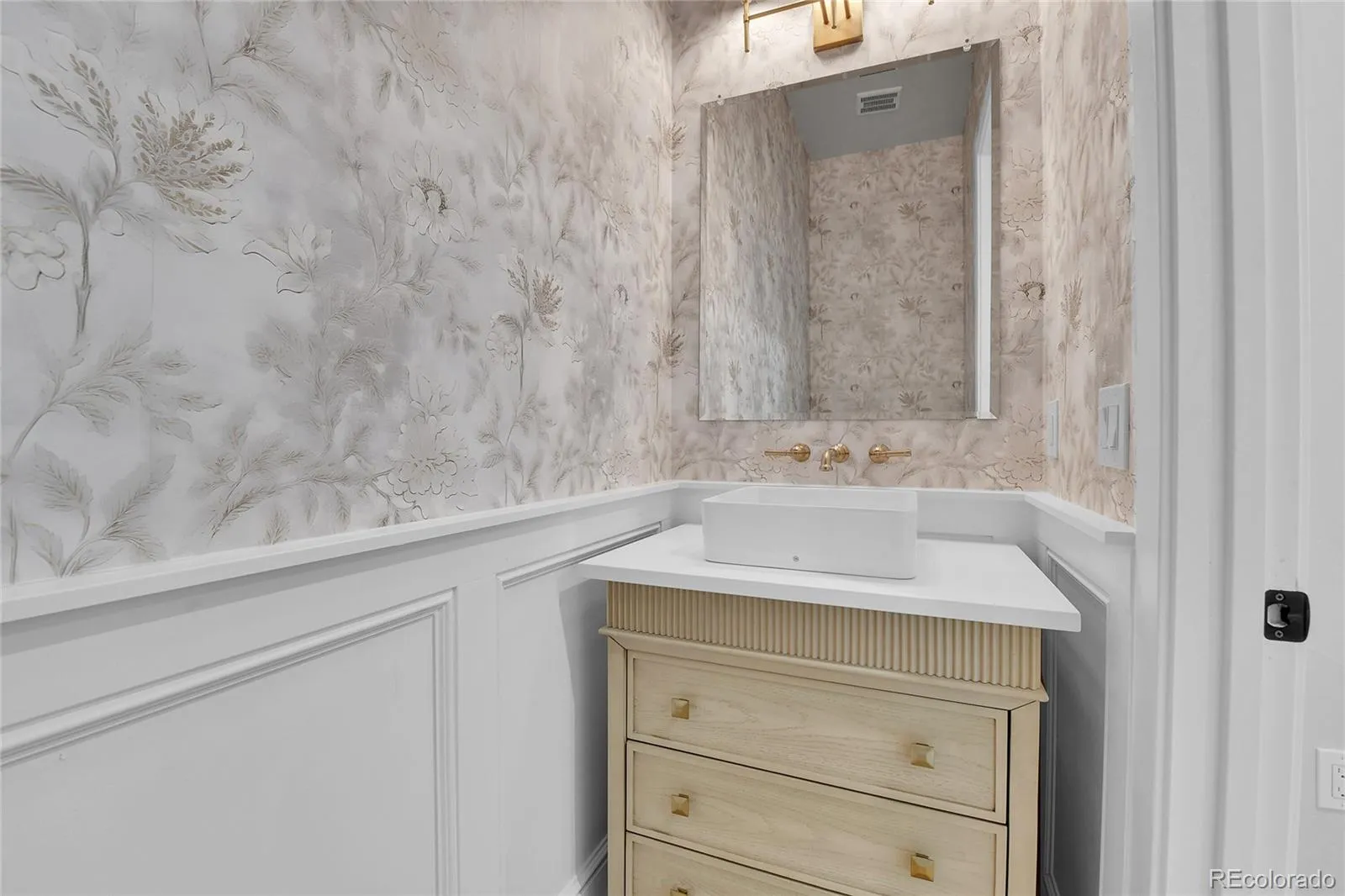 – Stunning stacked two-tone cabinetry and quartz countertops