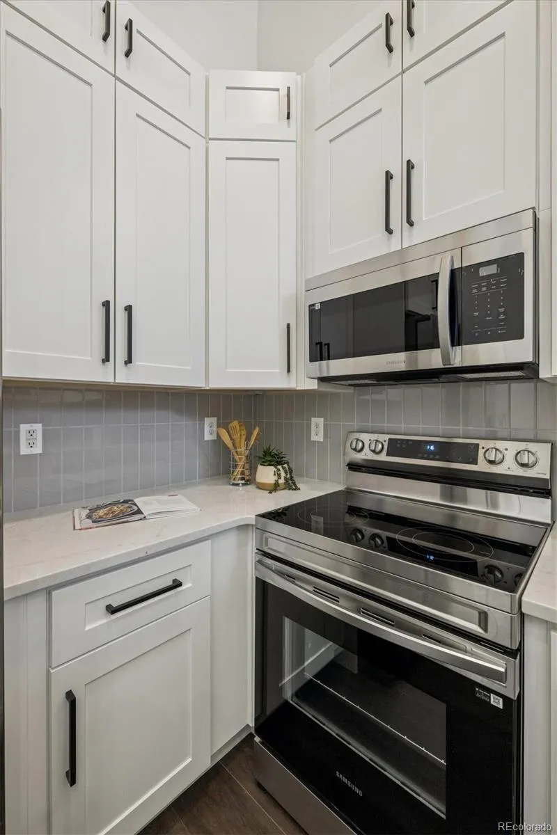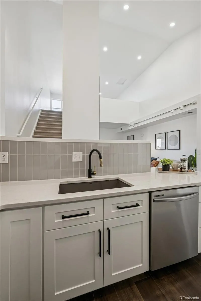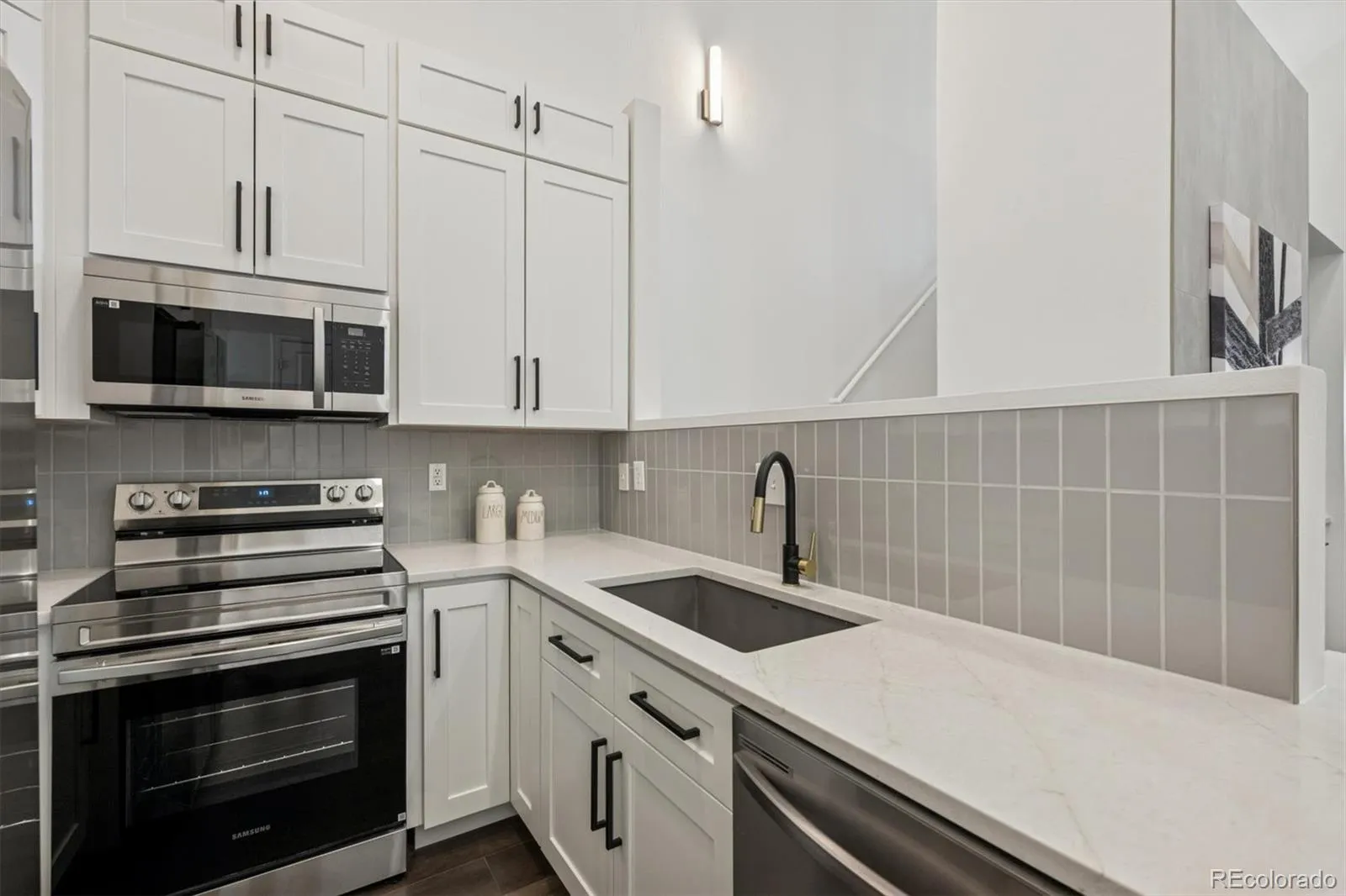 Step into this beautifully updated, open and airy condo showcasing modern flair throughout. High ceilings and abundant natural light welcome you into the bright living room, featuring soaring ceilings, custom built-in cabinetry for storage, and a cozy gas fireplace with elegant tile surround. The fully remodeled kitchen is a standout with sleek quartz countertops, fresh cabinetry, and a stylish backsplash—perfect for both everyday living and entertaining. A convenient laundry closet includes a washer and dryer for added ease. The spacious bedroom offers a peaceful retreat with vaulted ceilings and a bright, airy feel. The fully updated bathroom features gorgeous shower tile, chic finishes, and all-new modern upgrades. Upstairs, a versatile loft with brand-new carpet provides flexible space ideal for a home office, lounge, or guest area. Additional updates include new flooring throughout, a new water heater, and a convenient 1-car attached garage. Ideally located within walking distance to the W Toll Gate Creek Trail and just minutes from grocery stores, dining, and entertainment. This move-in-ready home is a must-see—schedule your showing quickly, as it won’t last long.