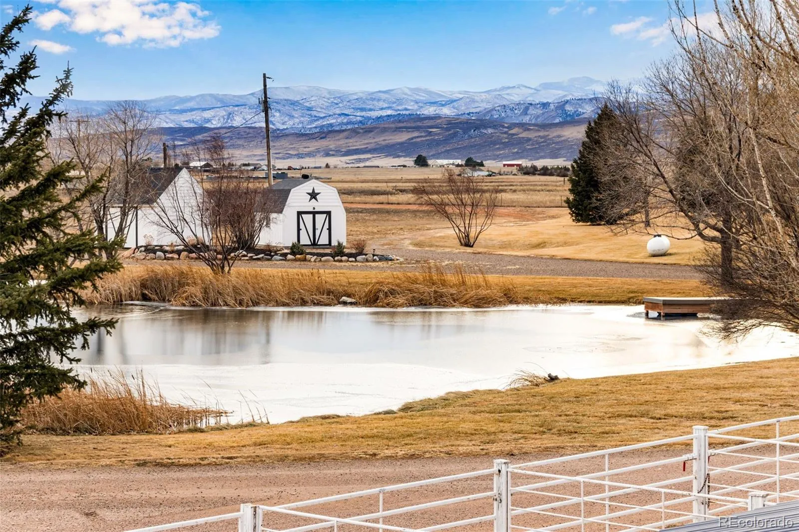 Join us for an Open House on Sat 24th 12-2PM + Sat 31st 12-3 & Sun Feb 1st 12-3 Exceptional, fully updated equestrian estate on 35.669 acres w/ NO HOA, NO METRO TAX & open zoning. Originally built in 1998 & extensively remodeled in 2023, offering privacy, functionality, & panoramic Rocky Mountain views. This rare property features a stocked pond w/ bass, dock, & sitting areas; 4 fenced pastures; 5 loafing sheds; round pen; 240′ x 137′ lite riding arena; pump shed; 3 storage sheds; & 8 exterior water hydrants, all accessed by a private driveway set back a .5 miles from the county road for privacy. Equestrian amenities are anchored by a 3,888 sq ft barn featuring 6 stalls each w/ private runs, tack room, wash bay, hay storage, a 2,232 sq ft loft, main-level concrete patio, & upper-level observation deck. A 1,545 sq ft detached drive-through RV/boat garage & shop features 220V, added electrical, air compressor, & included shelving, cabinets, & workbench. The park-like setting includes mature landscaping, sprinkler & drip systems, wood-burning fire-pit, horseshoe pits, expansive east-facing patios for sunrise views, & west-facing covered & uncovered patios w/ ceiling fan overlooking nightly Rocky Mountain sunsets. The primary residence showcases a split floor plan, front office, formal dining, white trim, new windows & doors, upgraded lighting, new paint & carpet. The chef’s kitchen features a large island, quartz countertops, SS appliances, 6-burner gas range, commercial hood, double ovens, warming drawer & a walk-in pantry. Living spaces include a family room w/ wood-burning fireplace, oversized bedrooms including a private guest en-suite, 2 beds w/ a Jack-and-Jill bath, & a luxurious primary bedroom w/ retreat featuring a 5-pc. bath, & two walk-in closets. Home also features a massive laundry room designed for everyday efficiency & includes a mini refrigerator & ice-maker. For a full list of features, floor plan, or to schedule a showing, please e-mail brokers.