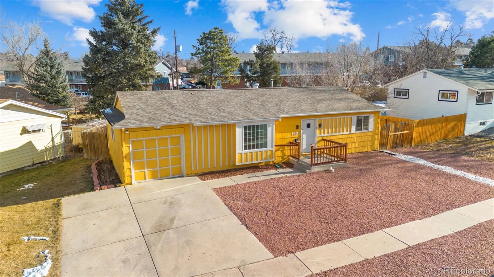 Welcome to this charming Palmer Heights ranch-style home, offering a flexible layout, generous living space, and a central Colorado Springs location. Built in 1956, this well-maintained property features 4 bedrooms (plus an EXTRA room in the basement), 2 bathrooms, and nearly 2,000 square feet of finished living space, including a mostly finished full basement—ideal for a variety of living needs. The main level offers a bright living room with natural wood floors and a functional kitchen featuring a breakfast bar and ample counter space. Two bedrooms and a full bathroom are conveniently located on the main floor, while the basement expands the living area with two additional bedrooms, a ¾ bathroom, and a BONUS office—perfect for guests, remote work, or hobbies. Situated on a level 0.17-acre lot, the property includes a fenced backyard and a concrete patio area, providing space to relax or entertain outdoors. A one-car attached garage and concrete driveway add everyday convenience. Located near shopping, dining, and major roadways, this home also falls within Colorado Springs School District 11, serving Twain Elementary, Galileo Middle School, and Palmer High School. With no HOA and easy access to Palmer Park, downtown Colorado Springs, and nearby amenities, this Palmer Heights home offers comfort, versatility, and value in an established neighborhood.