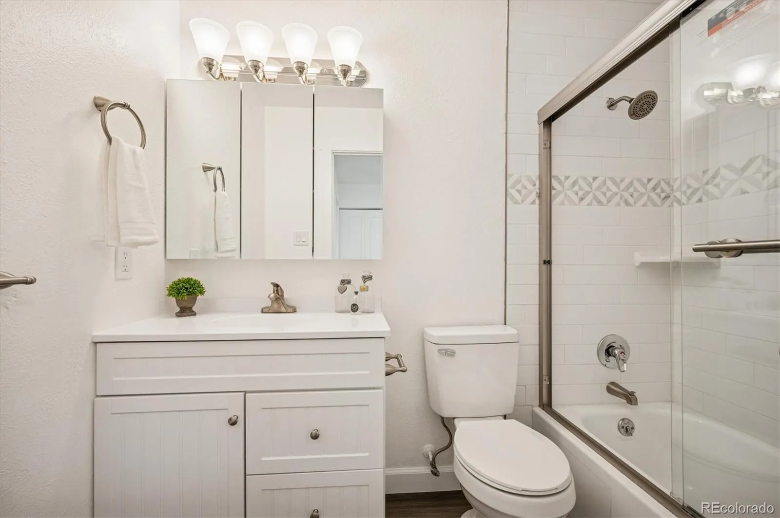 Discover contemporary comfort in this recently renovated two-bedroom townhome. This residence has been transformed from floor to ceiling with fresh finishes throughout. New flooring extends seamlessly through the entire home. The galley-style kitchen impresses with newly installed cabinetry and attractive countertops. Brand New SS Appliances + New Washtower. The main level features an open layout connecting the kitchen, dining, and living spaces—perfect for everyday living and entertaining alike. Abundant natural light pours through expansive windows. The upper level presents two comfortable bedrooms, anchored by a primary bedroom with generous closet space. The additional bedroom offers versatility—whether you need a guest retreat, workspace, or hobby room. A fully updated bathroom completes the second floor. Spanning 922 square feet over two stories, this home makes intelligent use of space. Practical amenities include a shared single-car garage with additional storage and an updated boiler system for dependable year-round heating. Hampden Villas provides community features such as a swimming pool, green spaces, and playground equipment set within professionally maintained grounds. The location delivers exceptional connectivity: easy highway access via Hampden and 6th Avenue, close proximity to Belmar’s extensive retail and restaurant options, and direct access to Bear Creek Greenbelt’s trail system. Dining, recreation, and transit options are all easily accessible on foot. This thoroughly updated townhome offers a compelling combination of modern finishes, prime location, and affordable HOA dues—an outstanding opportunity in the current market.