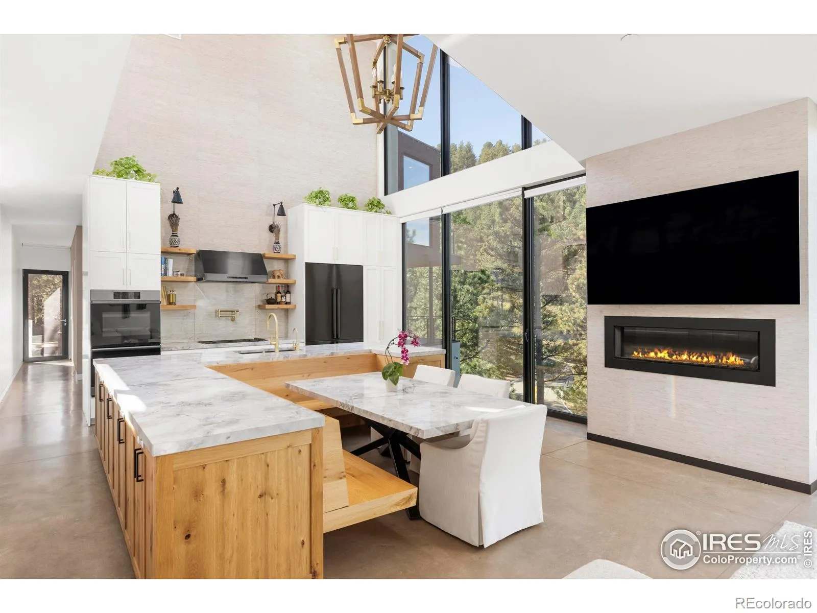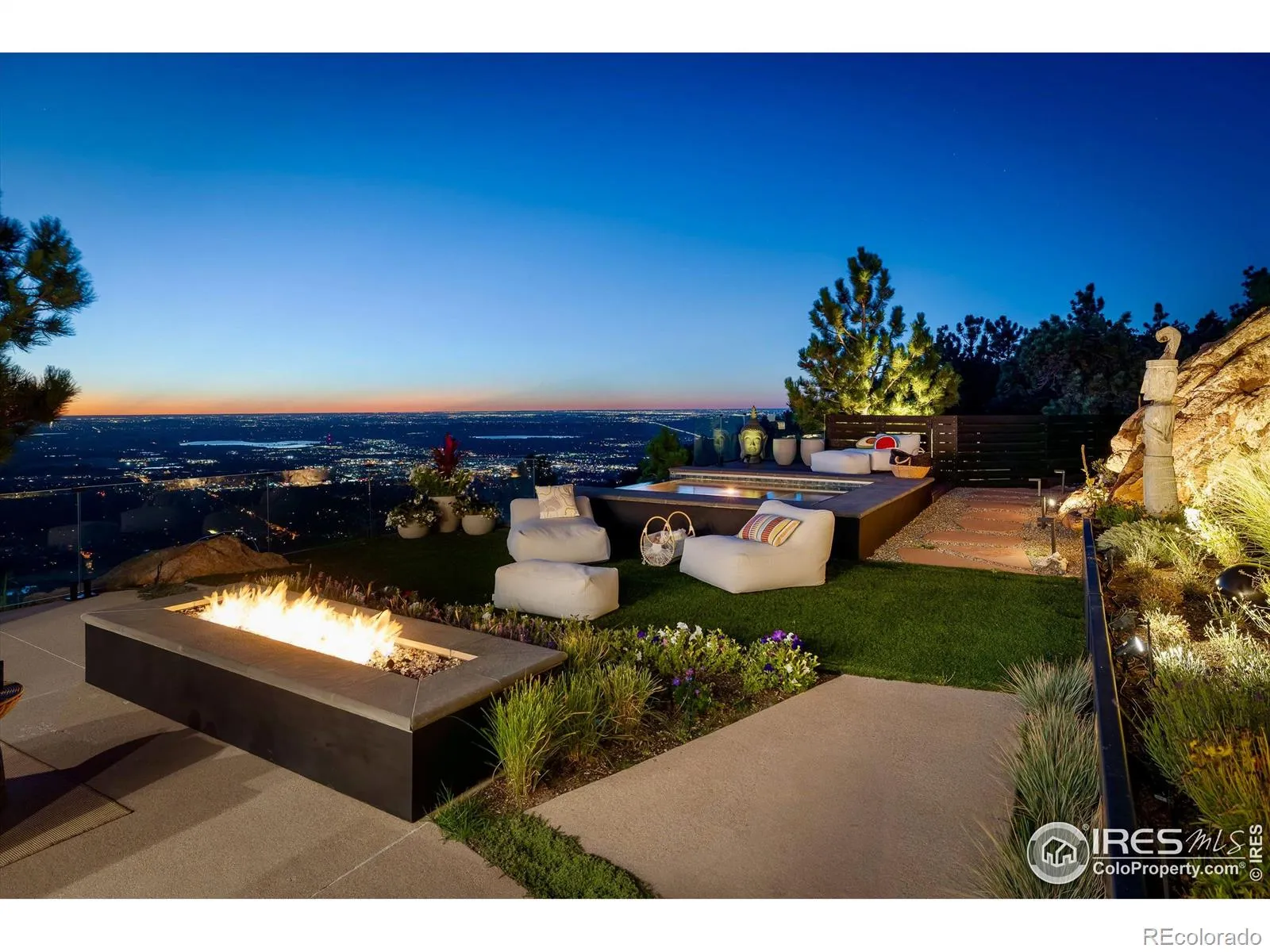 Nestled into the sandstone cliffs of Pine Brook Hills and offered for the first time since construction, 1151 Timber Lane is a bold architectural statement fusing modern design with Colorado’s natural beauty. Conceived by Adam Oklesh Architects, this 5-bedroom, 5-bathroom residence captures panoramic east and west views while offering exceptional privacy and outdoor amenities. Set on 2.44 acres, the 4,348-square-foot home features soaring ceilings, floor-to-ceiling windows, and sophisticated natural finishes including rift-sawn white oak and stone. Radiant floor heating and energy-efficient, fire-rated materials ensure long-term comfort and resilience. The great room, anchored by a sleek fireplace, flows into the chef’s kitchen with vaulted ceilings, luxury appliances, striking marble island, and breakfast nook connecting to the dining area. The private wing includes a luxurious primary suite with spa-like bath and walk-in closet, two additional en-suite bedrooms, and a flexible fourth bedroom or office. A fifth bedroom suite offers ideal guest or studio space. Expansive sliding glass doors lead to two outdoor sanctuaries. The main terrace features a fire pit, built-in grill and outdoor kitchen, oversized bar seating, outdoor heaters, and a dramatic infinity-edge pool floating above Boulder valley. The west-facing flat yard offers a sunlit retreat surrounded by rock outcroppings, mature trees, and custom Marpa landscaping. The rooftop deck provides unforgettable sunrises, sunsets, and stargazing with views stretching from the Flatirons to city lights and the Continental Divide. Additional features include an attached 2-car garage with generous storage and elevator access throughout. Experience Boulder living at its finest; luxurious interiors, architectural significance, unmatched outdoor spaces, and jaw-dropping 360-degree views in a one-of-a-kind retreat just 6 minutes from Broadway and 12 minutes from downtown Boulder.