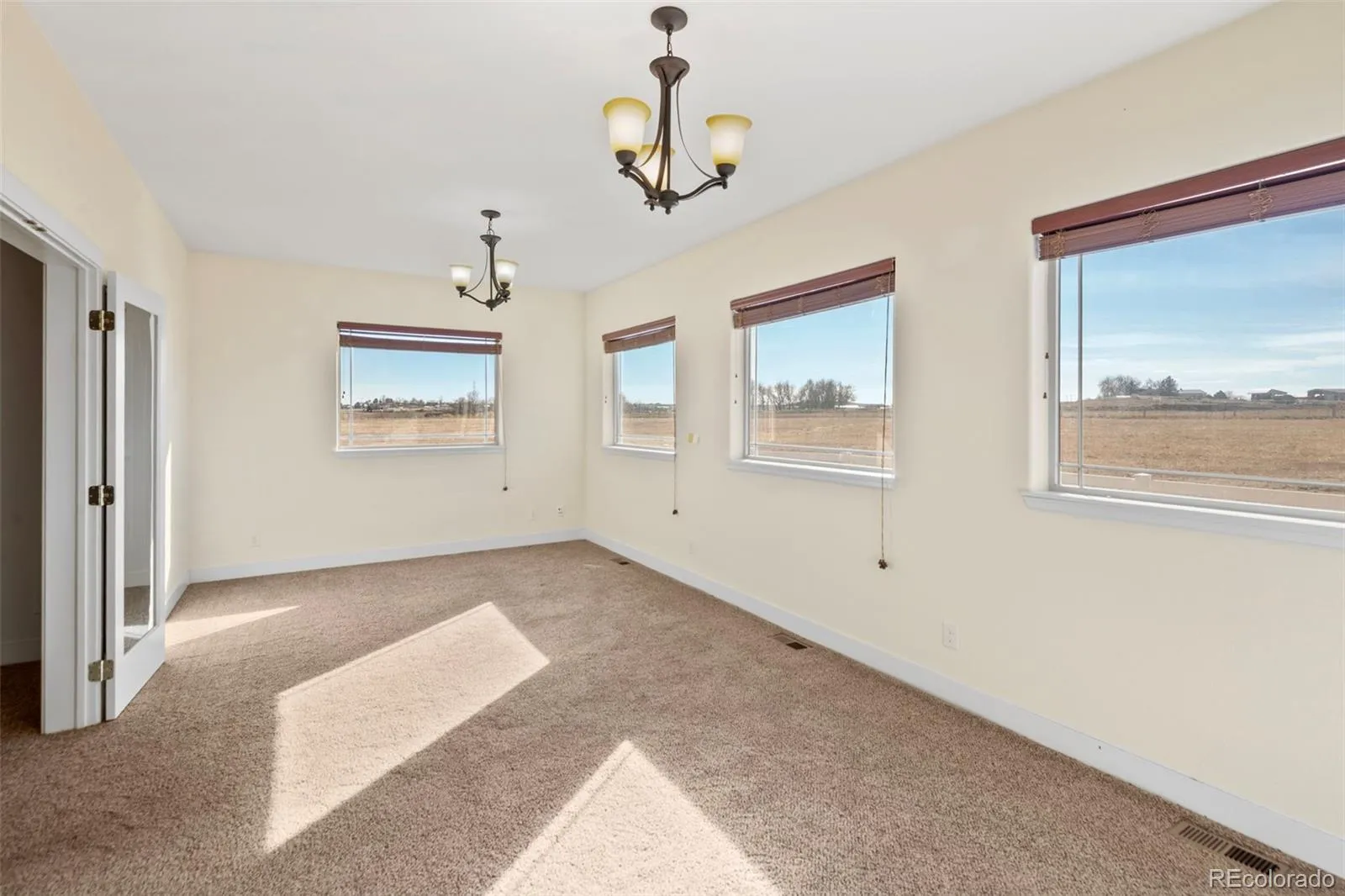 Custom-built ranch home set on 21 acres of scenic, usable land in Erie with sweeping panoramic mountain views. This property includes 2 metal buildings ideal for equipment, live stock, storage as well as 2 metal buildings to enhance the functionality of this 21 acre property. This refined gentleman’s ranch is thoughtfully designed for comfortable country living, offering space, privacy, and wide-open skies highlighted by stunning sunsets and frequent hot air balloon views. Inside, vaulted ceilings and a classic stone fireplace create a warm, welcoming atmosphere. Large windows fill the great room with natural light while perfectly framing the surrounding mountain landscape. The well-appointed kitchen features quality appliances, ample counter space, and a generous island, opening seamlessly to the main living area—ideal for gatherings after a day outdoors. The functional layout includes three bedrooms positioned for privacy, along with a versatile second living area that may serve as a sunroom, office, or additional living space. Step outside to a peaceful backyard setting with a cozy fire pit overlooking the pond, where expansive views can be enjoyed year-round. The property offers 21 acres of fenced and usable pasture, well suited for livestock, horses, or hobby ranching. Multiple sheds provide storage for equipment and supplies, and the open land offers flexibility for a variety of agricultural or recreational uses. Served by Left Hand water and United Power electricity, this exceptional ranch presents a rare opportunity to enjoy a true rural lifestyle with breathtaking views, usable acreage, and modern comfort.