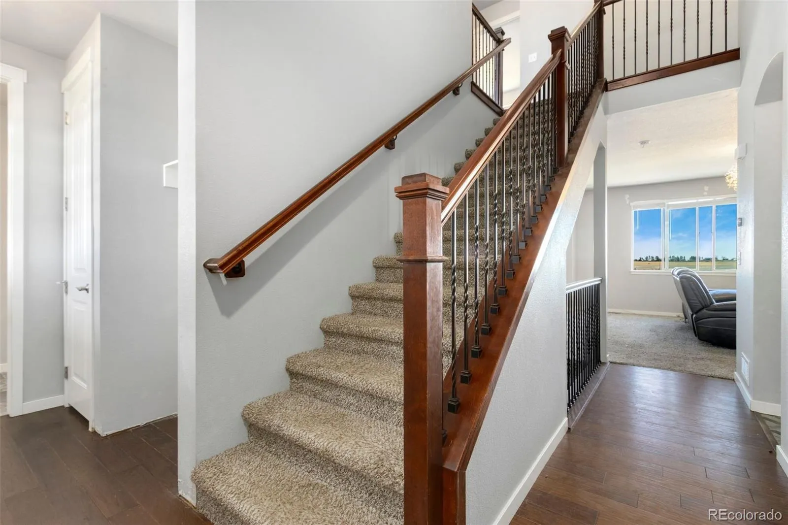 This two-story home in Kiowa Park sits at the end of a quiet cul-de-sac and backs to expansive open space, giving you a sweeping backdrop that stretches far into the horizon. Inside, the kitchen, dining, and living areas flow together seamlessly, creating a bright and airy space that works perfectly for everyday living. Large windows let in natural light, making the entire main level feel inviting and easy to enjoy. The kitchen includes stainless steel appliances, generous prep space, and a pantry that keeps your essentials organized. A mudroom connected to the garage entry features stylish herringbone tile flooring, a built-in bench, and storage to keep everything tidy as you come and go. Four bedrooms sit on the upper level, including a spacious primary suite with an ensuite bathroom and a walk-in closet. The upstairs laundry adds extra everyday convenience right where it’s needed. The basement expands your living space with a full family area for recreation, plus an additional bedroom and bathroom, ideal for guests, hobbies, or a quiet workspace. Step outside to a concrete patio overlooking uninterrupted views of the open fields and the night sky. A 3-car garage plus RV parking gives you plenty of space for your vehicles and gear. Easy access to Fort Morgan and Greeley, and just about an hour from Denver.
