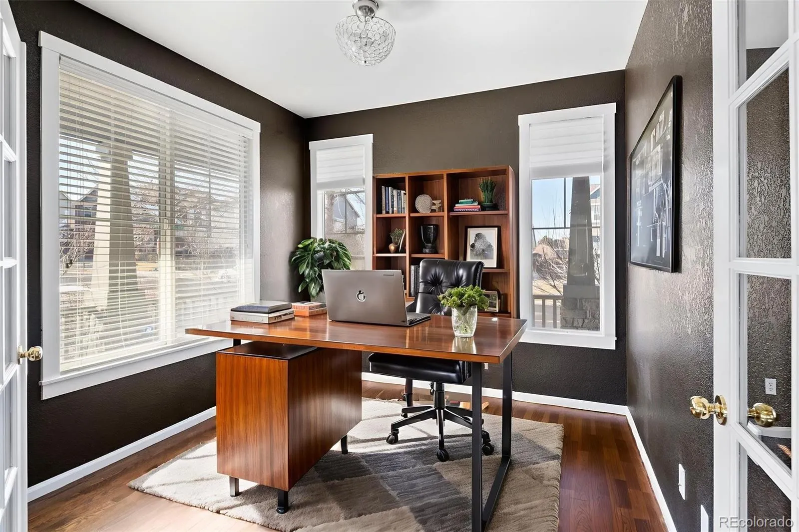 The main level features a dedicated office, an inviting living area with a cozy fireplace, and a stunning kitchen equipped with granite countertops and high-end appliances, ideal for both everyday living and hosting. Generous bedroom sizes and well-appointed bathrooms provide plenty of room for everyone.