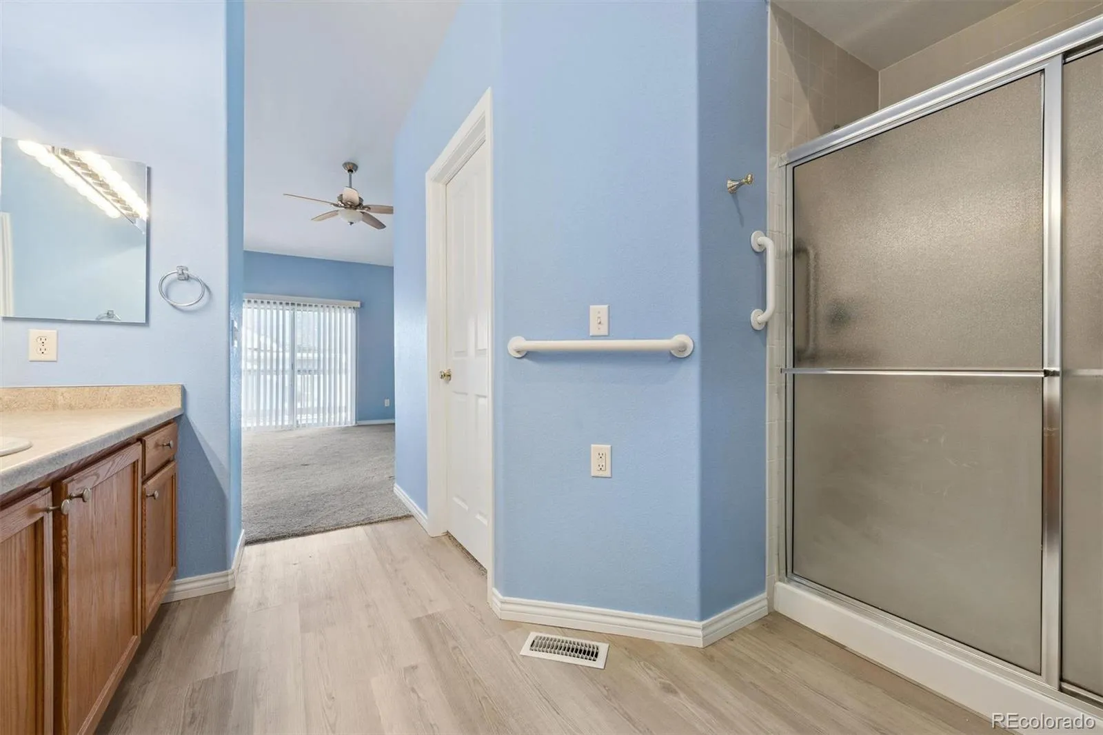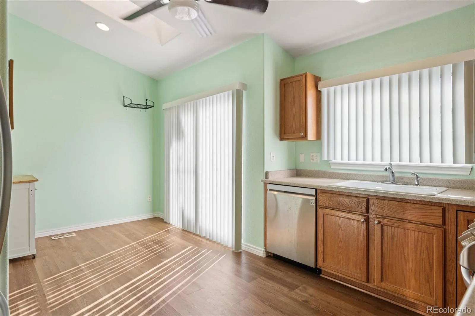 This lovingly maintained ranch-style home offers comfort, privacy, and exceptional walkability in a quiet, well-established community. Thoughtful updates include all new windows (2025), interior paint (2020), new luxury vinyl plank flooring on the main level, and new carpet (2020), along with a new HVAC system (2020) with a 10-year warranty and a Smart NEST thermostat. The home faces a peaceful greenbelt, creating a more open feel and offering a sense of privacy. Vaulted ceilings enhance the airy atmosphere throughout the main living areas, where each main-level bedroom enjoys its own private patio. The welcoming family room features a gas fireplace and flows seamlessly into the dining area. The kitchen includes a breakfast nook and access to a small, south-facing fenced patio, and is equipped with a double oven and dishwasher replaced in 2021. The spacious primary suite offers a walk-in closet, a west-facing private patio, and a well-appointed ensuite bath with a large double-headed shower. The second bedroom features a generous closet and private fenced patio, while the nearby secondary bath includes a Kohler walk-in jetted soaking tub. The garden-level basement features a large great room with a gas fireplace, an additional bedroom with built-in shelving, and a 3/4 bathroom. Recent exterior improvements include new roof (2024) and exterior painting currently in progress. Additional upgrades include remote-controlled shades on skylights (2025) and a radon mitigation system for added peace of mind. The seller has also added, new window blinds, new ceiling fans and extra storage in the garage. Additional highlights include main-floor laundry, attached two-car garage, and convenient guest parking. The home is ideally located within walking distance to King Soopers and Kohl’s, approximately 1 mile from the Central Recreation Center, and just 1/4 mile from the West Toll Gate Creek Trail, offering exceptional access to shopping, recreation, and outdoor amenities.