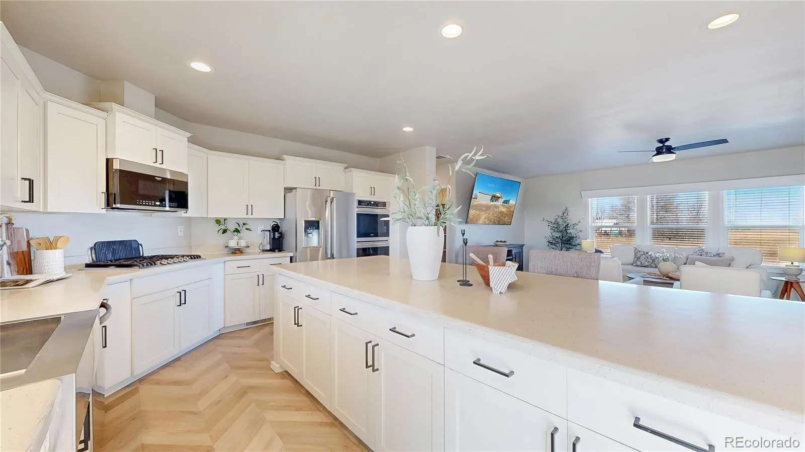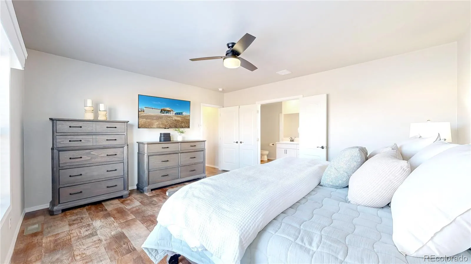 Nestled on nearly three acres of peaceful Colorado countryside outside the heart of Keenesburg, this beautifully maintained four-bedroom, two-bath home built in 2022 effortlessly blends open, modern living with rural charm. From the moment you arrive, the property’s generous lot invites envisioned possibilities, whether you’re drawn to outdoor living, envision equestrian pursuits, or simply relish wide-open views and fresh air, all without the constraints of a HOA. Step inside to discover an open floor plan thoughtfully designed for both everyday life and entertaining creating an immediate sense of warmth and welcome. The heart of the home is anchored by a well-appointed kitchen featuring a large center island, ample cabinetry and counter space, a double oven, eat-in dining space, an oversized walk-in pantry that effortlessly accommodates culinary needs and storage alike. Flowing seamlessly from the kitchen, the spacious living area provides room for comfortable seating and gatherings with family and guests, while easy sight lines enhance the flow from room to room. The luxurious primary suite offers a private retreat with generous proportions, dual closets, and an en-suite bathroom designed with comfort in mind, complete with a walk-in shower with dual shower heads and bench, makeup vanity, soaking tub with MOUNTAIN views, and dual sinks. Three additional well-sized bedrooms, a dedicated laundry area and a beautiful covered back porch great for enjoying the quiet morning sunrise and evening sunset over the Rocky Mountains. Outside, a substantial three-car INSULATED garage with power for RV and room for workbenches all setting on an expansive 2.88 acres presents room to create additional structures, gardens, or outdoor recreation areas. 1 mile from Cardinal Community Academy K-8. * STARLINK for internet * DOMESTIC well allowing you to water outside * LEASED propane tank