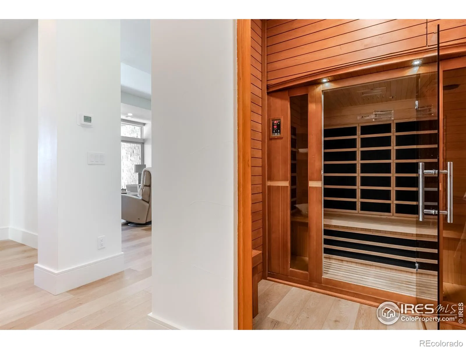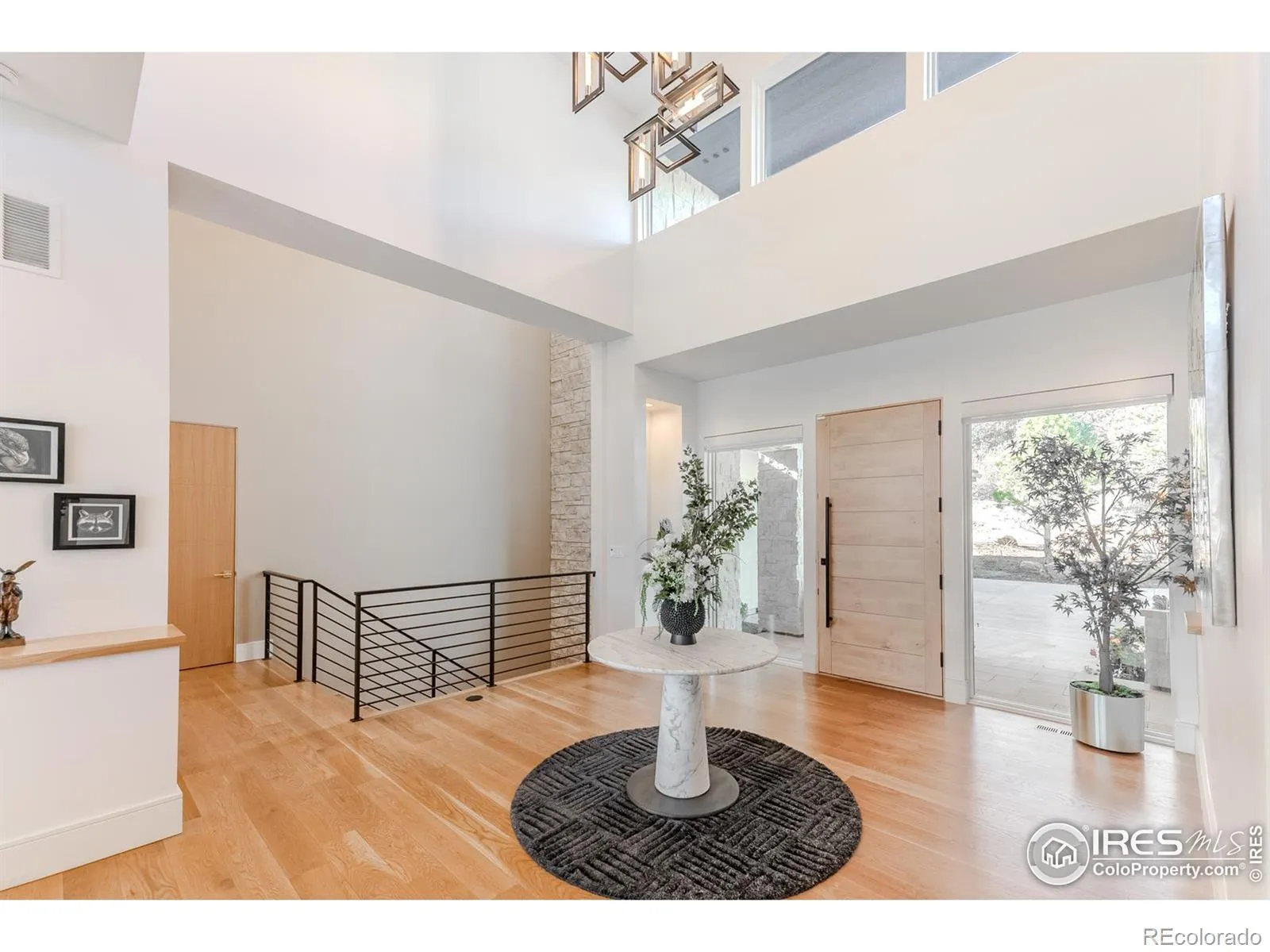 Privately elevated above the 12th and 15th fairways of the award-winning Ravenna Golf Club, this contemporary ranch estate commands an irreplaceable panorama of emerald greens undulating toward sparkling ponds, framed by dramatic red-rock formations and the Front Range beyond. Behind Ravenna’s gates lies an elevated lifestyle of wellness, social connection and refined luxury where fine dining, fitness and nature exist in perfect harmony. An architectural statement, the modern facade fuses smooth stucco planes, limestone accents and linear rooflines for a composition both contemporary and timeless. Inside, white oak floors lead through voluminous sun-filled spaces where light and clean lines converge in sophisticated balance. The great room rises twenty feet beneath beamed ceilings and clerestory windows anchored by a sleek fireplace and wall of glass opening to a vast terrace overlooking the golf course and mountains. The kitchen presents as a culinary studio blending an ethereal palette with design precision, featuring a floating white-oak drop ceiling, eleven-foot quartz island, a suite of professional-grade appliances and a wet bar seamlessly connecting to the great room for effortless entertaining. The dining area, office and dramatic powder bath each continue the theme of artistry and polish. The primary suite is a sanctuary of calm with terrace access and breathtaking views, complemented by a spa bath with freestanding tub, poured-concrete vanities and boutique-style dressing closet. A statement staircase guides to the walk out lower level-a world of leisure with a billiards and media lounge, flagstone fireplace and a luminous back-lit quartzite bar with an impressive wine column. Three bedroom suites and a rejuvenating dry sauna room complete the level. Outside, over $100,000 in new landscaping introduces a lush lawn, cascading terraced gardens and a full-length patio offering multiple destinations for gathering and savoring the home’s spectacular setting.
