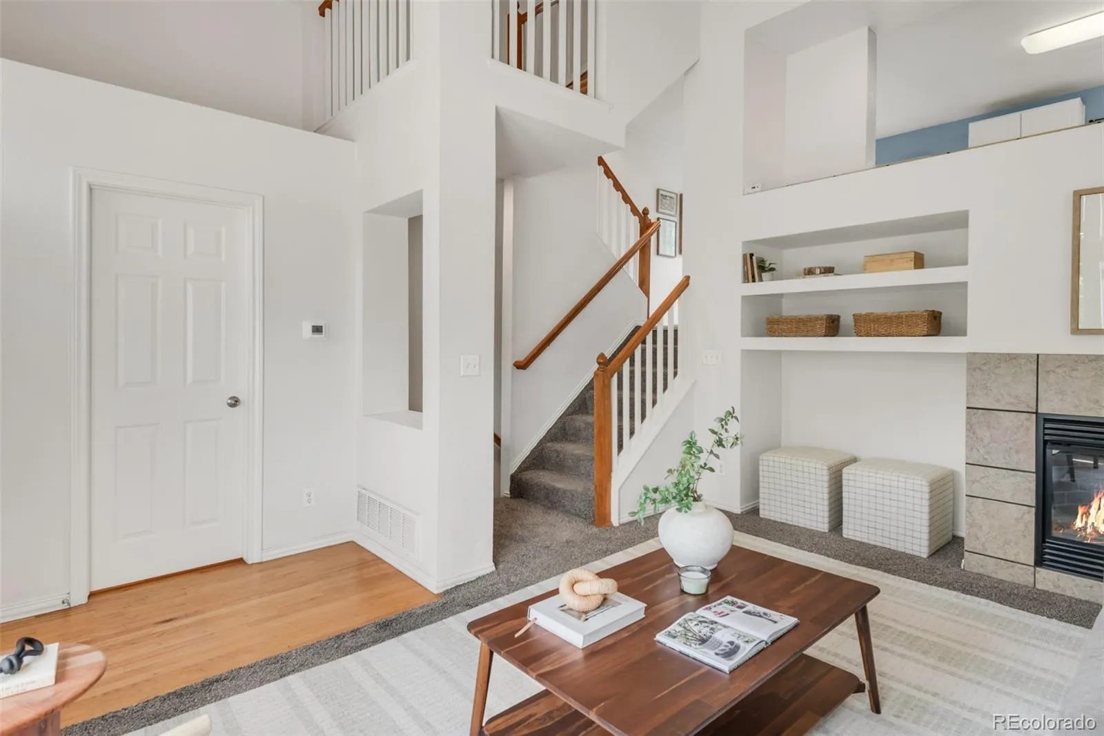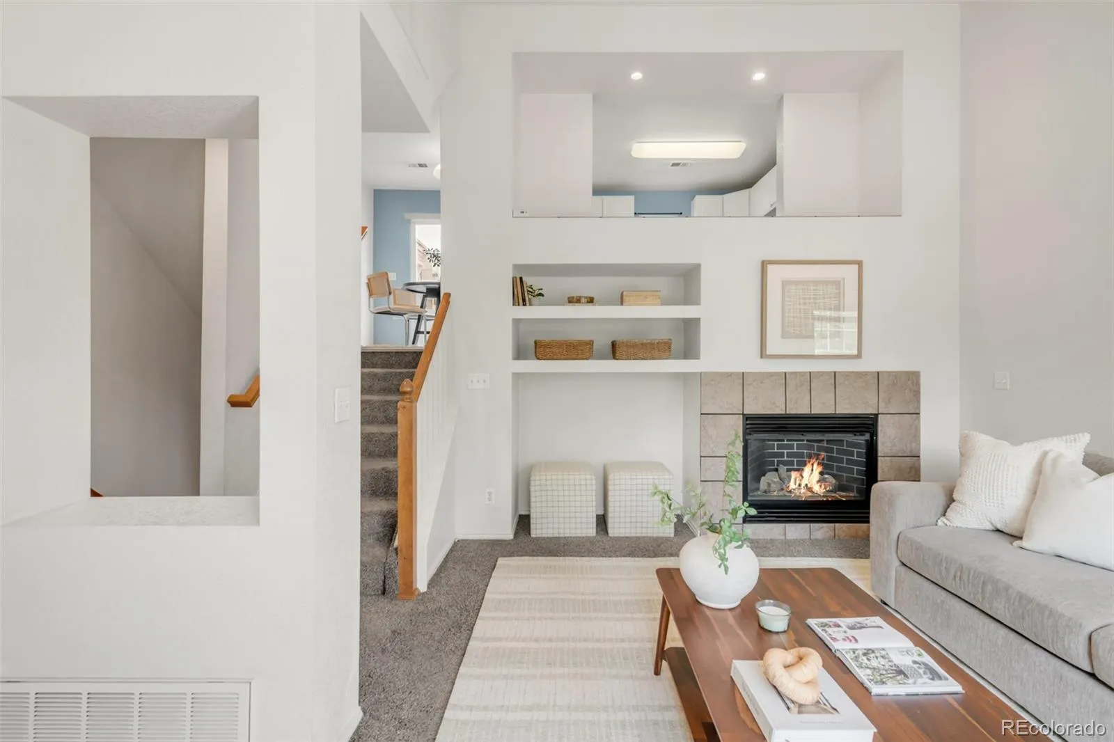 LENDER INCENTIVE 1% YEAR RATE BUY DOWN // Beaming with inviting serenity, this townhome is perfectly positioned across from Town Square Park. Enjoy Colorado’s sunshine from a spacious front patio with lush park views. Enter into a light-filled living room featuring soaring ceilings, tall windows and a cozy tiled fireplace. The bright dining area flows into a charming kitchen with crisp white cabinetry, generous counter space and sliding glass doors that lead to an expansive private patio — ideal for outdoor dining and relaxing evenings. The upper level offers a serene primary bedroom with an en-suite bath and a versatile secondary bedroom perfect for guests or a home office. A convenient laundry area with a washer and dryer set adds ease to daily routines on the same floor as the bedrooms. An attached 2-car garage provides ample storage space and an additional workshop. With easy access to neighborhood shops, the Belle Creek Family Center, community garden and just moments from dining and outdoor recreation, this townhome offers comfort, charm and connection in equal measure. **Lender incentive – This property includes a 1-year temporary interest rate buydown, reducing the buyer’s interest rate by 1% for the first year (subject to acceptable offer terms). Buyer is not required to use Danielle Anderson of Guild Mortgage (NMLS# 1842677) to purchase the home, but must use her services to receive the buydown incentive. Offer subject to lender qualification and program availability. Listing provided by milehimodern.**