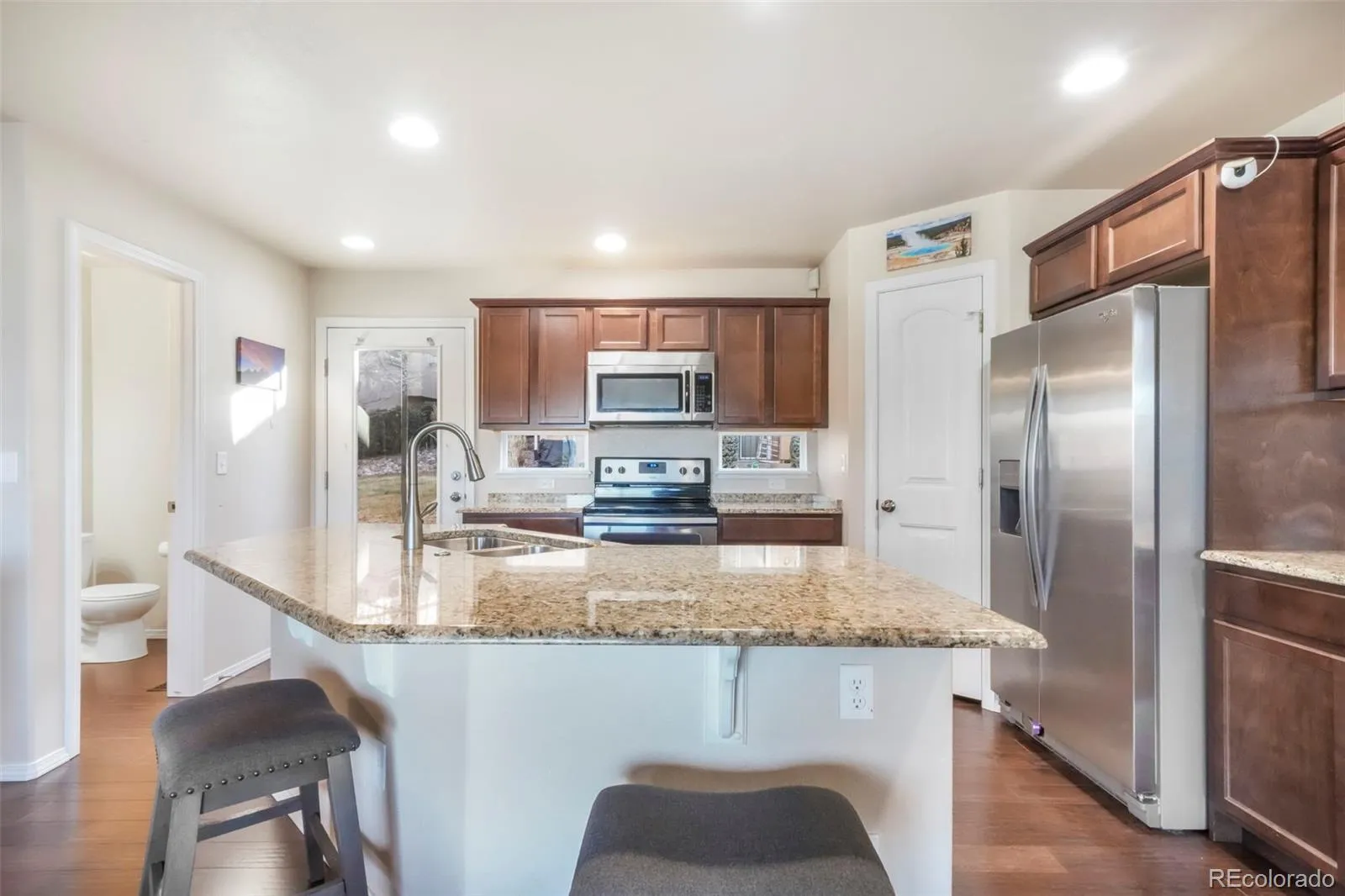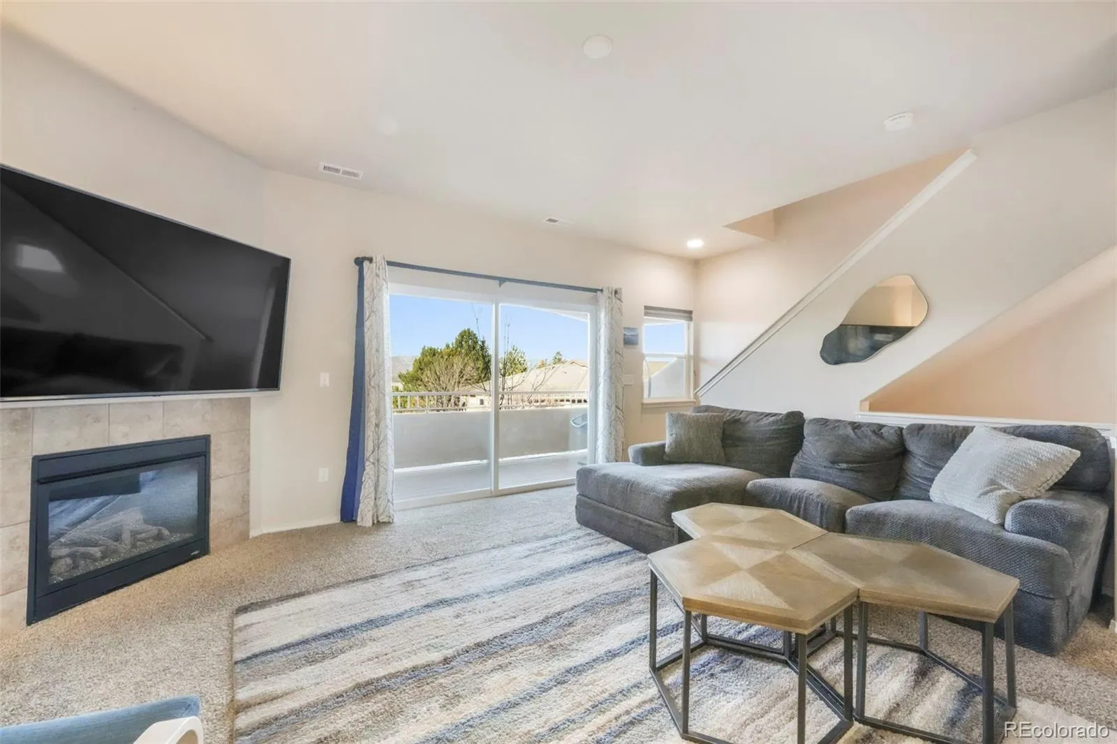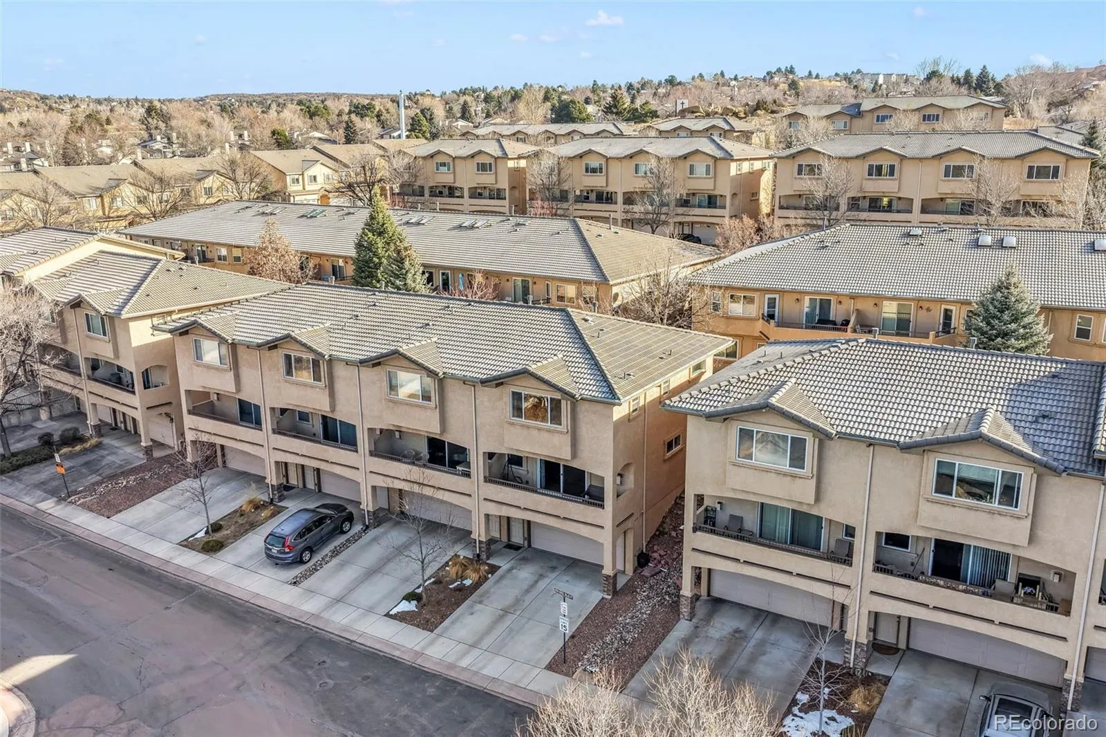 Welcome to this beautifully maintained end unit townhome that combines comfort, convenience, and low maintenance living in a gated community. HOA dues include exterior maintenance and roof coverage, keeping property insurance costs impressively low. The concrete tile roof adds durability, reduces risk, and supports long term affordability. This three bedroom, three bathroom home features a two car attached garage over 24 feet deep with built in storage closets and a 240V outlet perfect for Level 2 EV charging. Enjoy outdoor living with both a private balcony and a private patio. As an end unit, the home is filled with an abundance of natural light throughout. The first living level sits above the garage and offers an open, inviting layout. The kitchen features granite countertops, stainless steel appliances, an island, and a pantry. A convenient powder room is located on this level, along with a spacious living room highlighted by a gas fireplace and sliding doors that open to the private balcony with exceptional views of Pikes Peak & Garden of the Gods. The upper level includes a generous primary suite with a step in shower, two secondary bedrooms, a full hallway bathroom, and a dedicated laundry closet. Neutral paint tones, thoughtful care, central air conditioning, and forced air heat provide year round comfort and a truly move in ready experience. The location is hard to beat. The home is approximately .7 mile to the elementary school, 1.1 miles to the middle school, and .3 mile to the high school. Fort Carson, Peterson Space Force Base, and Colorado Springs Airport are all less than 10 miles away, with quick access to I 25 in about 8 minutes. This home offers an ideal blend of low maintenance living, scenic views, and everyday convenience in a well kept community. Schedule your private tour today!