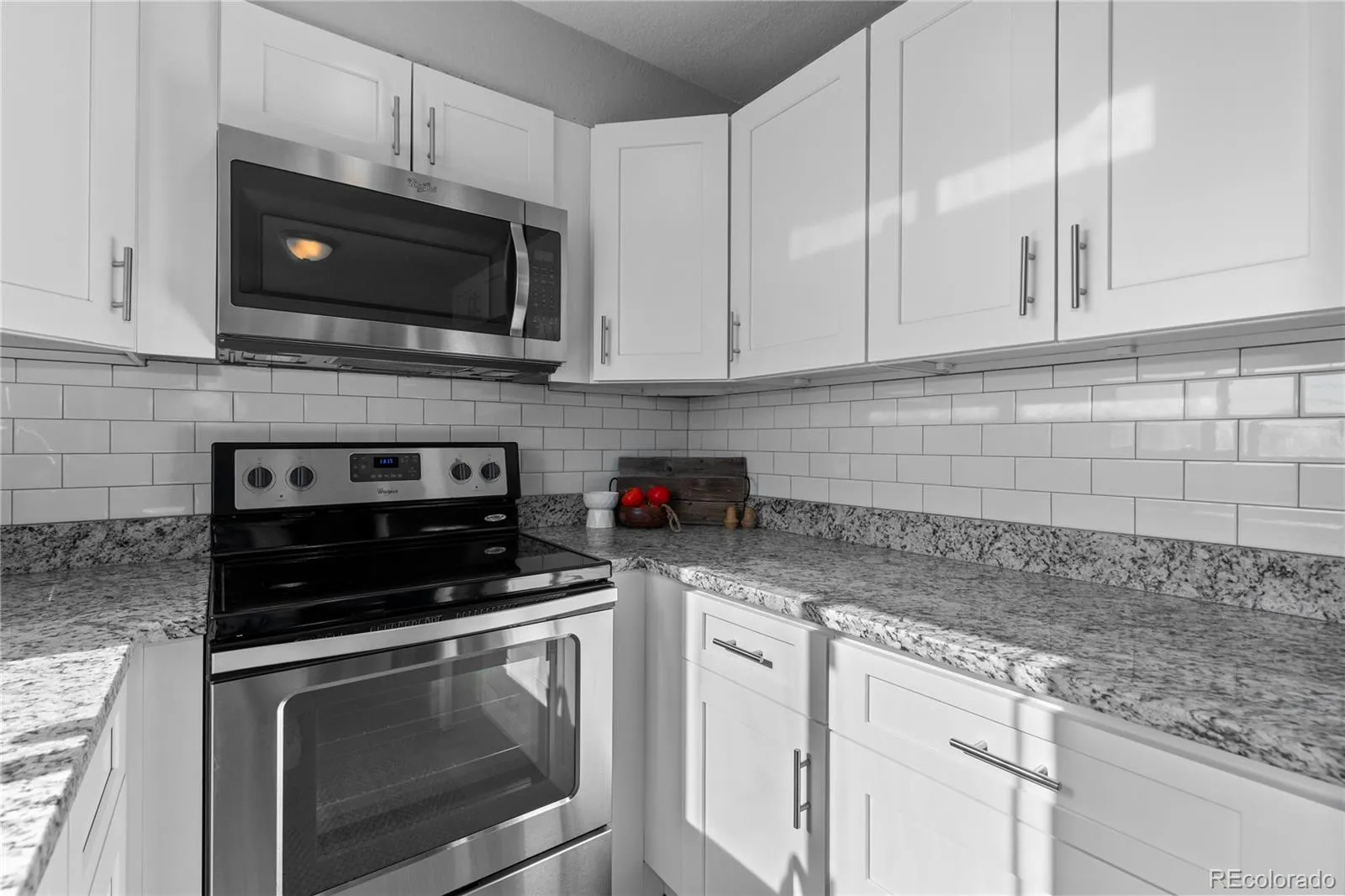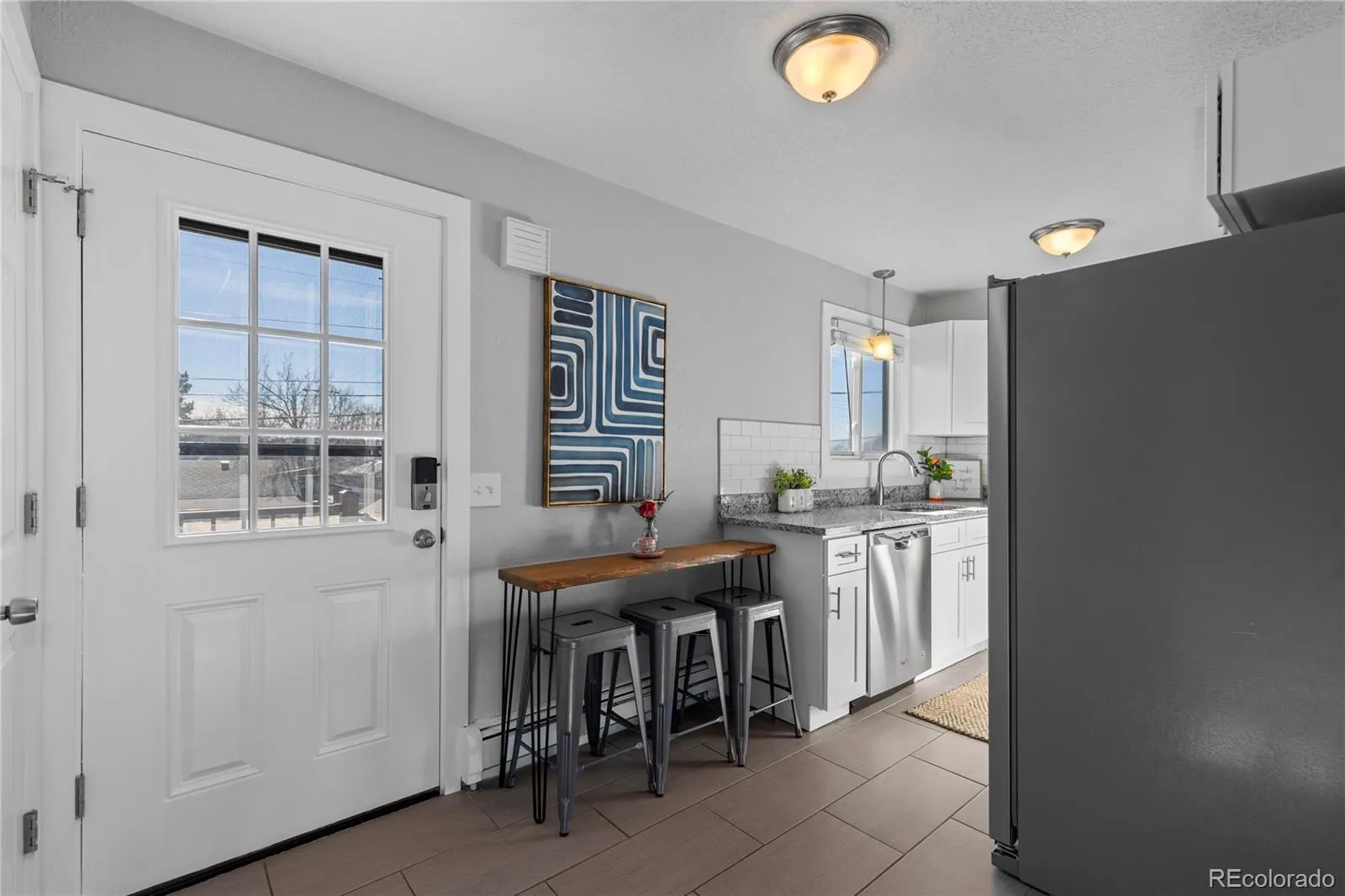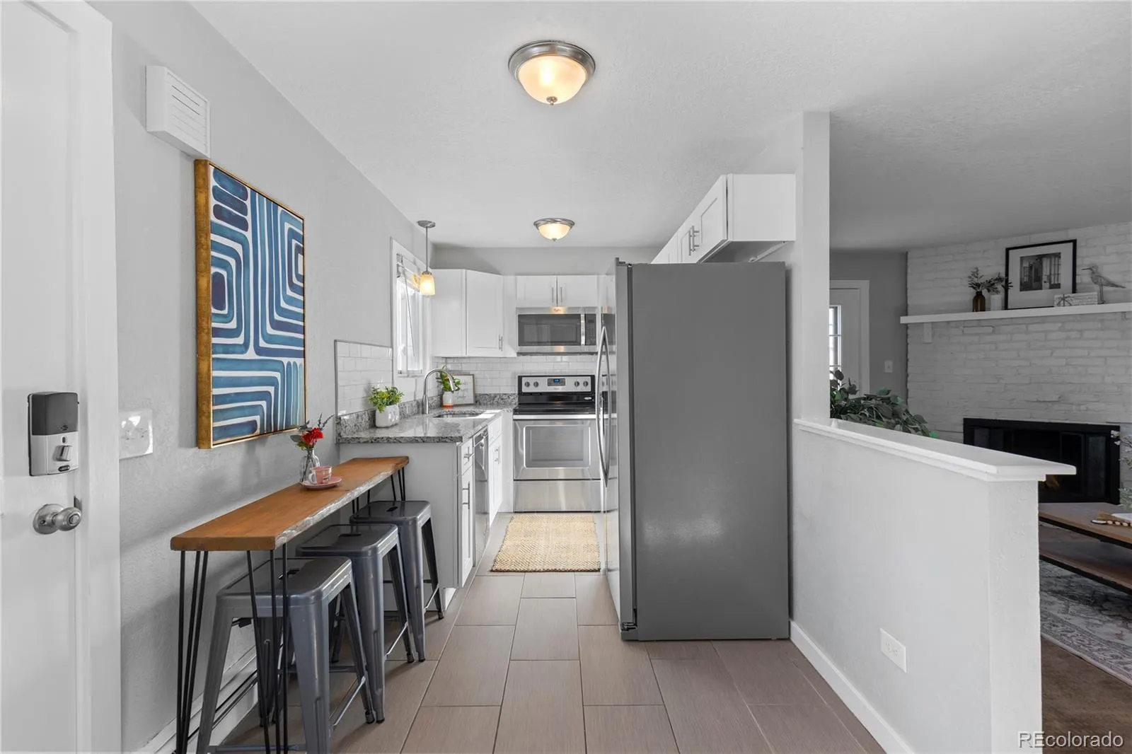 This two-bedroom condo in Lexington Village underwent a complete refresh, and it shows! New finishes throughout mean you can move right in without immediately planning your next renovation project. Sip your morning coffee on the sun-filled, brand-new front deck and take in western mountain views on the horizon. Inside, you’re welcomed by an open living room with a wood-burning fireplace framed by contemporary, white-painted brick. The sparkling kitchen features a closet pantry and remodeled everything, new tile floors, updated cabinetry, granite countertops, stainless steel appliances and a farmhouse sink. The fresh finishes continue in the bathrooms, which have been fully remodeled, too, and feature updated and cohesive subway tile, counters and cabinetry. Upstairs, the primary bedroom offers a generous walk-in closet, while the second sunny bedroom includes a convenient washer-dryer combo so no lugging laundry up and down the stairs. Nature lovers will cherish the High Line Canal Trail bordering the complex, offering 71 miles of trails right out your front door, and nearby Cherry Creek State Park, with 880 acres of trails, off-leash dog areas, and reservoir access. University of Denver and its surrounding eateries and shops is just five minutes to the west. Pop by the grocery store just around the corner for a last-minute errand, or enjoy a night out at one of South Broadway’s locally loved restaurants or bars. Quick access to I-25 makes exploring the Front Range seamless. A covered parking spot rounds out this just-right home for those ready to put down roots in Denver. ***Ask about our preferred lender incentives on this home worth up to $4,280!***