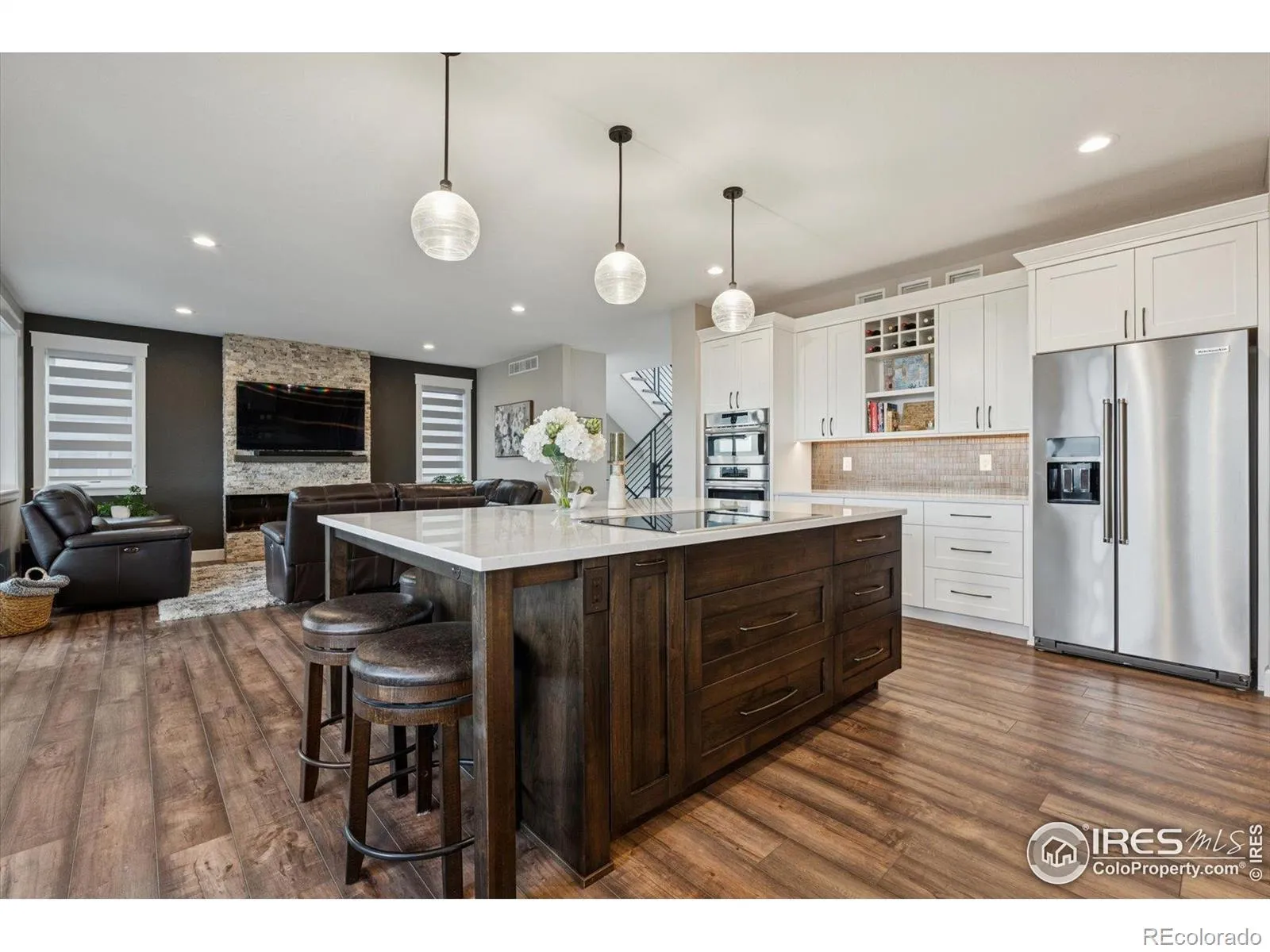 2-story beauty! Luxury kitchen w/ quartz countertops, eat-up island, Bosch cooktop, stainless appliances, & massive pantry. Family room w/ electric fireplace. Main level study. Spacious primary suite w/ 5-piece bath, dual vanities, & massive walk-in closet. 2 roomy spare bedrooms w/ walk-in closets. Full hall bath. Upper-level laundry room. Perfectly executed wet bar w/ beverage fridge, family room, kids bonus room & guest bed or home gym + shower bath! 10KW fully owned solar system included.