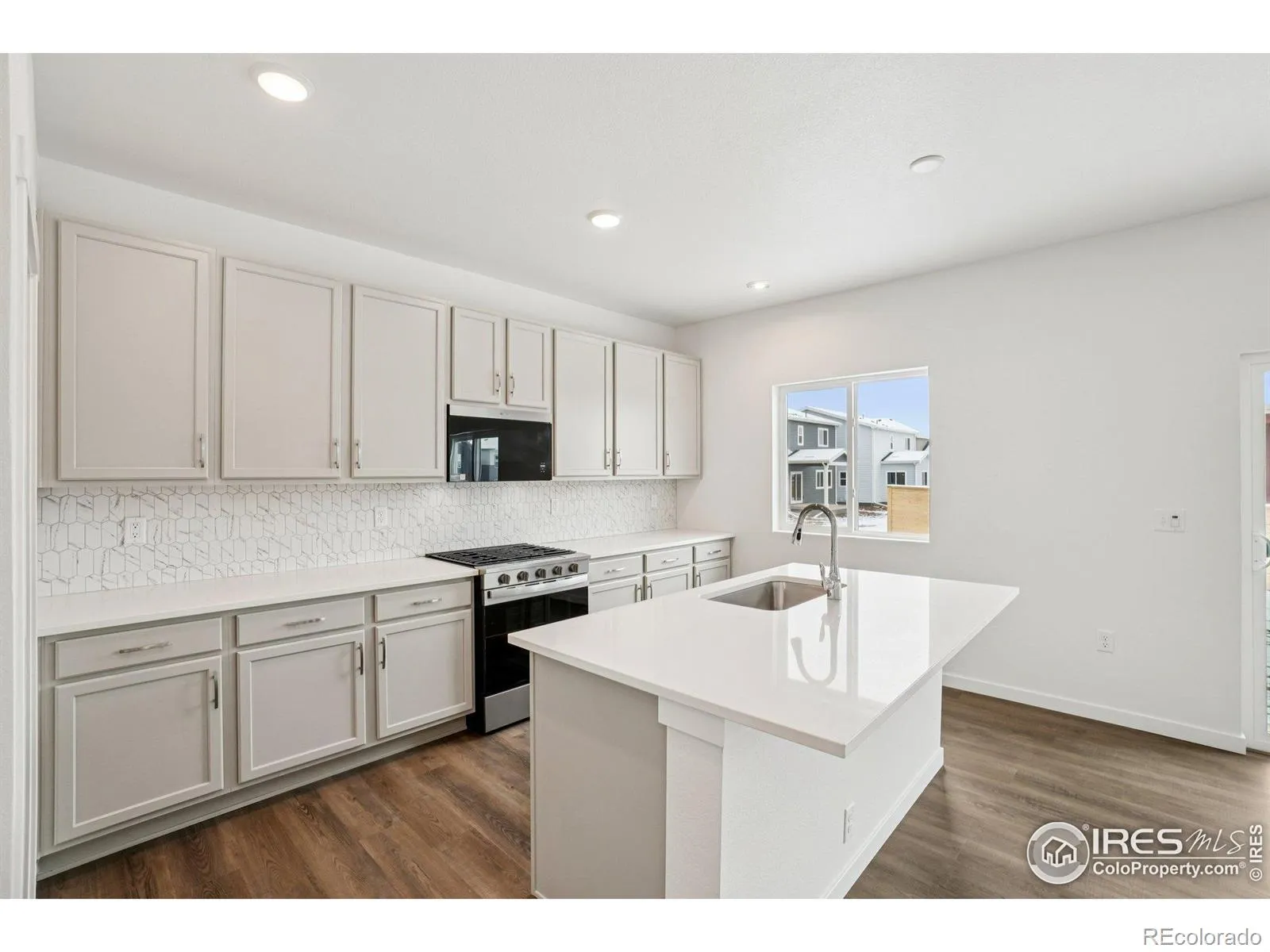 Discover your dream home in Fort Collins’ premier Bloom community! This move-in-ready Cantata plan by DRB Homes offers modern elegance on a premium corner lot backing directly to serene community green space and trails-no rear neighbors for ultimate privacy and peaceful open views.This two-story Cantata blends comfort, style, and versatility with 3 bedrooms plus an upstairs loft-perfect for a home office, playroom, or second living area ideal for families, remote work, or hobbies. The open-concept main floor creates a warm, welcoming environment for daily living and entertaining, with room to personalize and grow.Gourmet kitchen shines with Whirlpool stainless steel freestanding gas appliances, Cabinet Upgrade 2 (concord maple flat panel in chai latte with satin nickel pulls), 42″ upper cabinets, double rollouts, full-height vanities in primary and secondary baths, drawer bank in primary, decorative hardware, handrail painted Pure White, and curated Design Center selections. Stunning NuStone Quartz counters in Dorado Breckenridge throughout, Emser Newtro mosaic backsplash in kitchen (vertical install), undermount stainless sink, and 4″ slab splashes in baths elevate the space. Bloom delivers resort-style living with the exciting community pool and park (including lap/kiddie pools, playground) under development, dedicated pickleball courts, extensive trails connecting to regional paths, central Community Green for events like farmers markets and movies, and upcoming Sojourn retail hub for walkable conveniences. Prime location provides quick I-25 access, minutes to CSU campus, Old Town Fort Collins dining/shopping/breweries, and Harmony Corridor. This new energy-efficient home features premium craftsmanship, full warranties, and thoughtful upgrades throughout. Corner lot with trail/green space backing, this home features professionally landscaped front and rear yards, complete with rear yard fencing for added privacy and an outdoor living space.